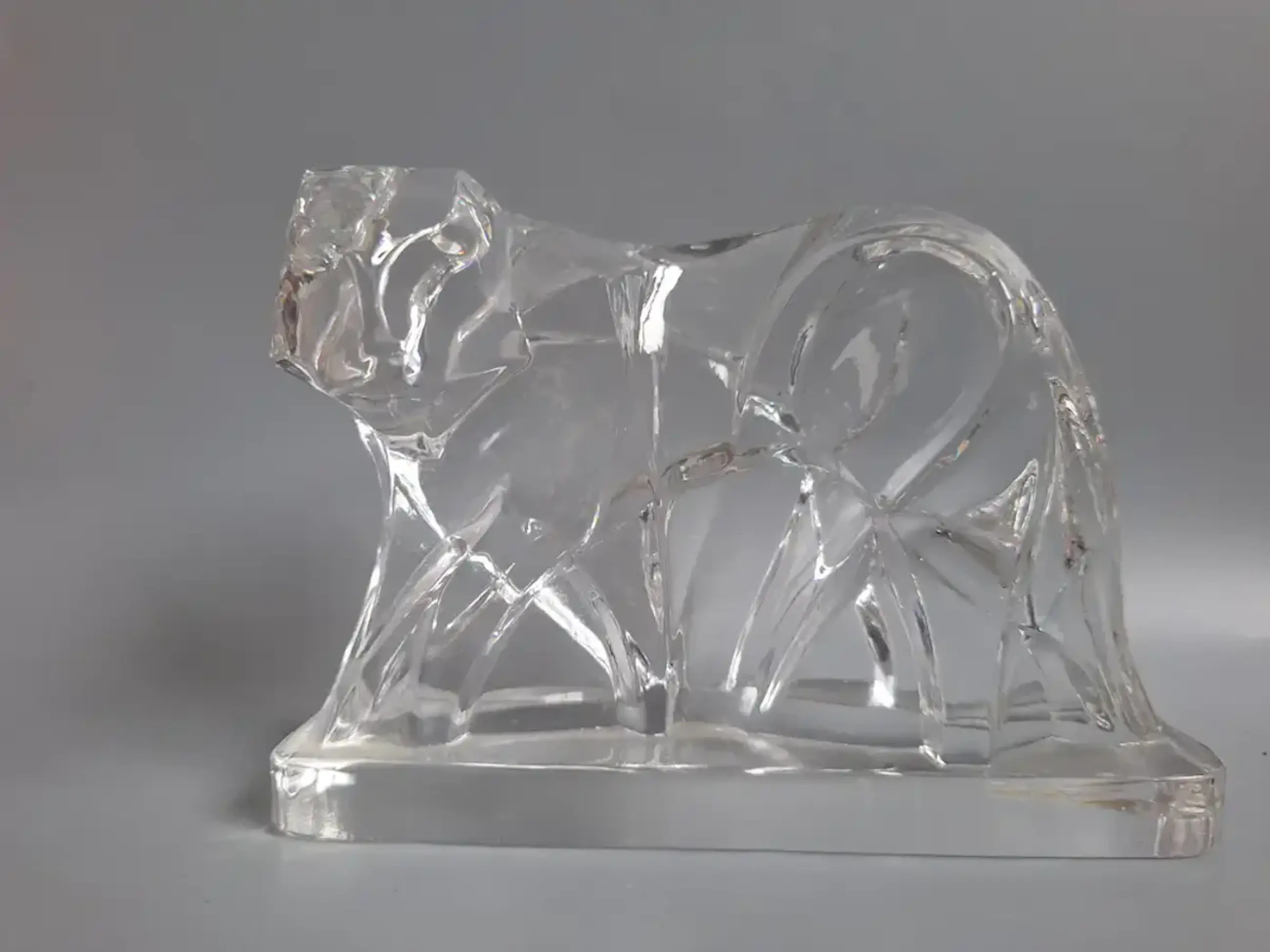 Prachtig kristallen sculptuur van kunstenaar George Chevalier. Titel kunstwerk; De panter 10,5 x 15 x4,5 1100 gram