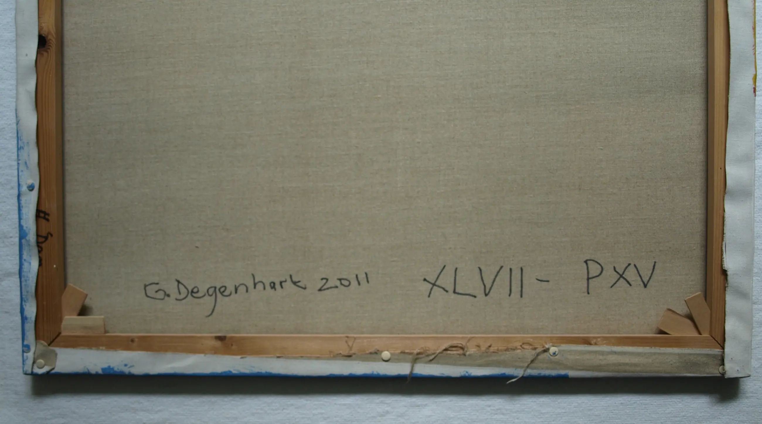 Een schilderij uit 2011 van de Nederlandse kunstenaar George Degenhart (1936-), gemaakt op 75-jarige leeftijd. -Techniek: Acrylverf op doek, opgespannen op een houten spieraam. -Gesigneerd en gedateerd op de achterkant van het doek. -Afmetingen: 80 x 80 x 2 cm. -Herkomst: Uit de inboedel van deze Amsterdamse kunstenaar. -Conditie: In goede staat met wat slijtplekjes / krasjes. Zie ook de foto’s voor een eigen indruk.
