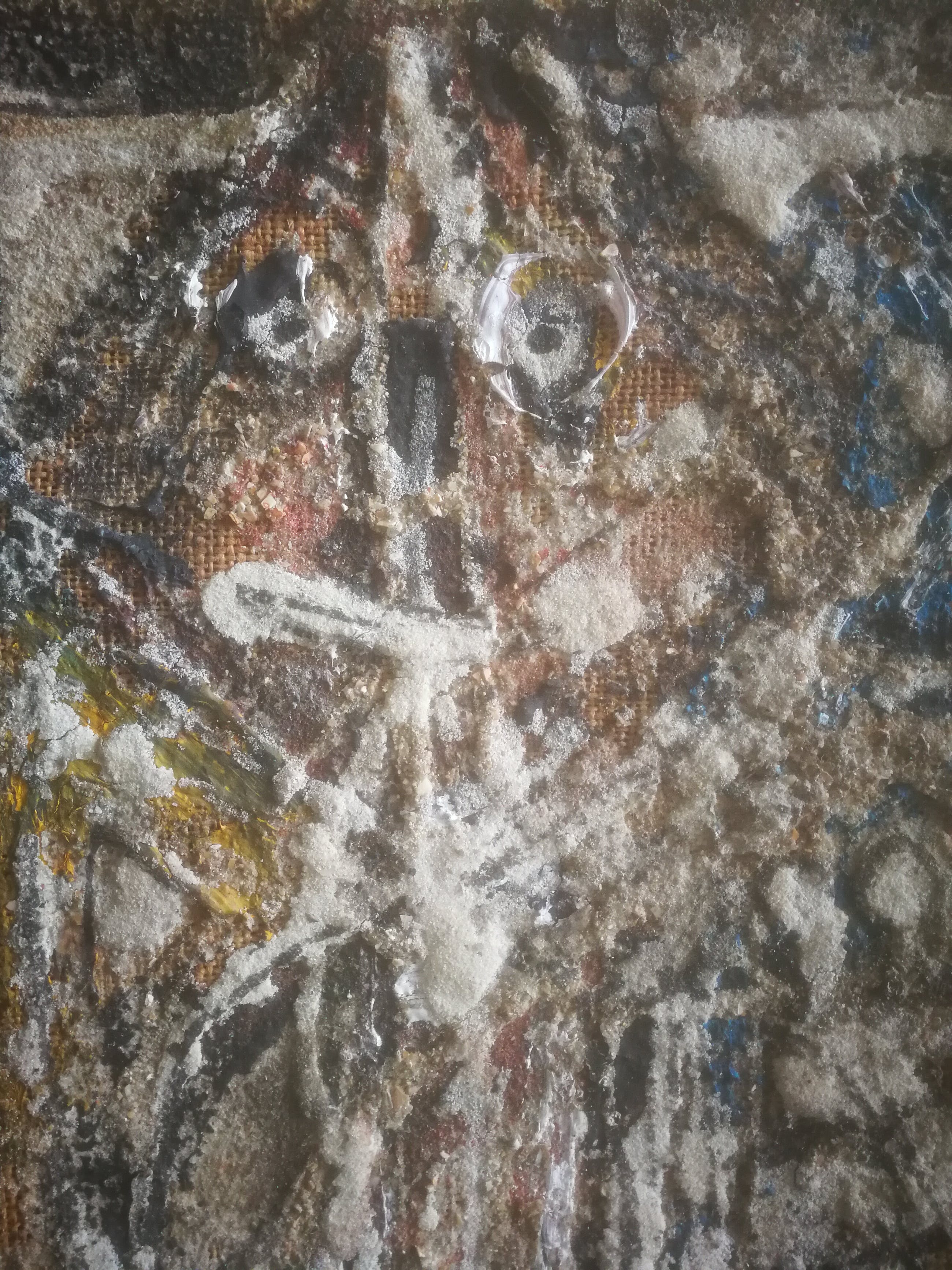 Bijzonder werk. Algemeen goede staat. Op jute. Volgens mij rechtsonder signatuur ingekrast. Onmiskenbaar van deze kunstenaar. Zie foto's.