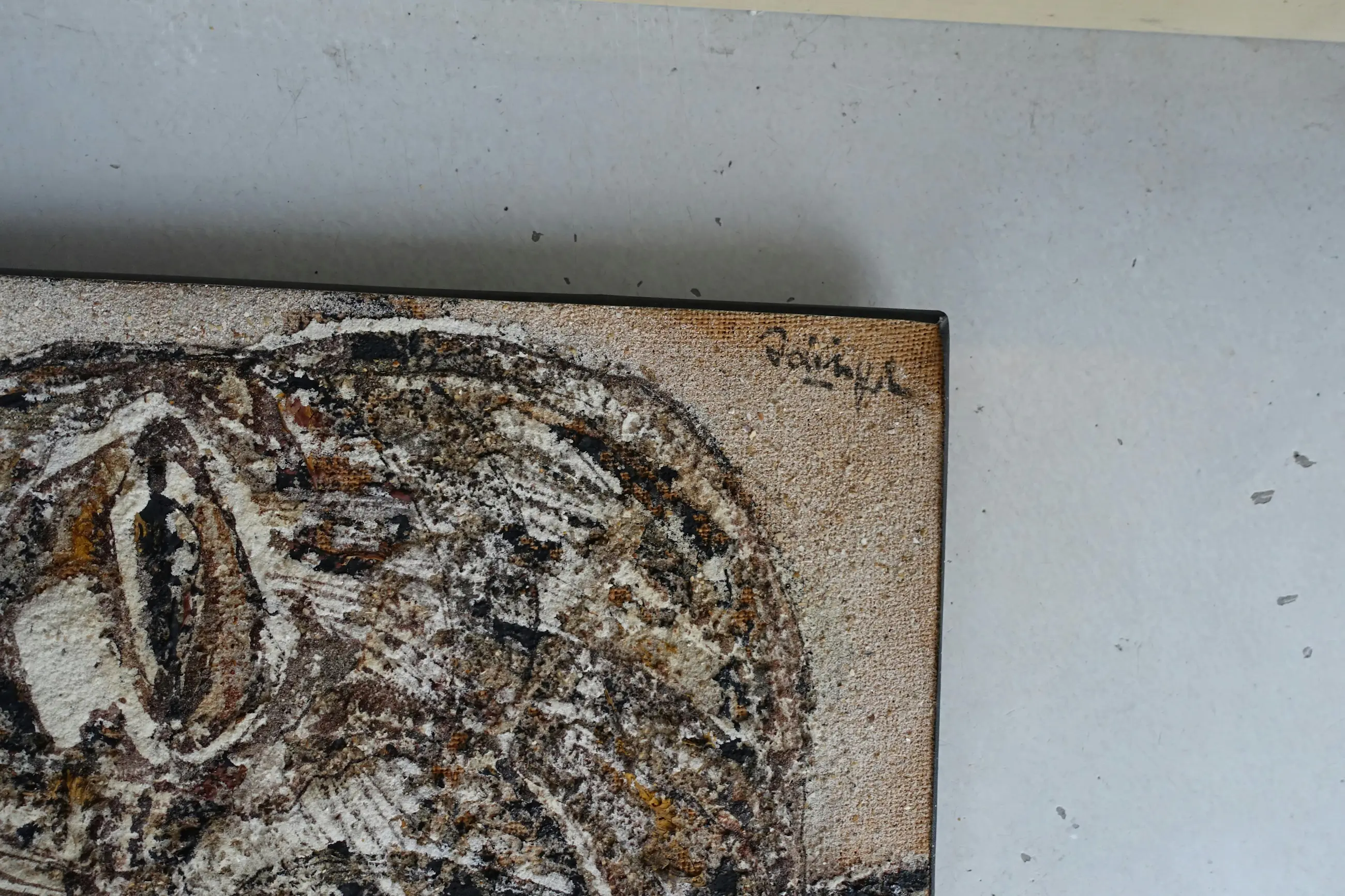 expressief- afrikaans werk. Adringa heeft in Frankrijk academies bezocht, Heeft ook in Nederland geexposeerd . Het werk is een mix van Afrikaans, materiekunst en expressionisme