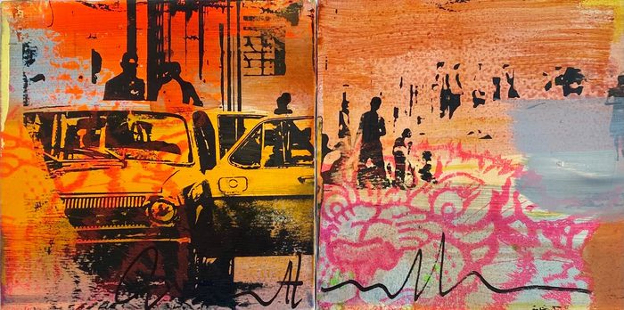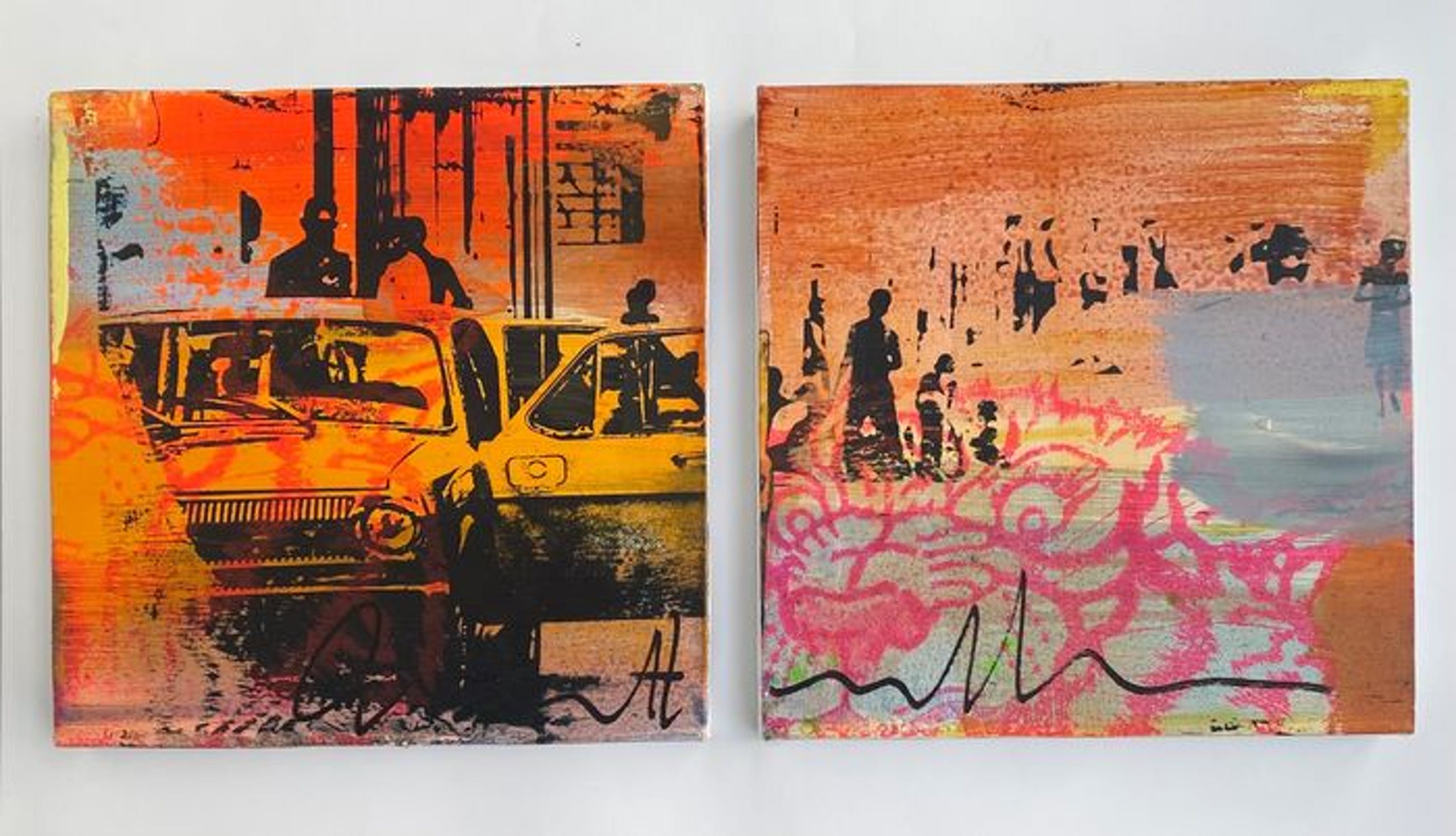 Dit bijzondere twee luik bestaat uit twee schilderijen van 30×30 cm en is gemaakt door de kunstenaar George Heidweiller met ervaringen opgedaan in de USA en in India geschilderd met acrylverf en gemengde techniek op linnen.