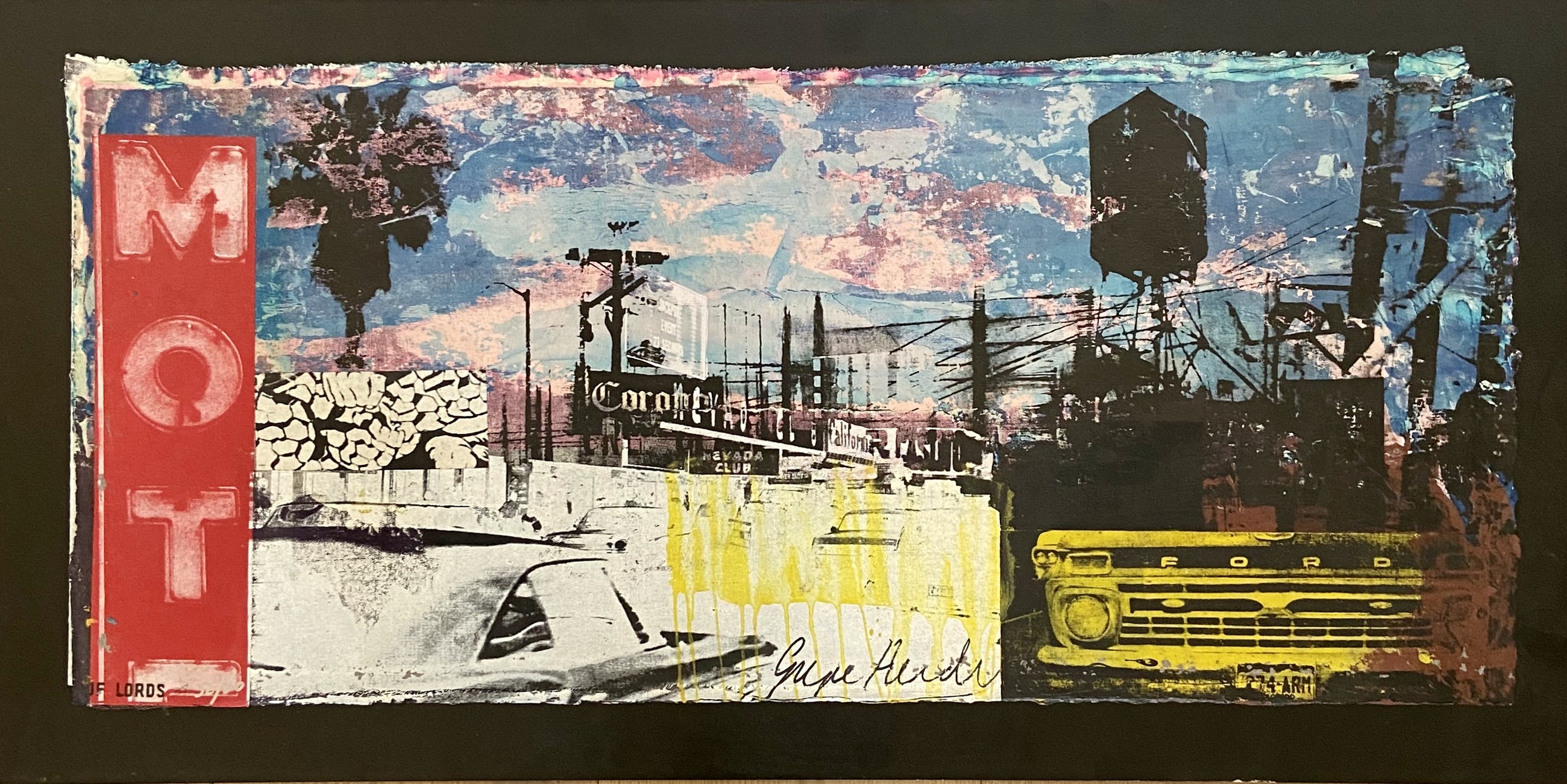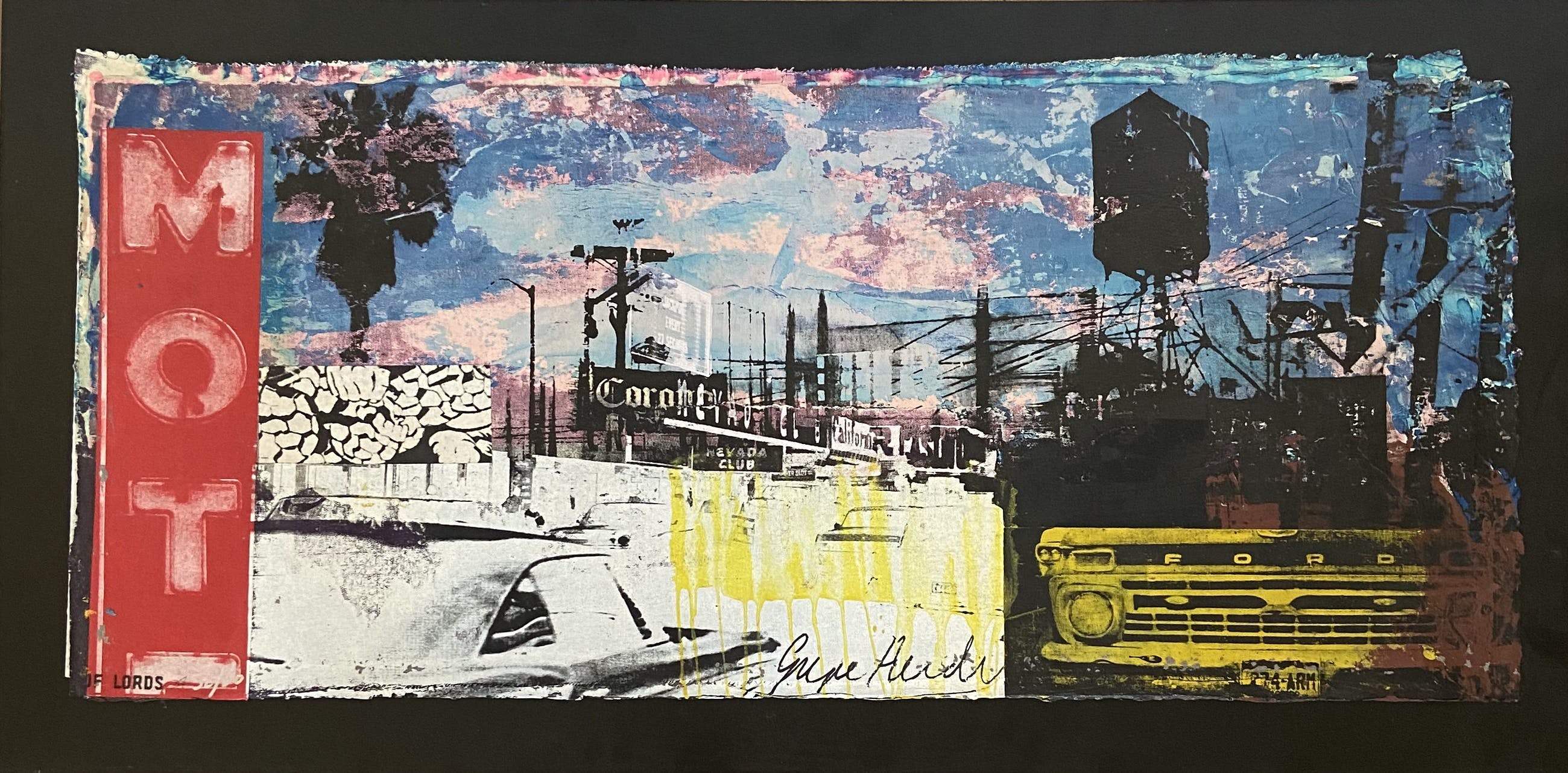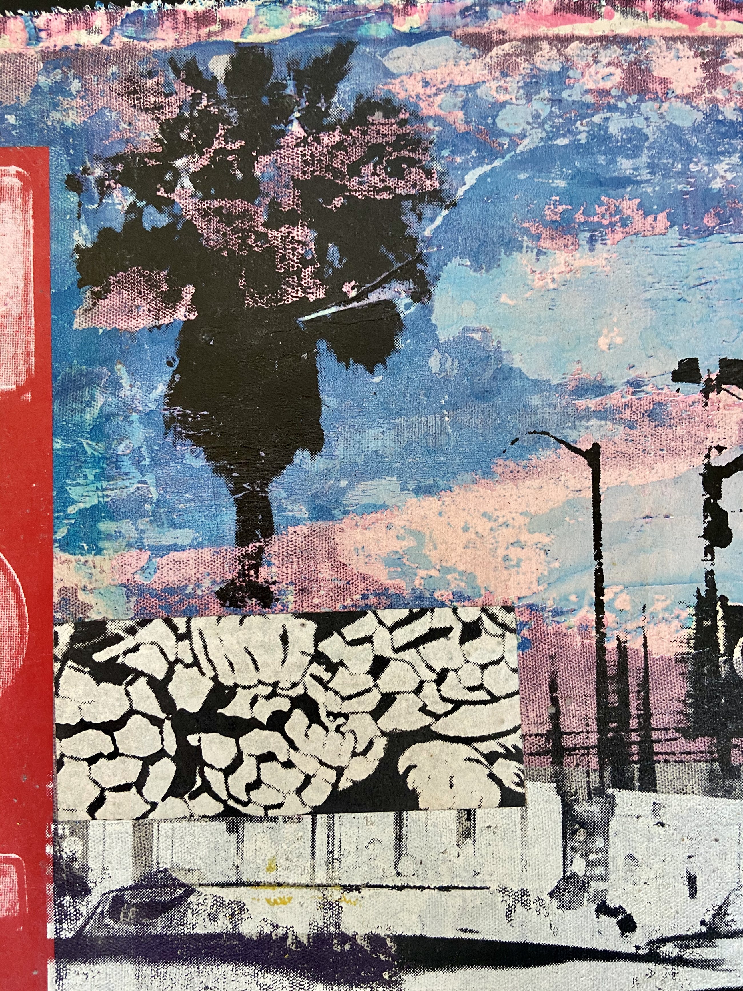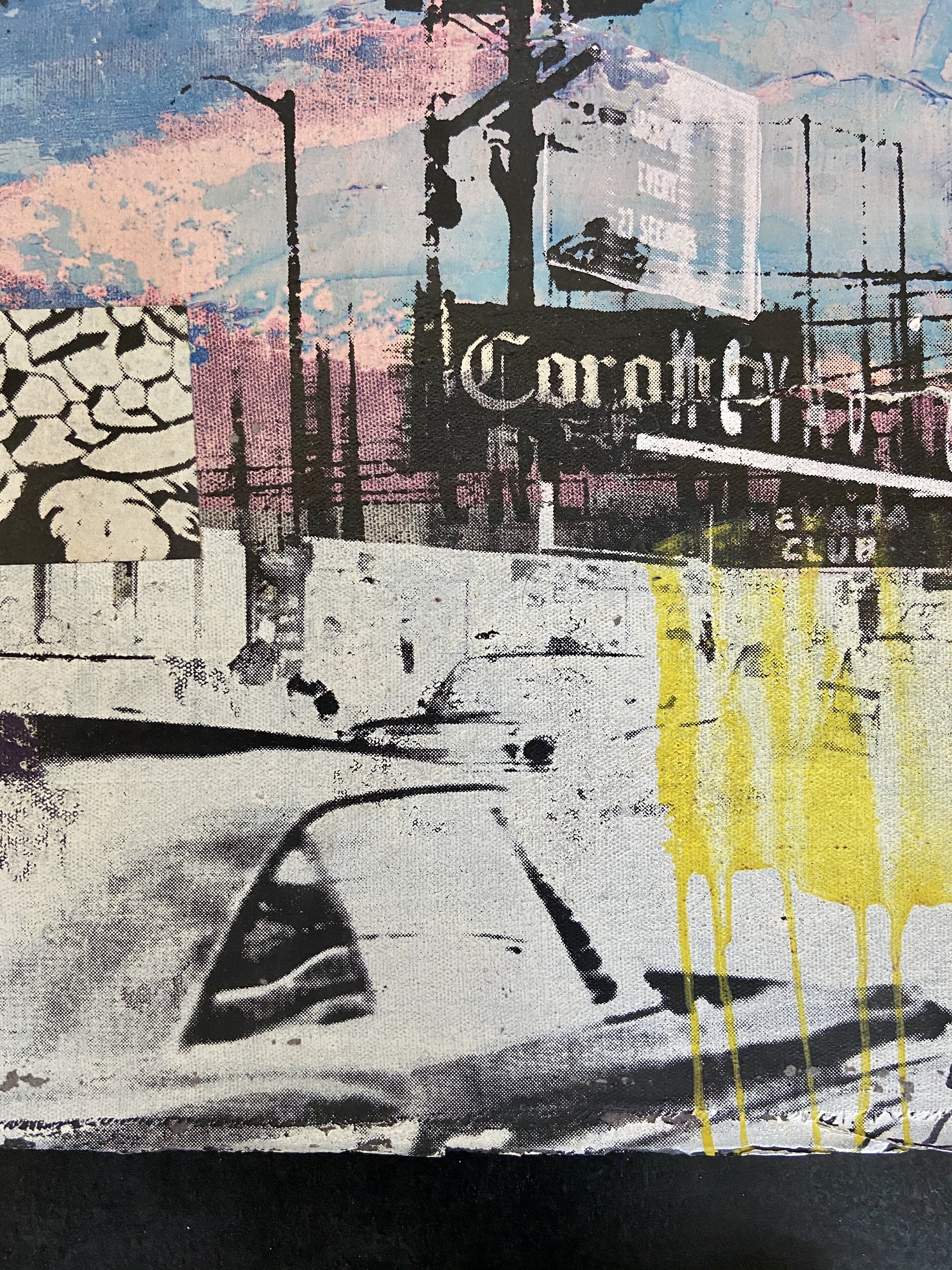 maar ook visuele fragmenten van diverse afkomst. Veelal westerse en oosterse iconen naast elkaar. Hij verrast door een heldere beeldtaal en een