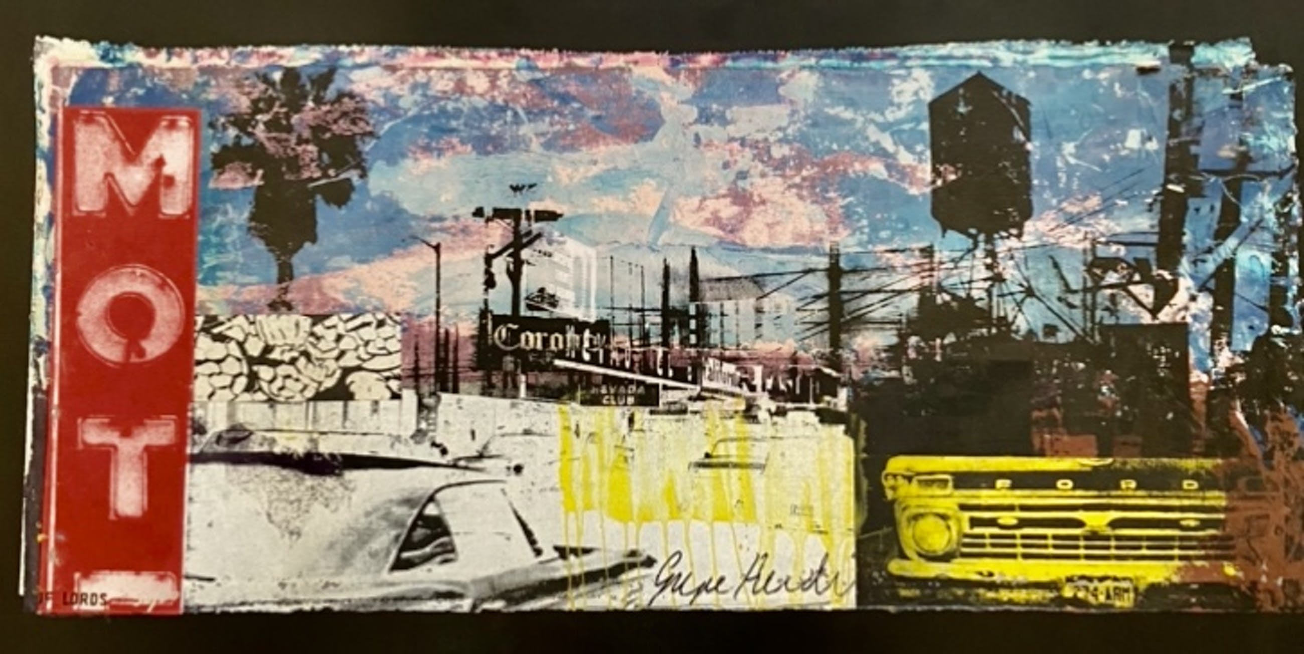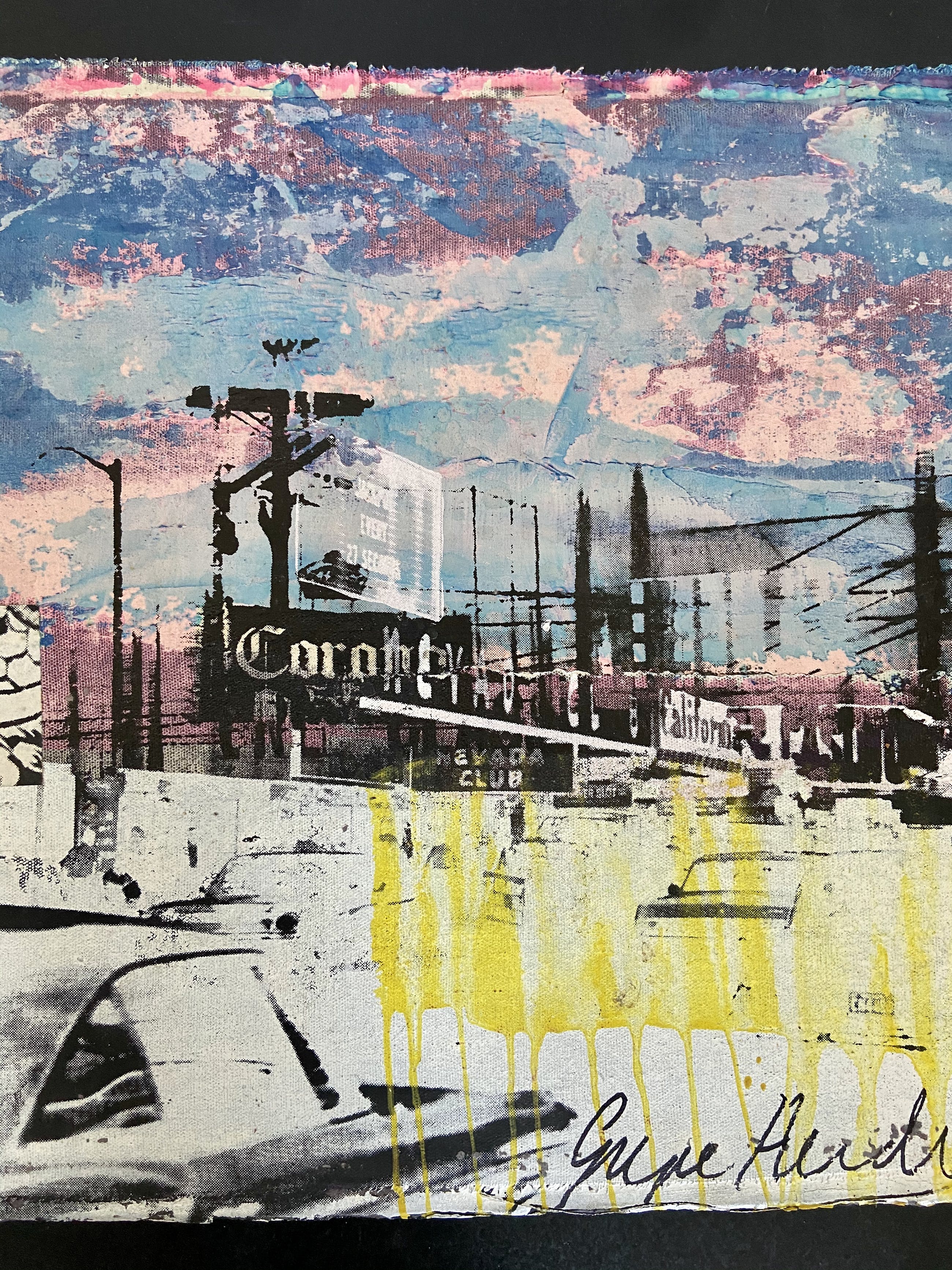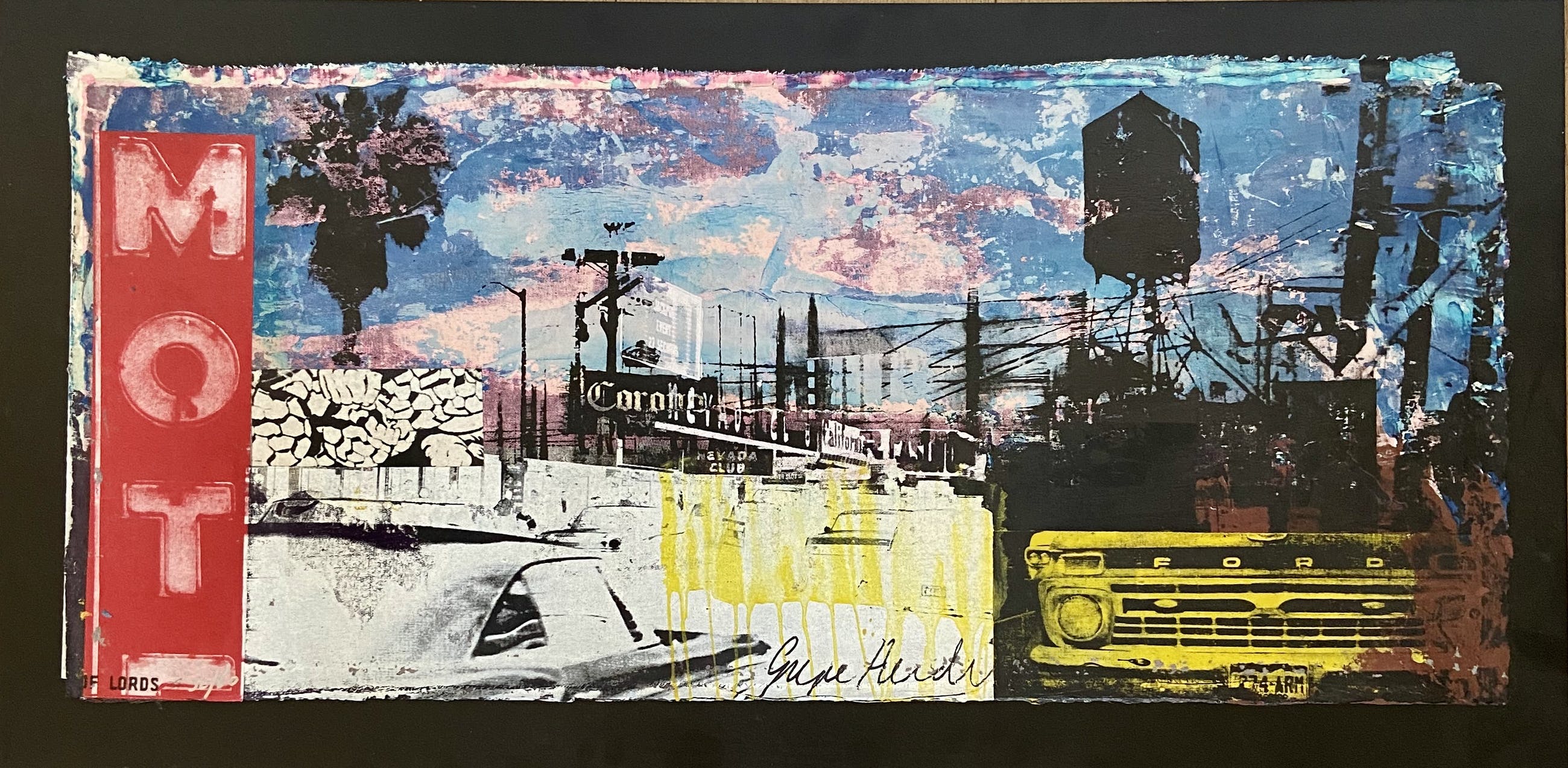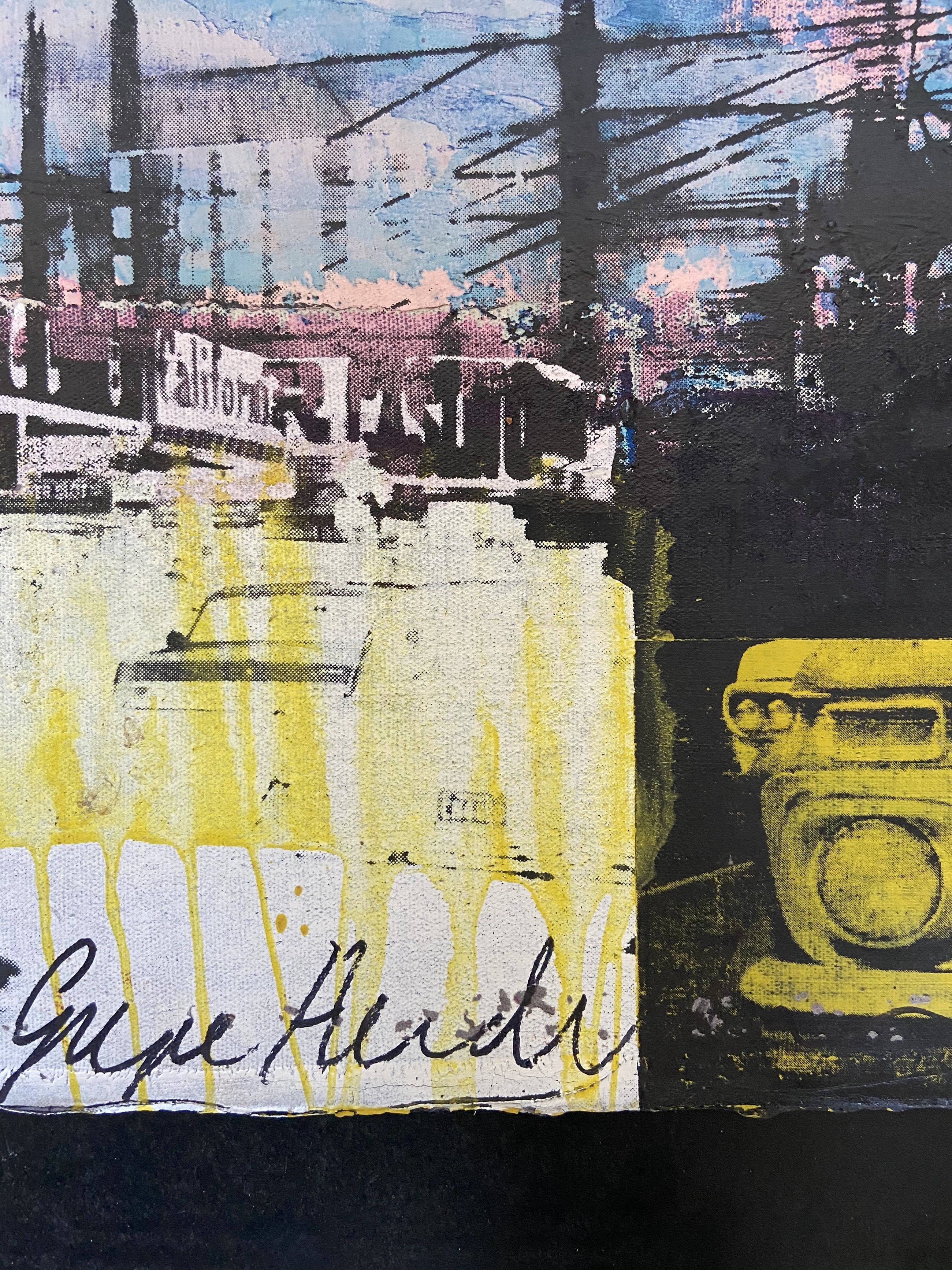 maar ook visuele fragmenten van diverse afkomst. Veelal westerse en oosterse iconen naast elkaar. Hij verrast door een heldere beeldtaal en een