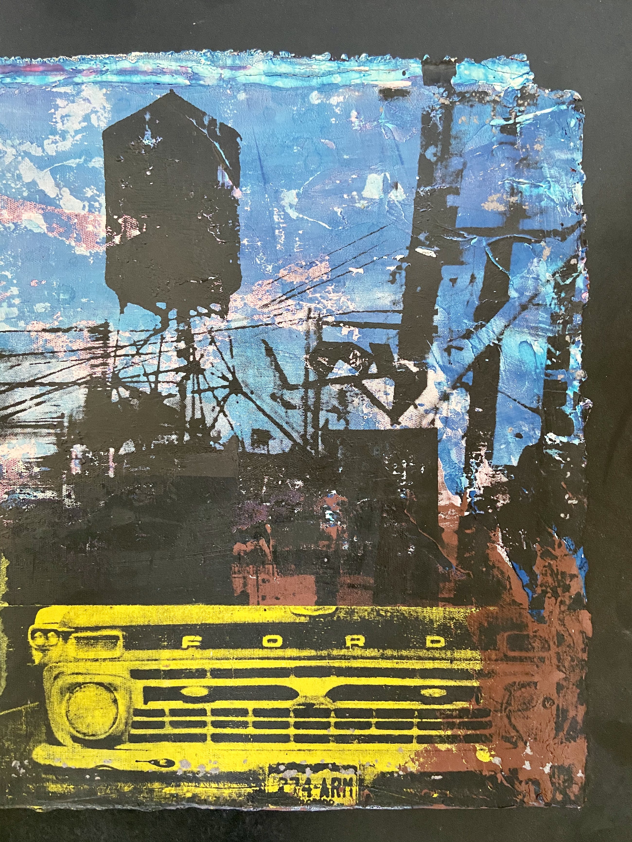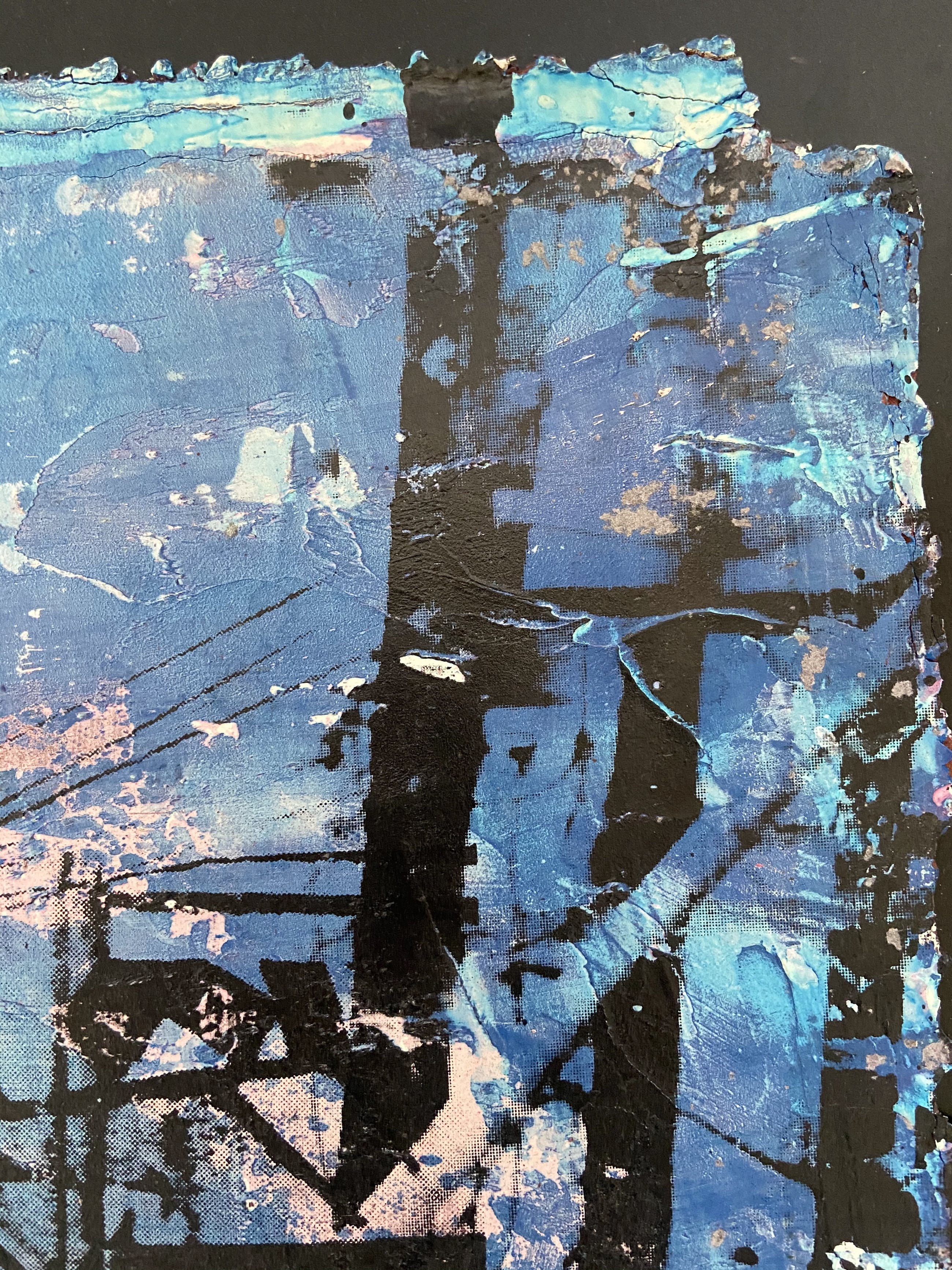 Dit werk zit met dubbele plakband geplakt op een 0,5 cm mdf plaat die er gemakkelijk af te halen is. Ik laat deze plaat 122x61 cm. zitten als bescherming bij verzending.