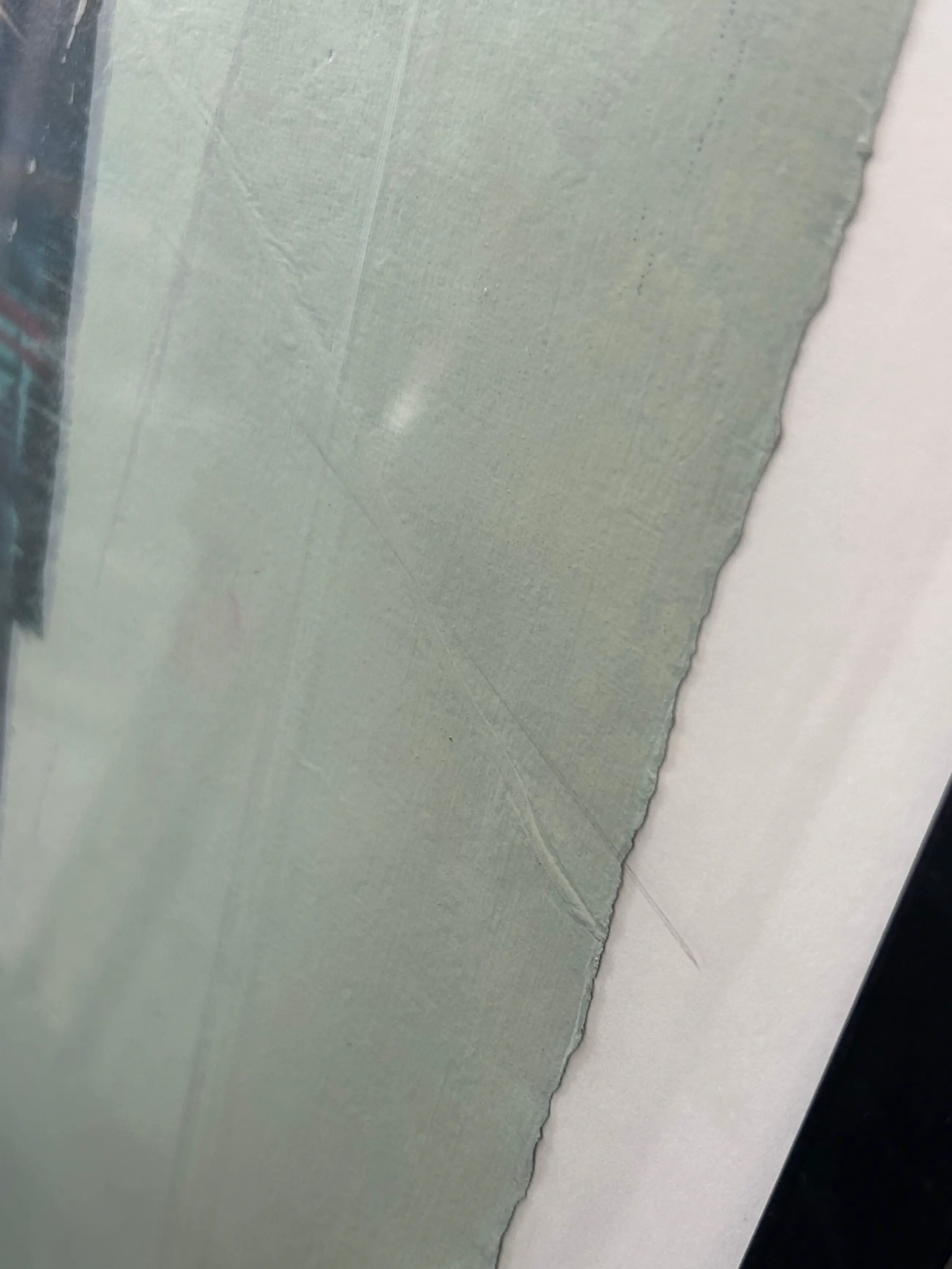| Met strijklicht een oppervlaktekras zichtbaar op de (plexi)glasplaat. Het werk is in zeer goede staat. | |