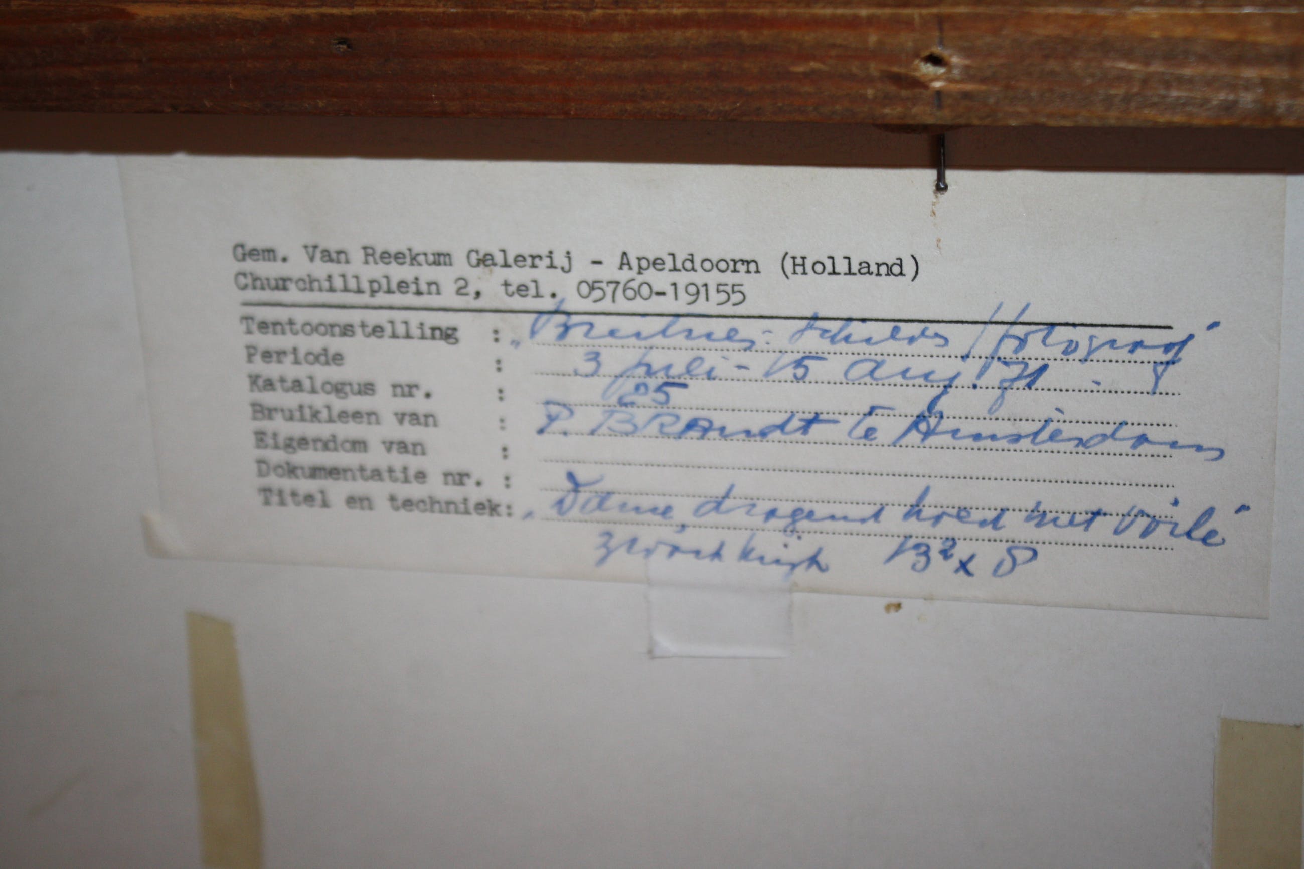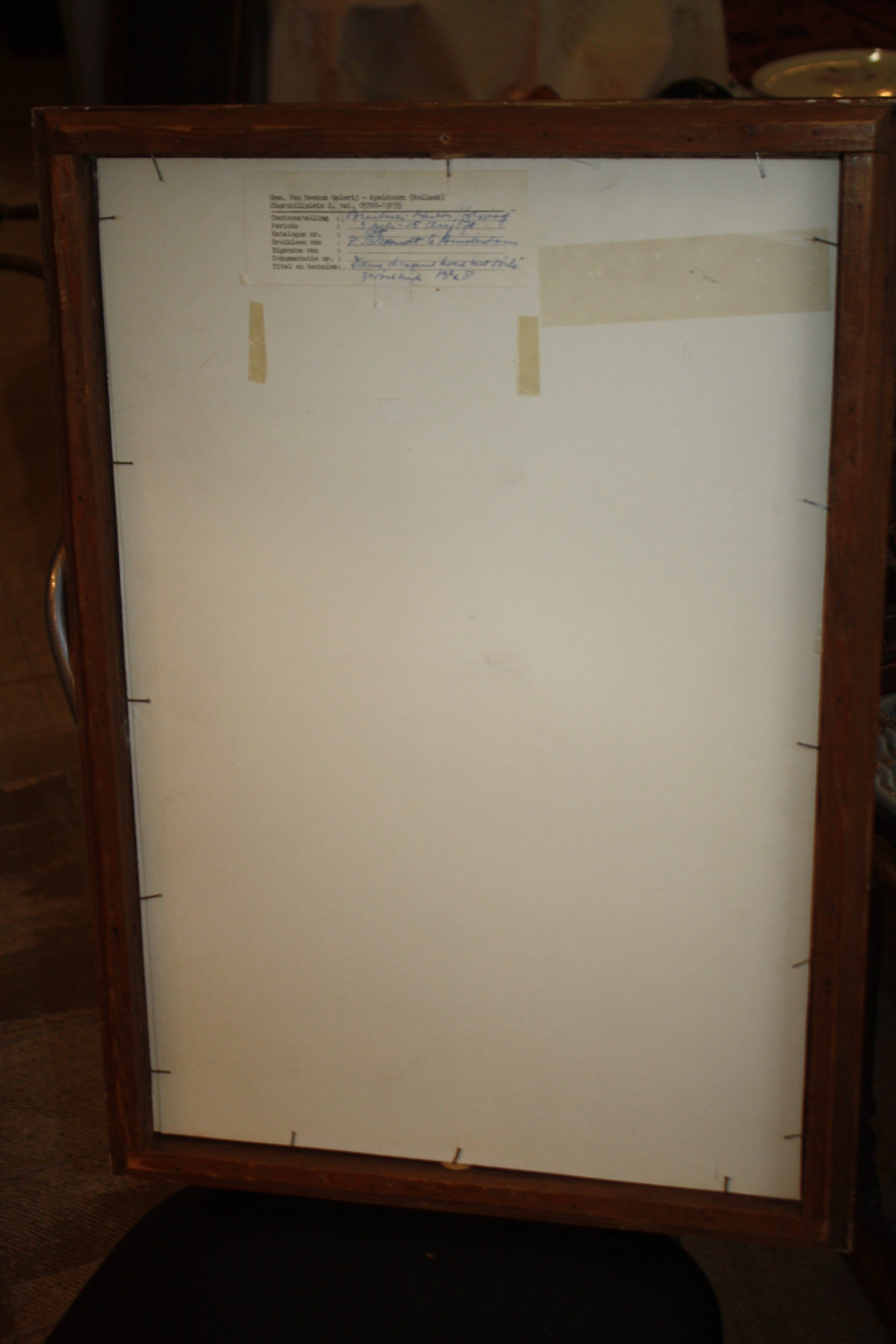 Het werk is af te halen op locatie. Als koper dient u zelf verpakkingsmateriaal mee te nemen. De locatie is: Beverwijk, Nederland