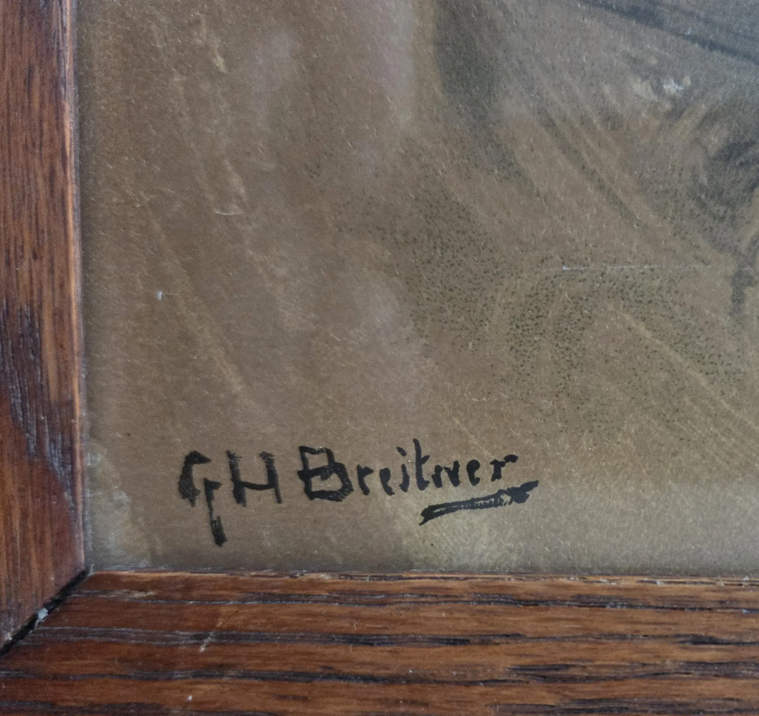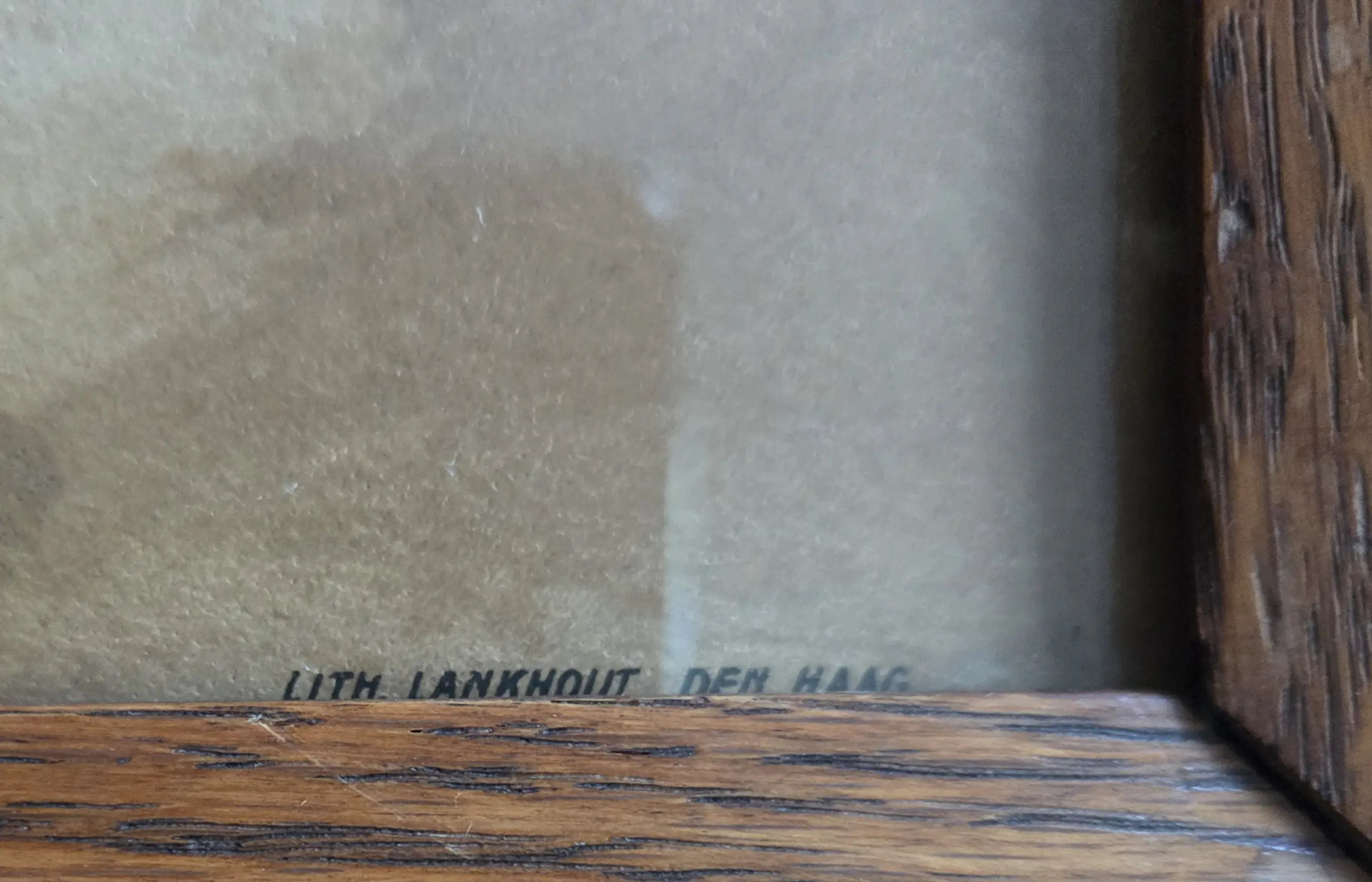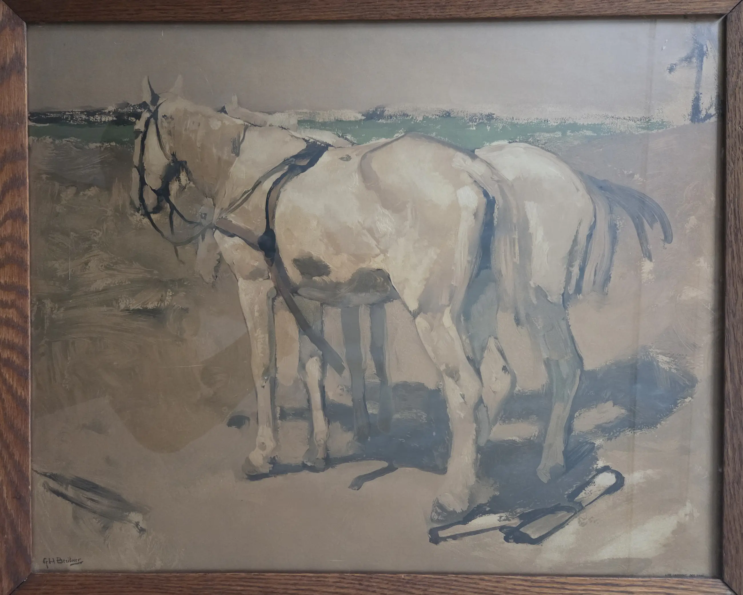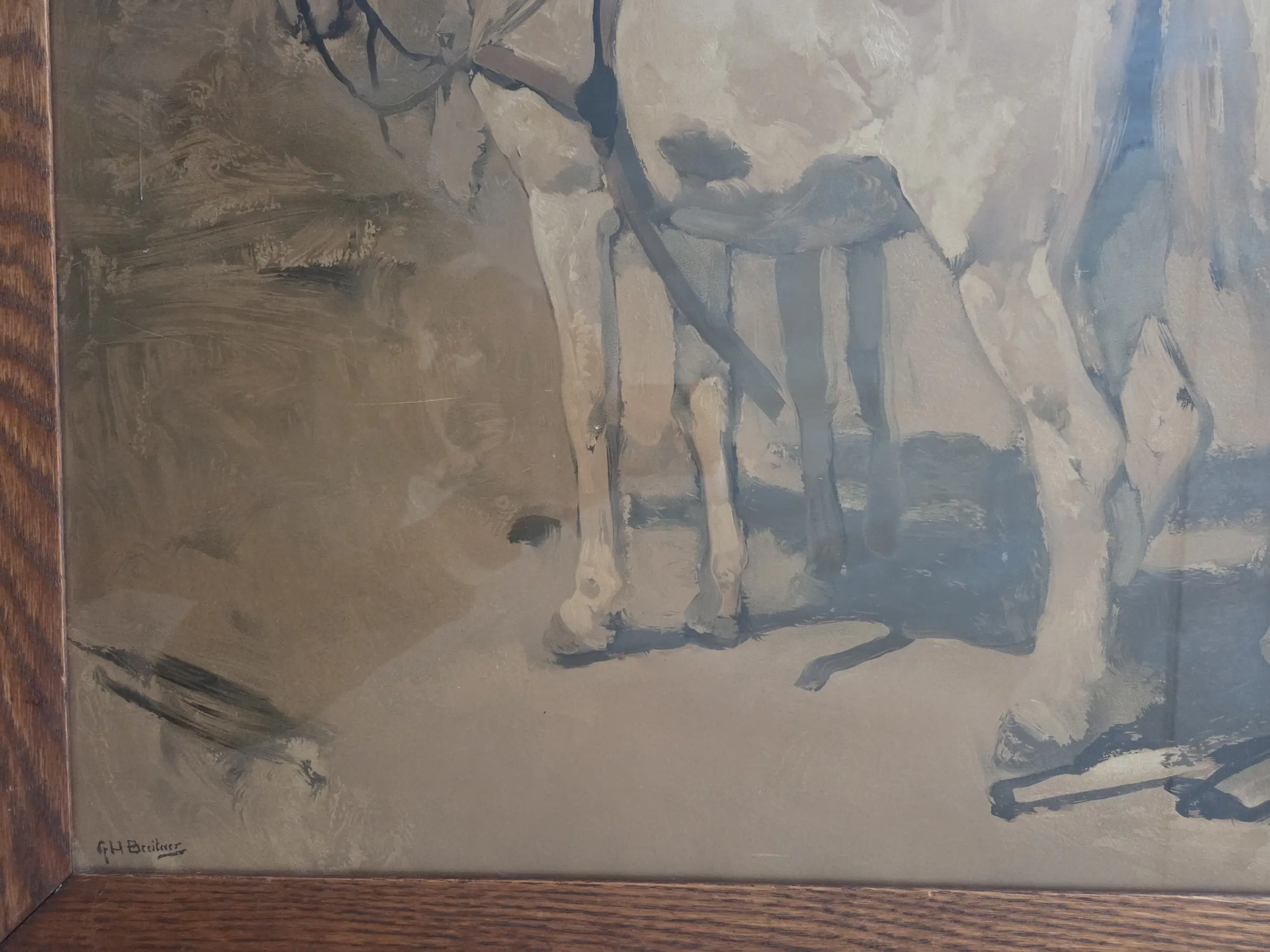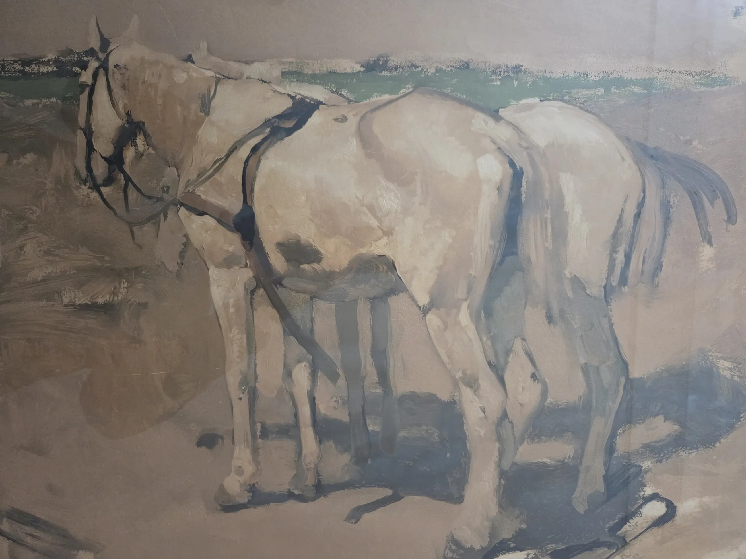 George Hendrik Breitner - Twee witte paarden. Litho. Eiken lijst.
