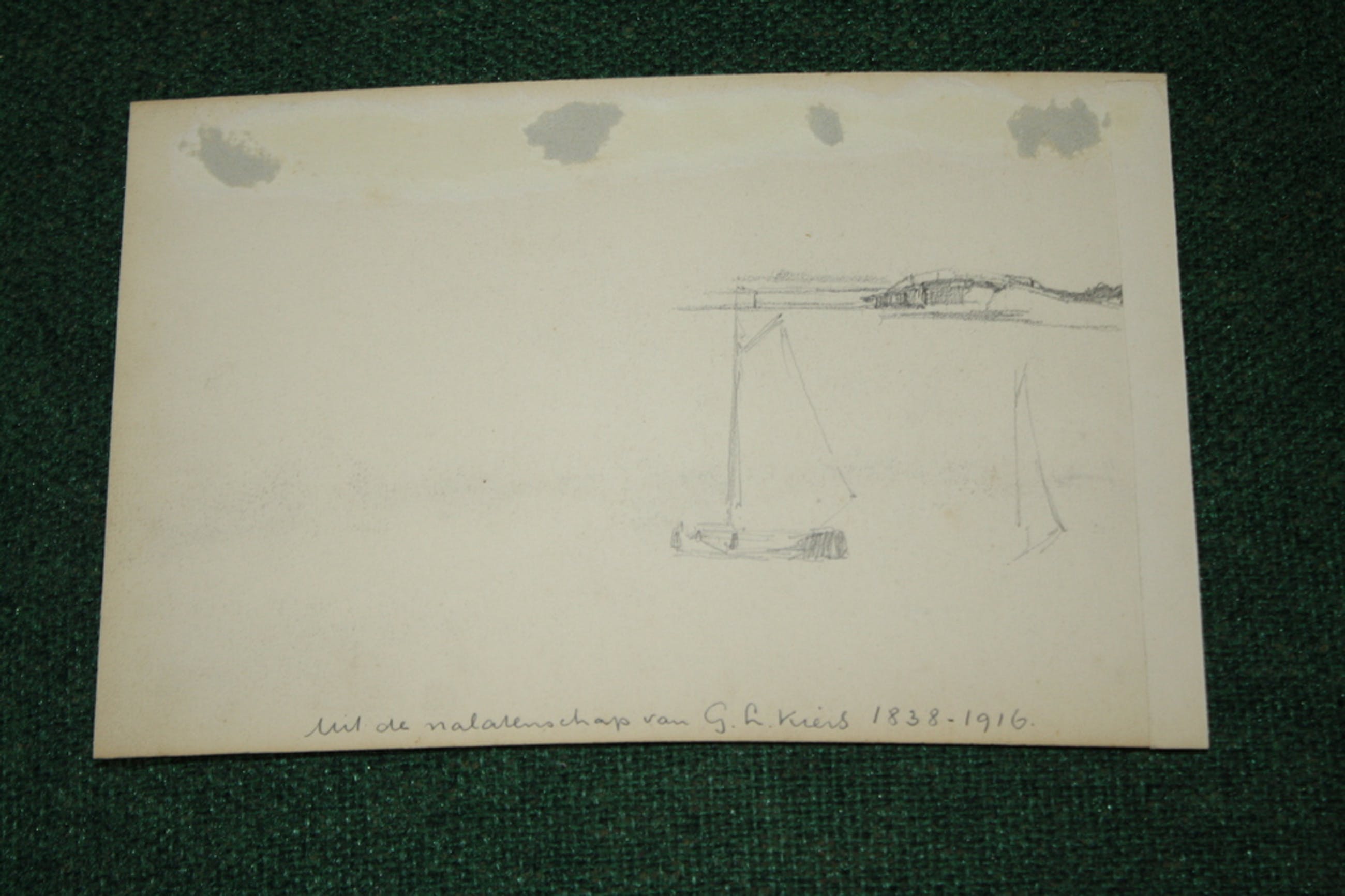 George Lourens Kiers, die vooral bekend is geworden als schilder van zee- en riviergezichten met schepen, is in Amsterdam geboren en krijgt les van de zeeschilder Louis Meijer (1809-1866). Na verhuizingen naar Den Haag en terug naar Amsterdam trekt hij in 1858 met zijn ouders naar Assen, waar hij tien jaar woont om daarna weer naar Amsterdam te gaan, waar hij lid wordt van de vereniging Arti et Amicitiae. Hij wordt zowel besproken in 'Schilders van Amsterdam' (2000) als in 'Schilders van Drenthe' (2003). Het Drents Museum heeft enkele schilderijen van hem, het Stadsarchief van Amsterdam bezit een achttal van zijn werken en ook het Frans Hals Museum in Haarlem en het Rijksprentenkabinet in Amsterdam bezitten werk van hem