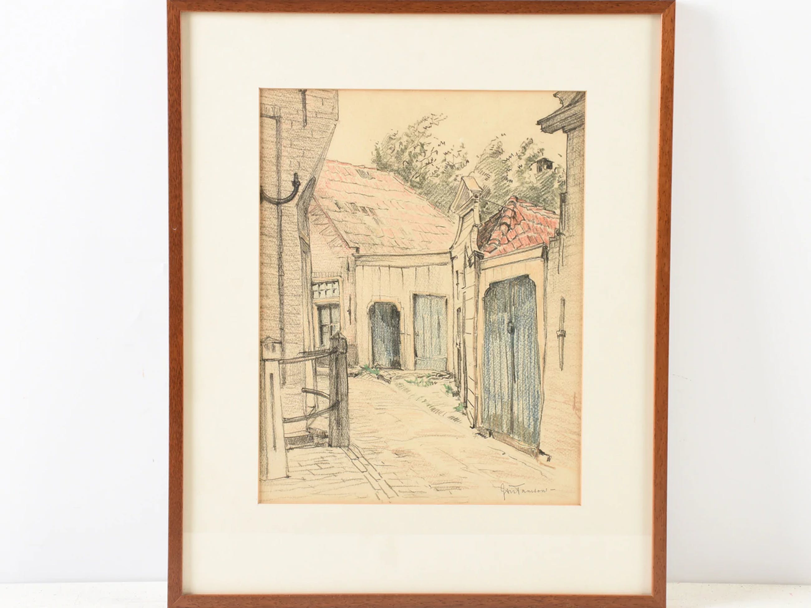 fraaie kleurtekening , gesigneerd met potlood , en ingelijst met passe-partout .