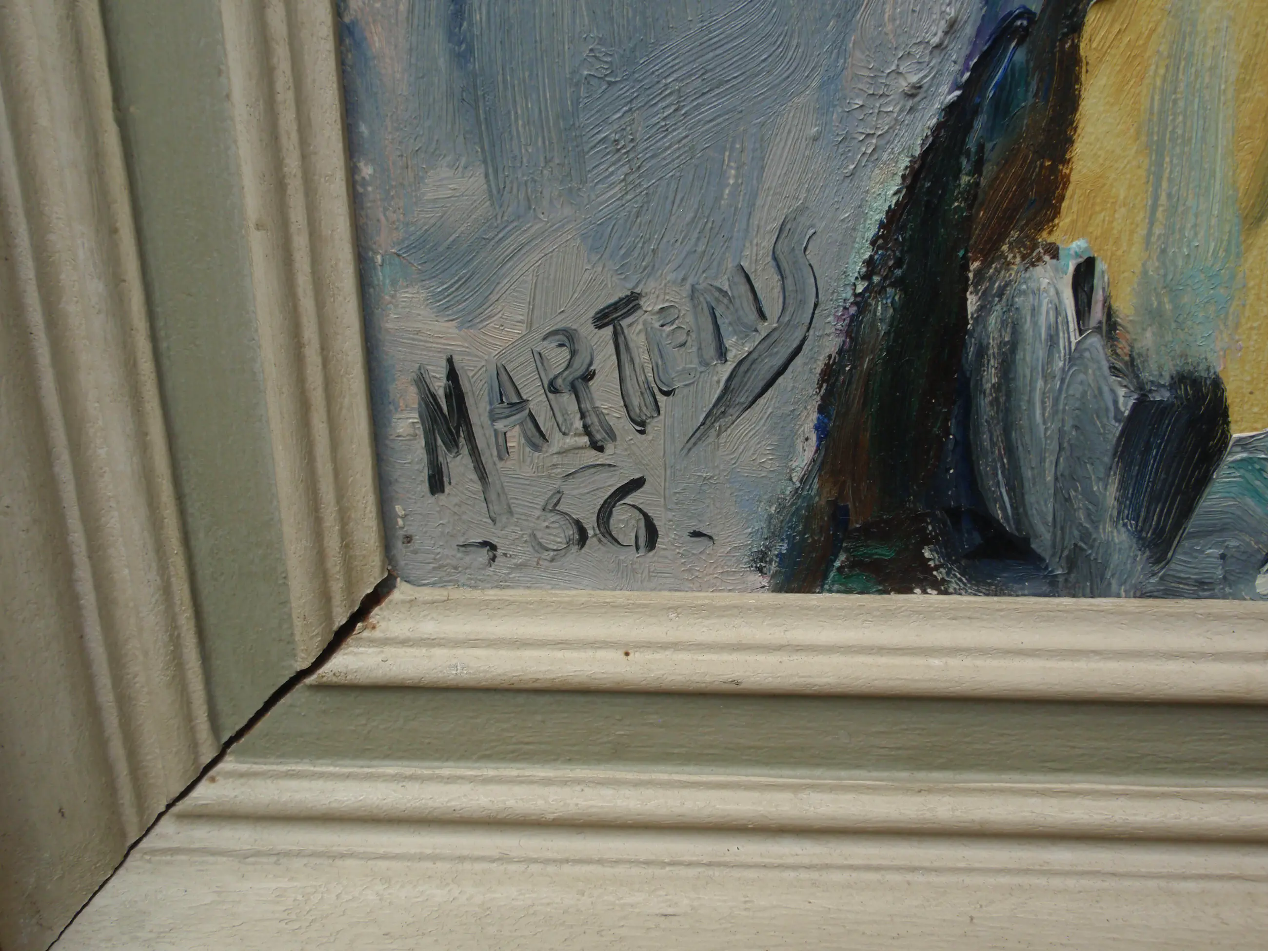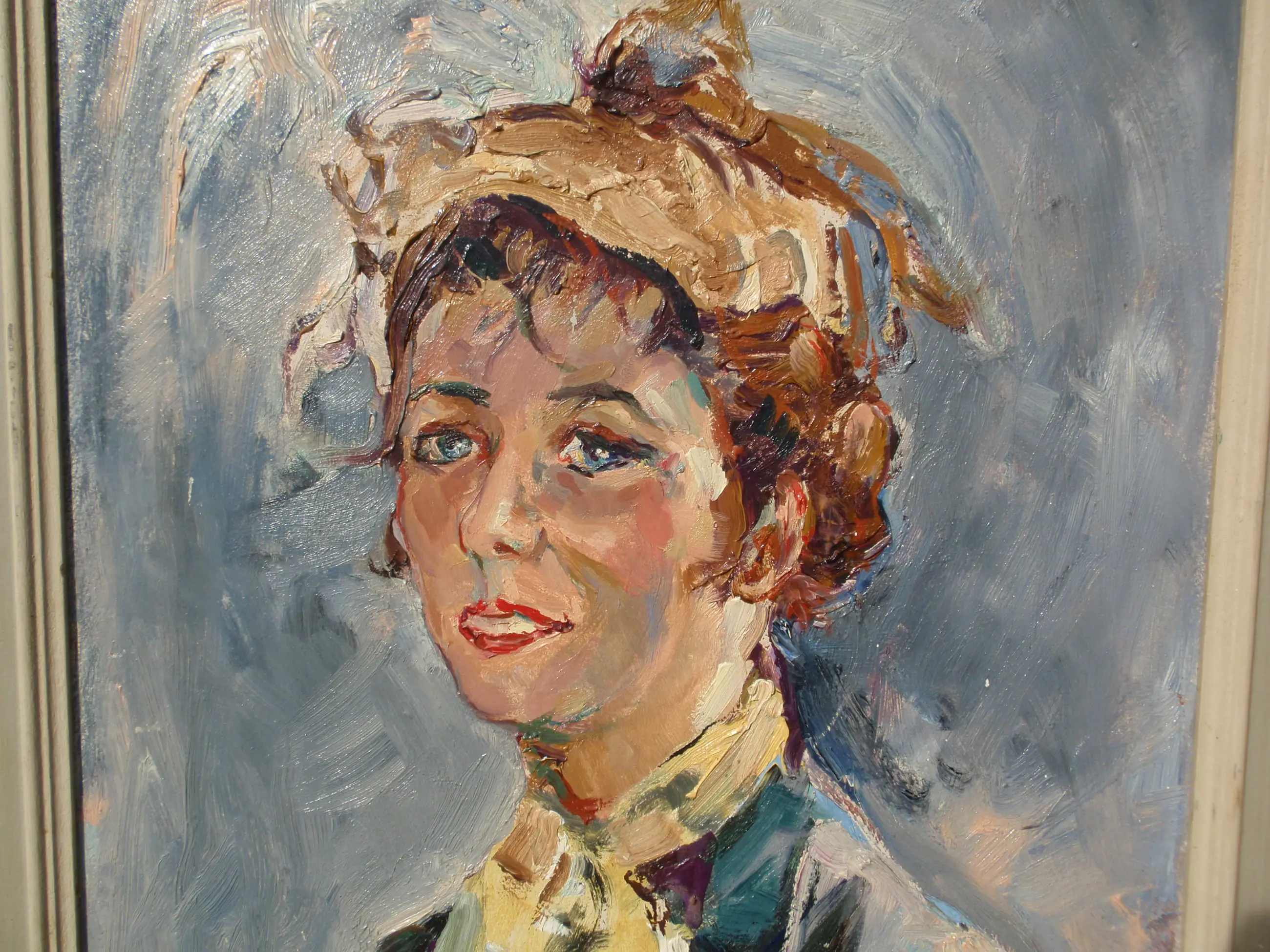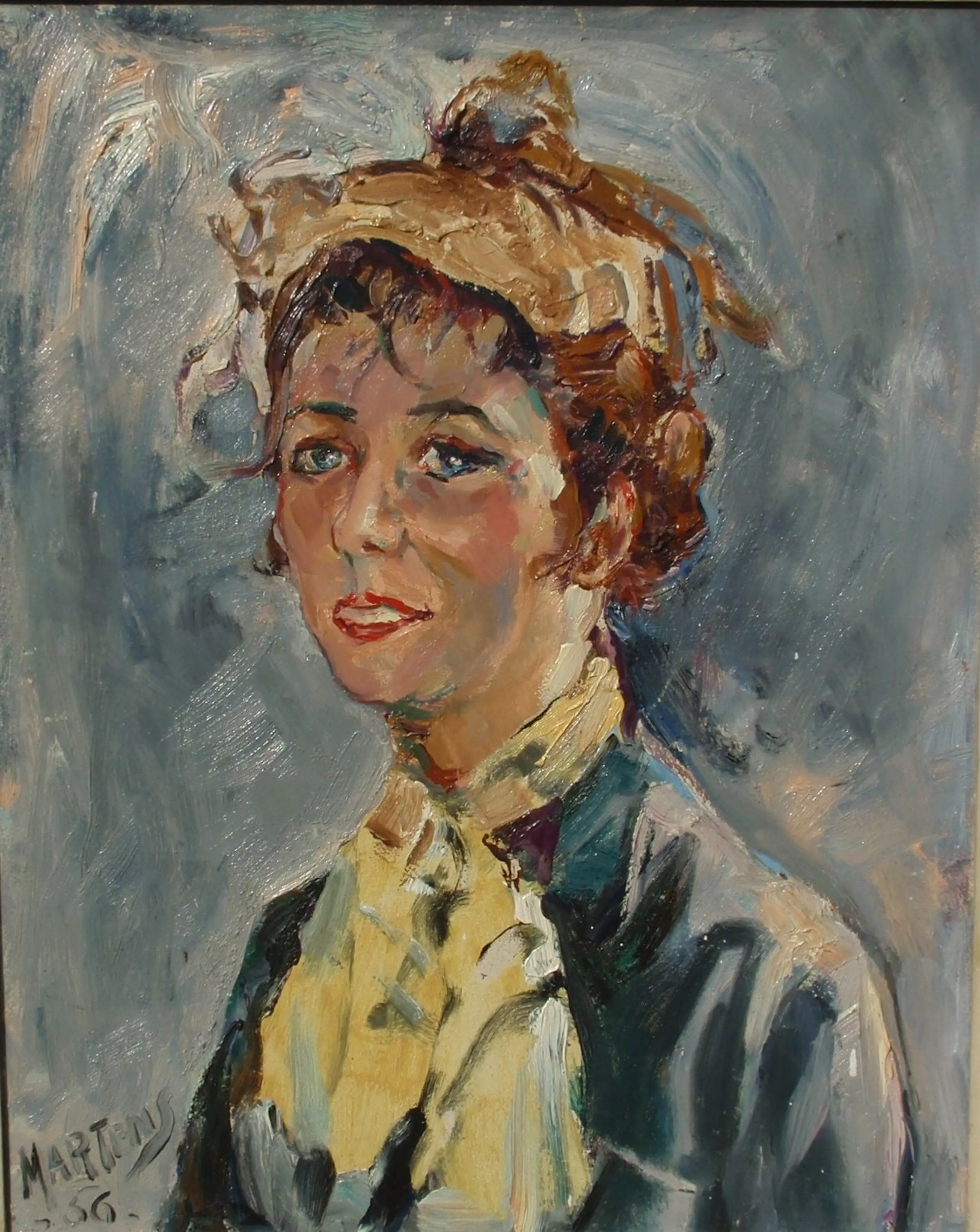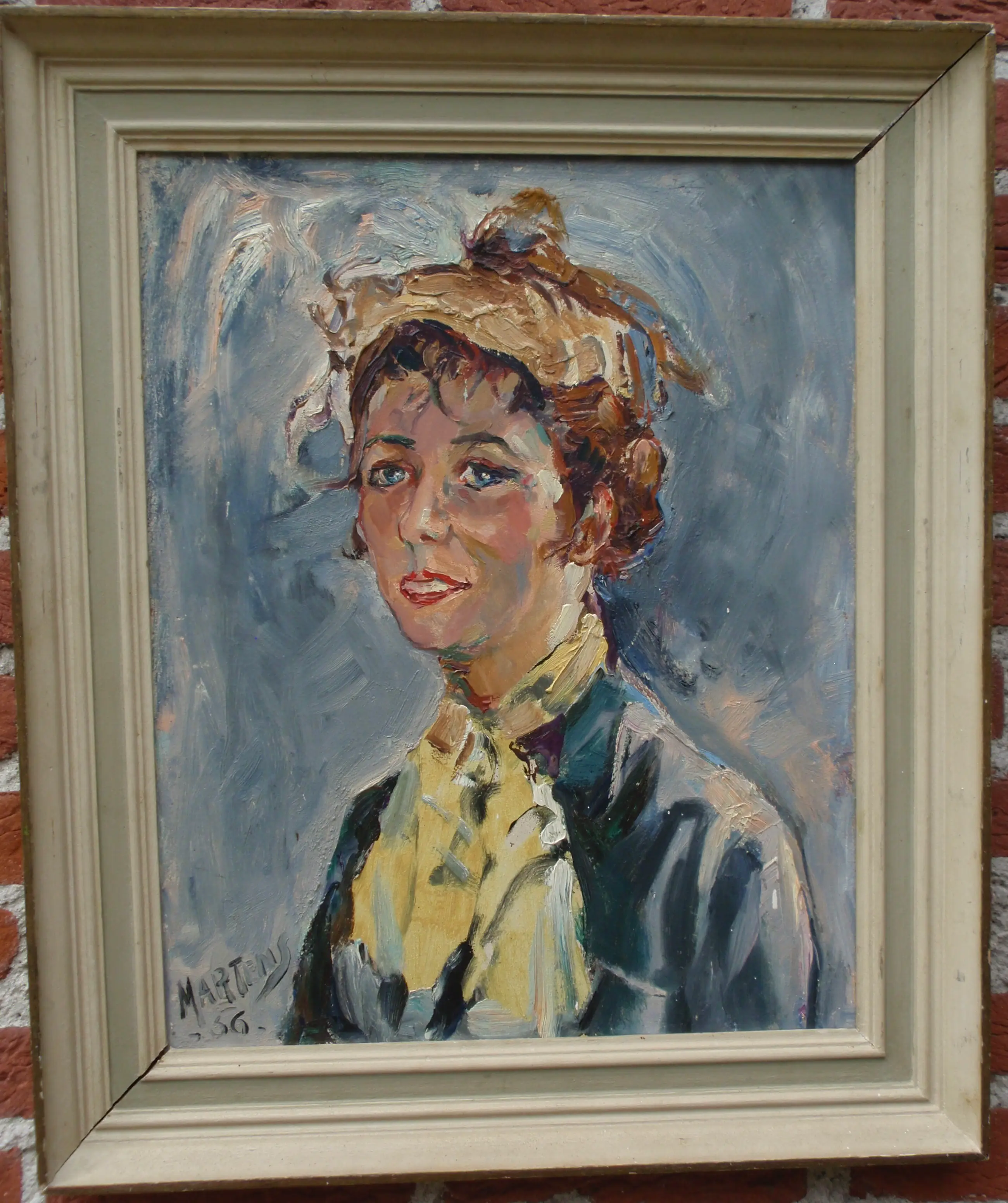 Uitbundig geschilderd vrouwenportret van George Martens lid en mede oprichter van de ploeg. schilderij is in zeer goede staat, uit particulier bezit en nooit uit de originele lijst geweest. Martens kan worden beschouwd als een typische vertegenwoordiger van het Groningse expressionisme. Zijn werk wordt gekenmerkt door krachtige kleuren en een spontaan penseelgebruik. Portretten, stadsgezichten en landschappen zijn dominant aanwezig in zijn oeuvre.