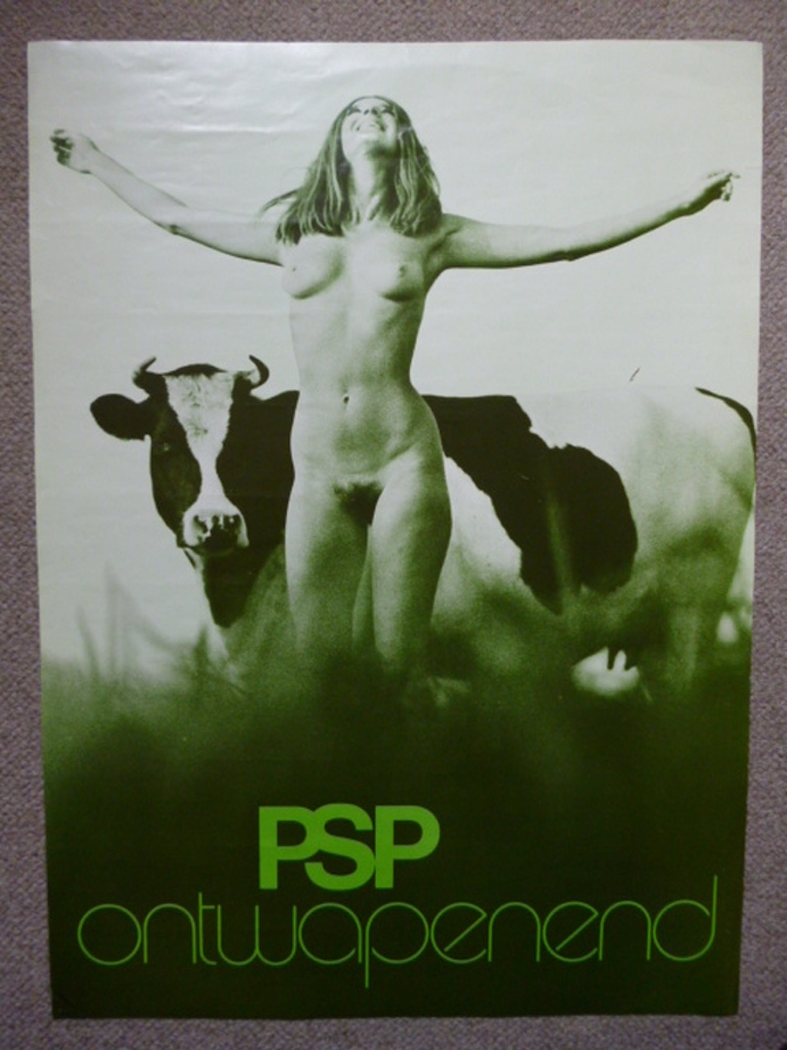 Offsetposter uit 1971, getiteld "PSP ontwapenend".