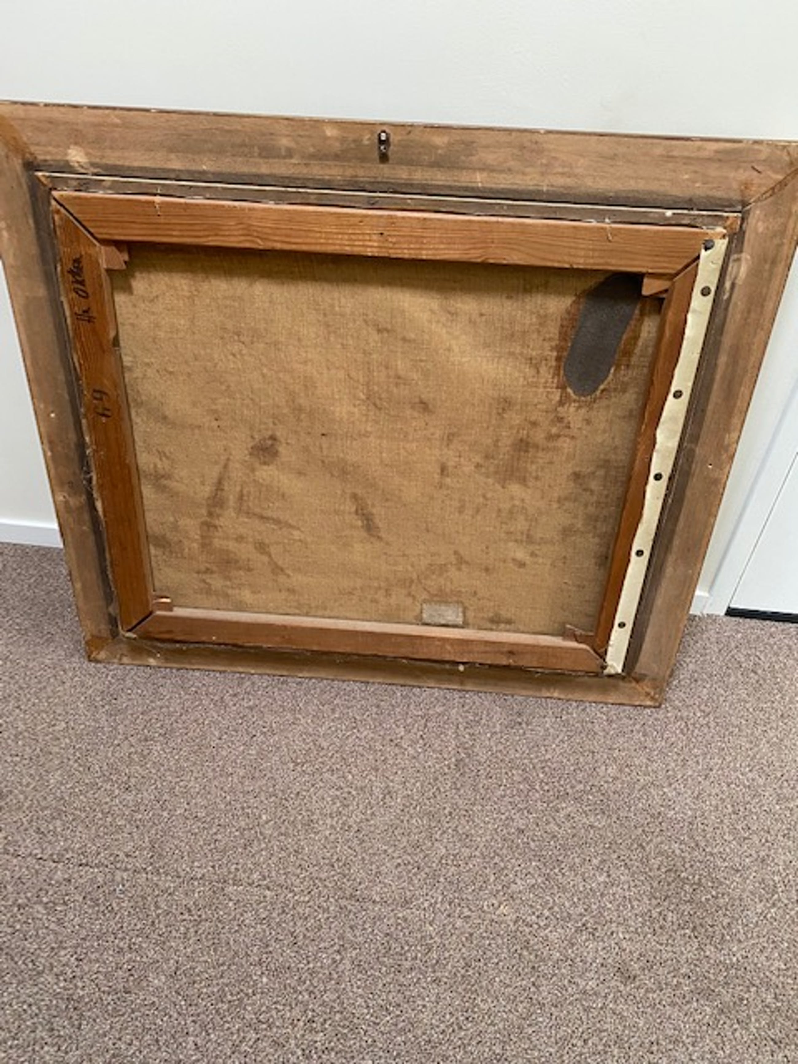 Het schilderij is langere tijd geleden gerestaureerd, dit is zichtbaar aan de achterzijde. De bijbehorende lijst heeft enkele onopvallende gebruikssporen.