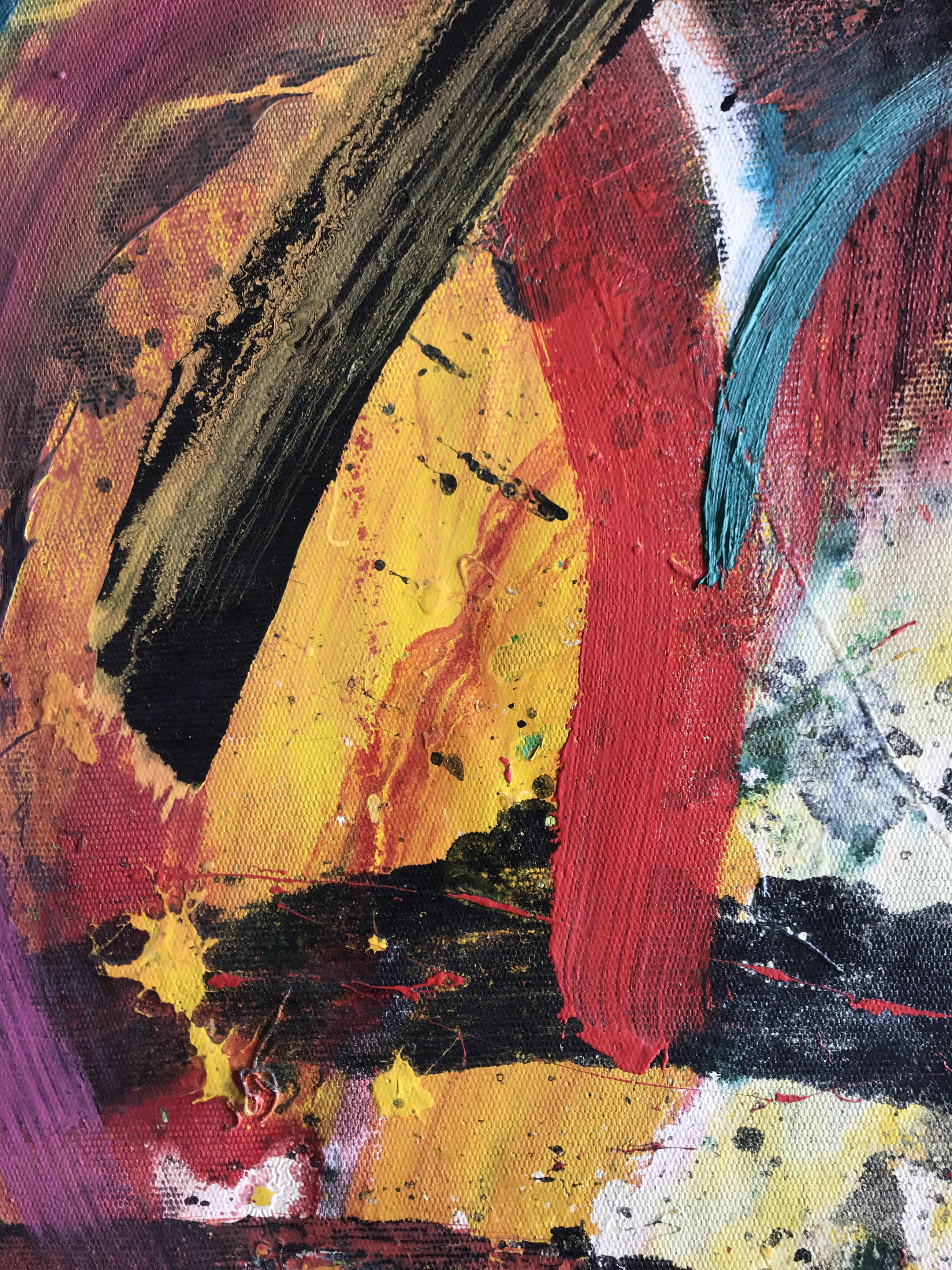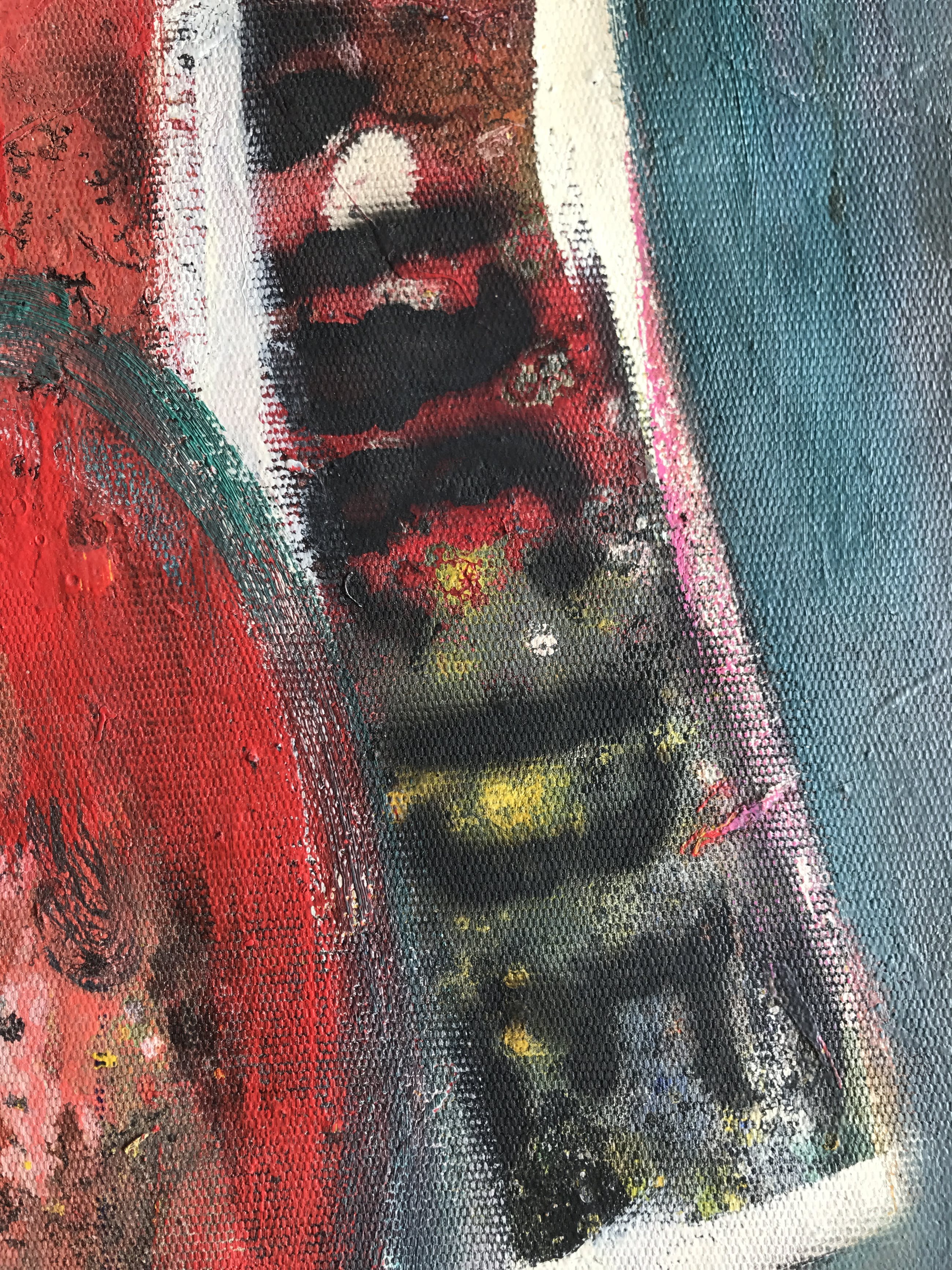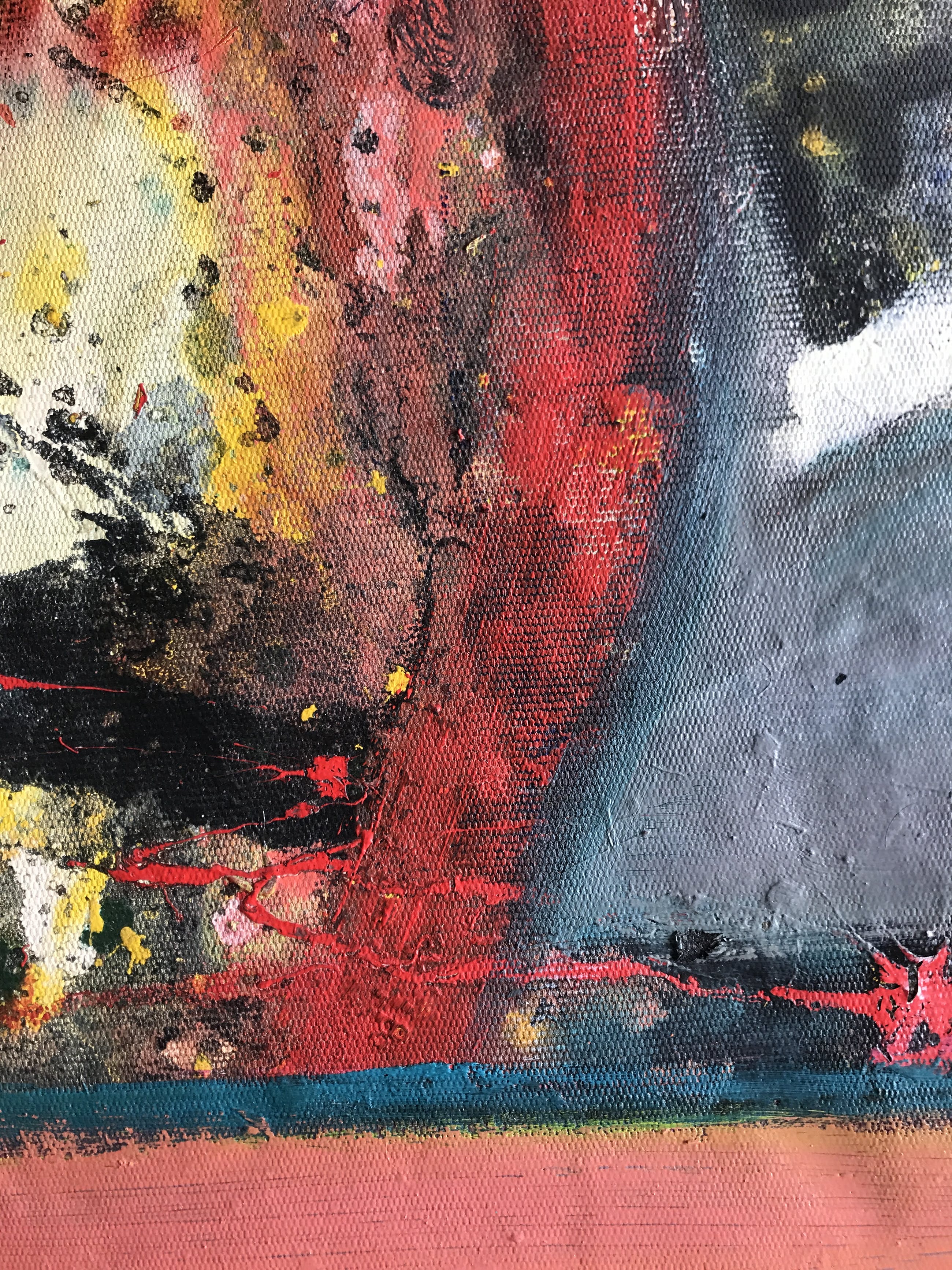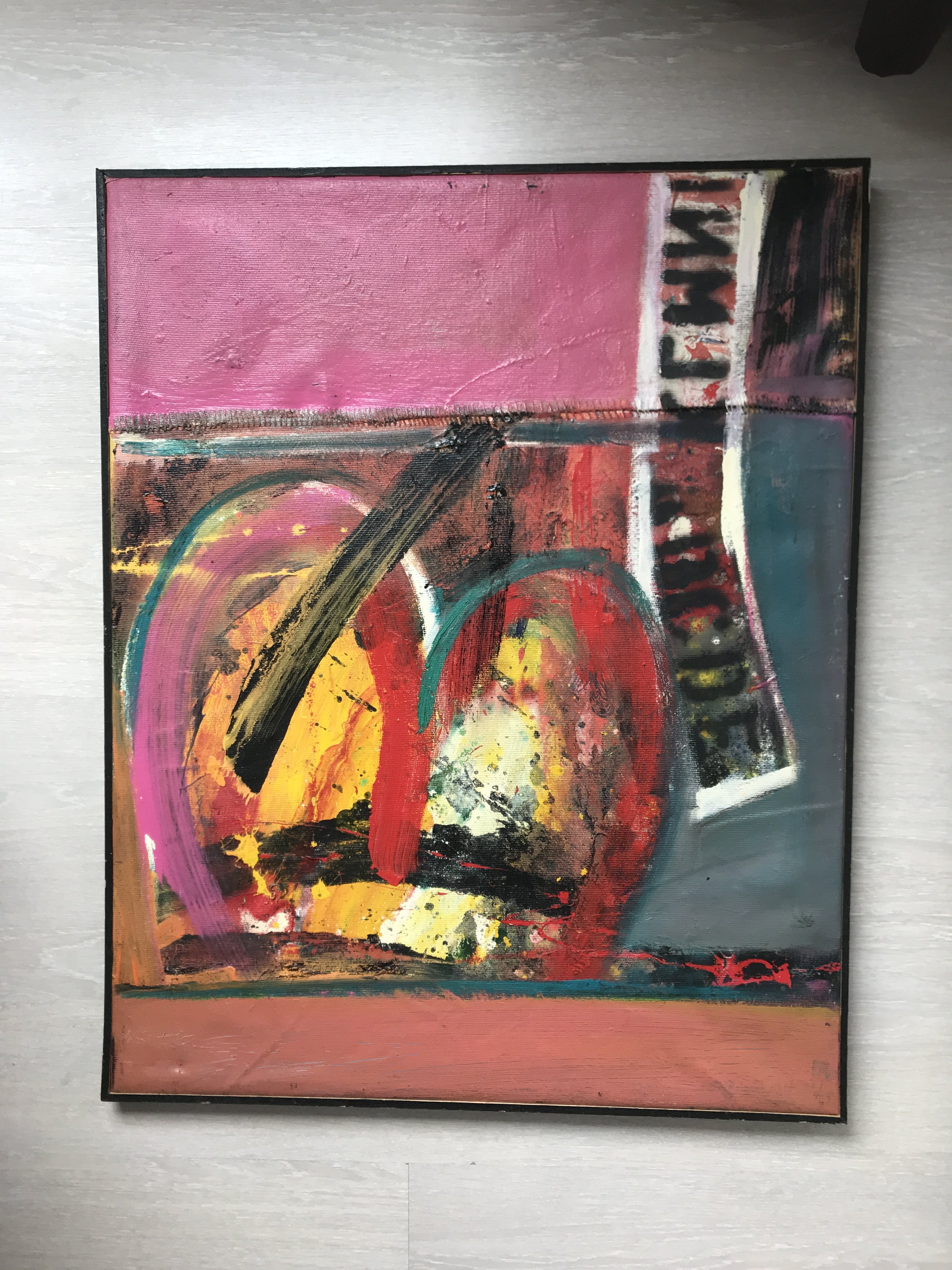 Ik heb dit werk ooit direct van George op zijn erf gekocht. Hij had het toen met balpen gesigneerd maar dat ik helaas weggevaagd. Het werk is doek gespannen op typisch Suriname hardhout. Dit is een van zijn vroegere werken welke niet meer verkrijgbaar zijn.