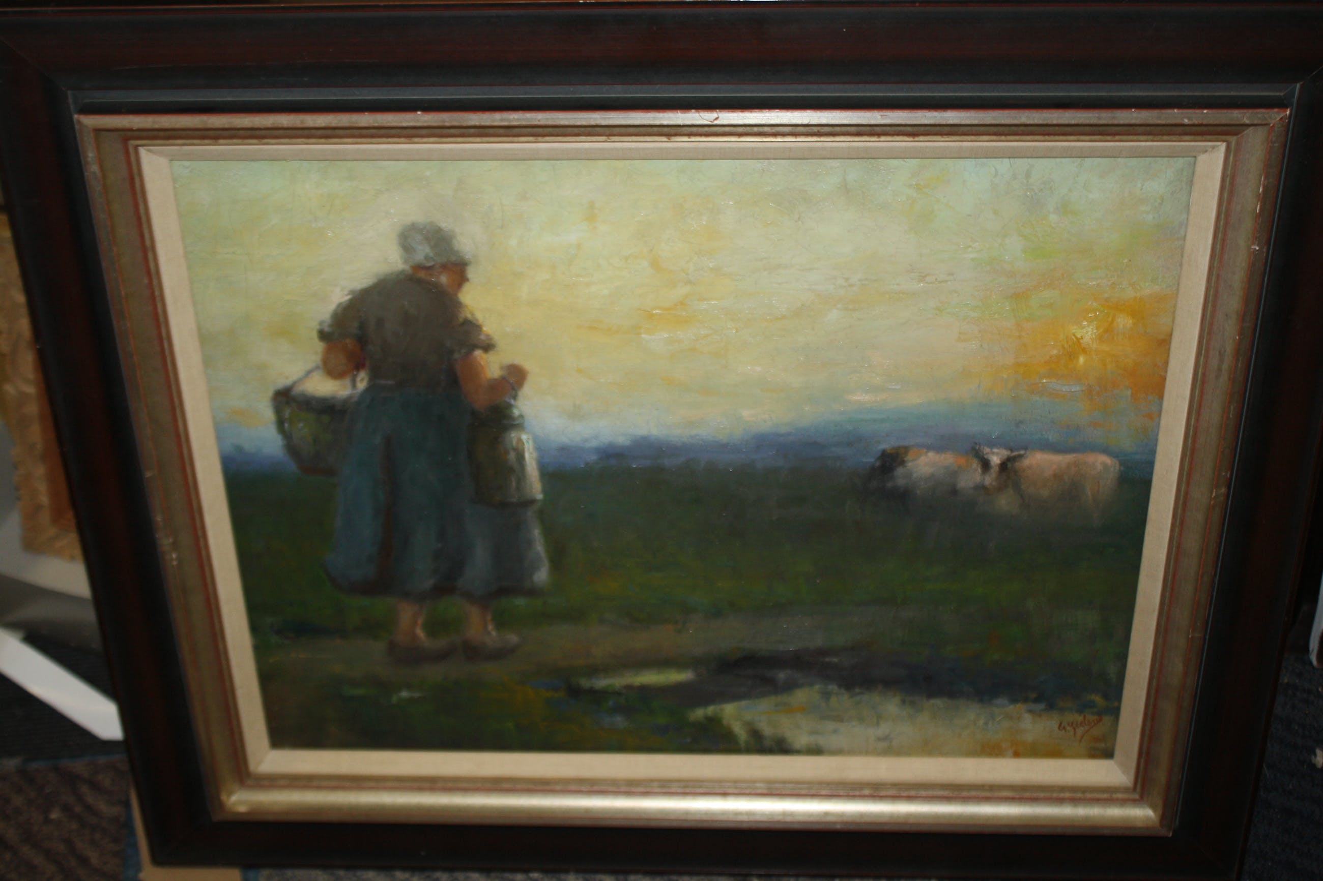 BOERIN AAN HET WERK BIJ DE KOEIEN