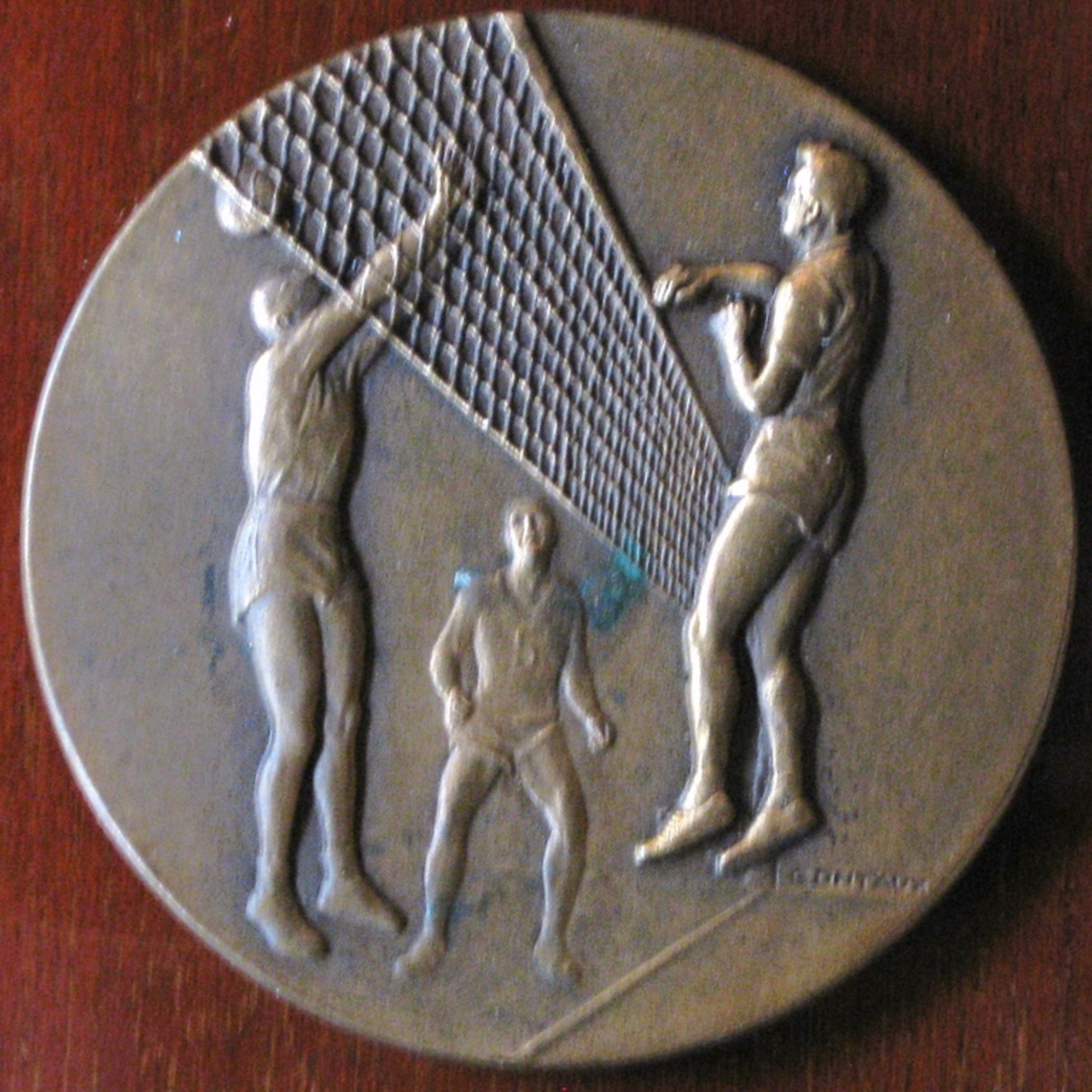 Mooe bronzen munt, naar ontwerp van de Franse ontwerper Georges Contaux.