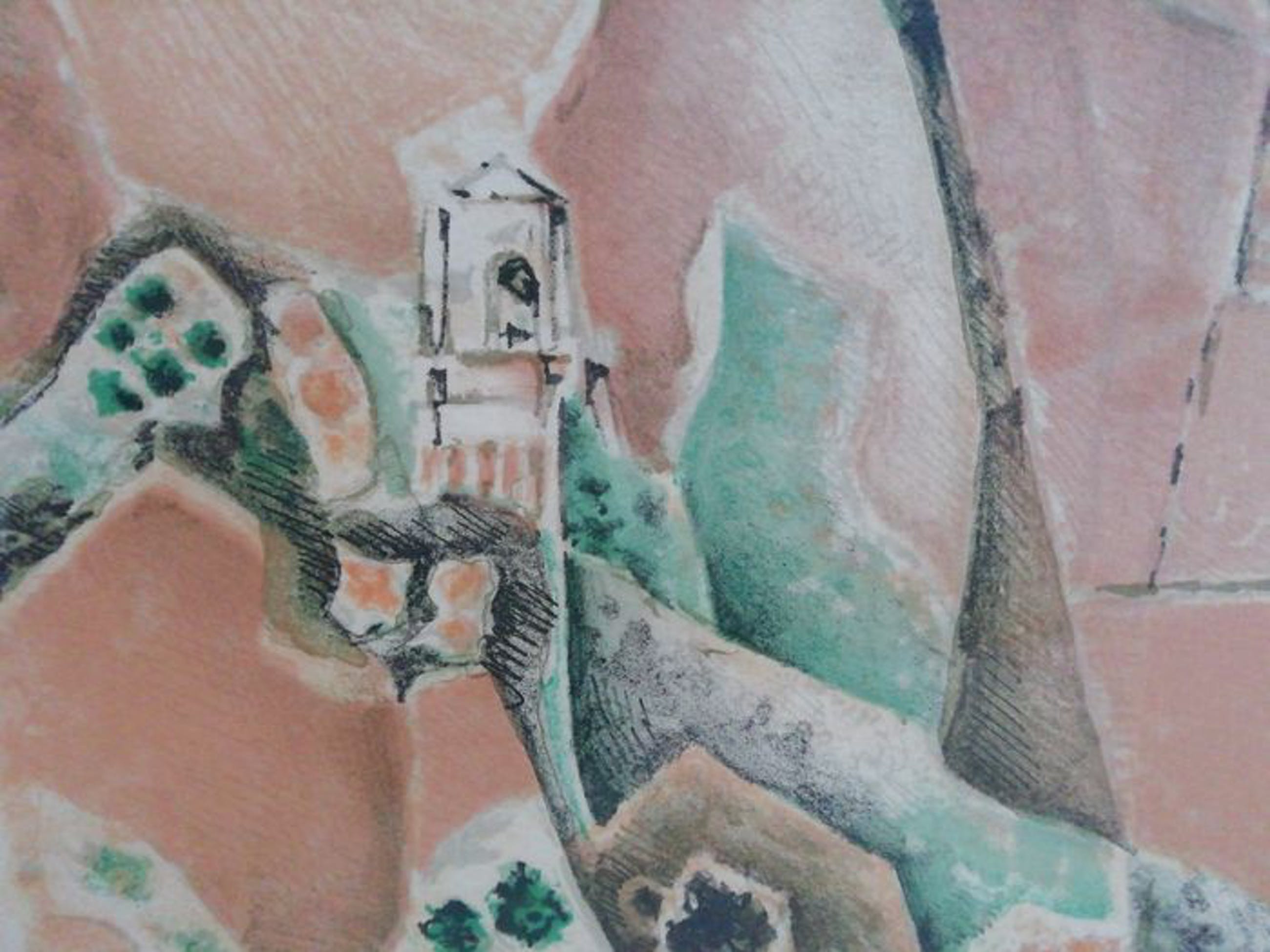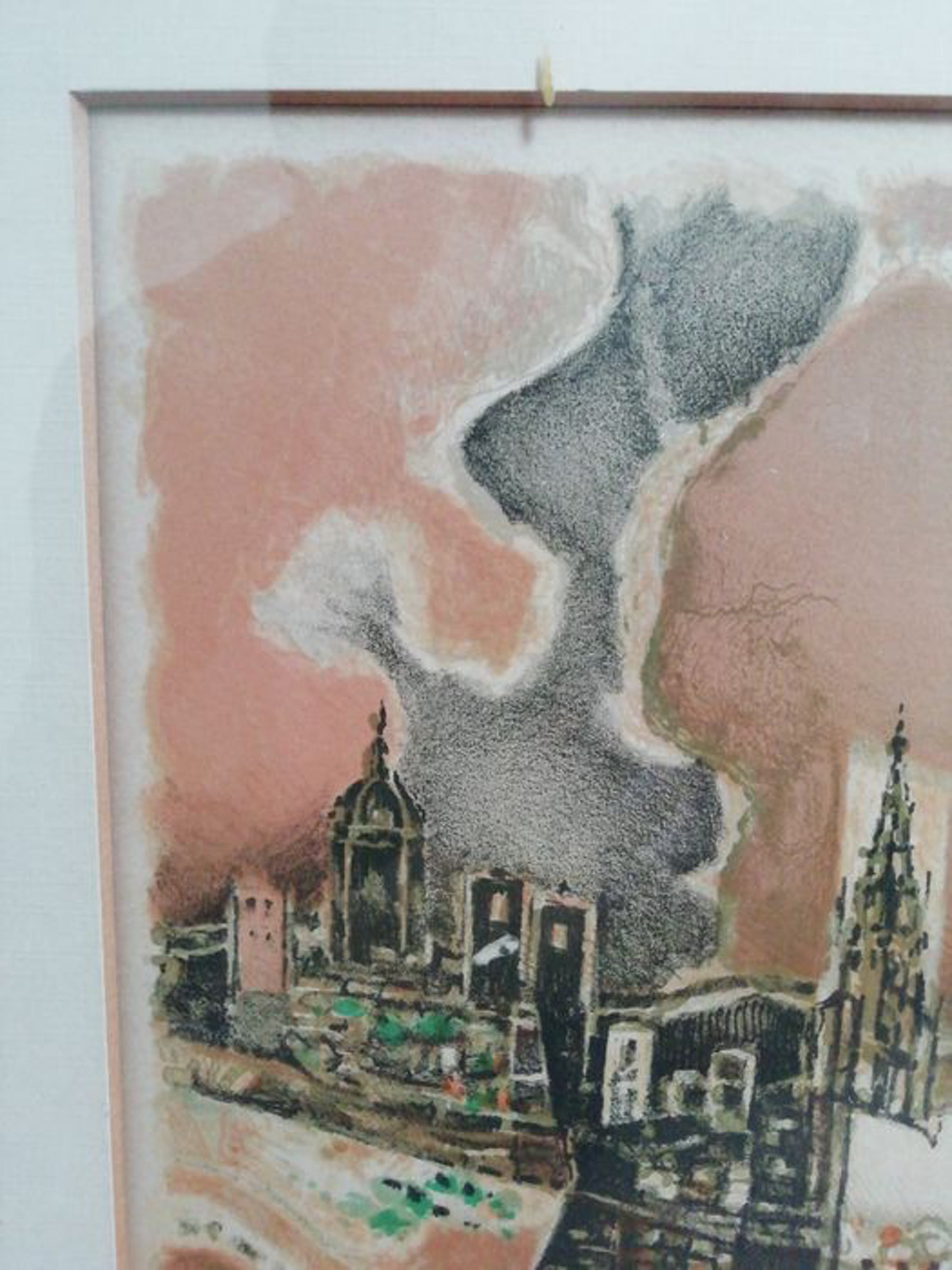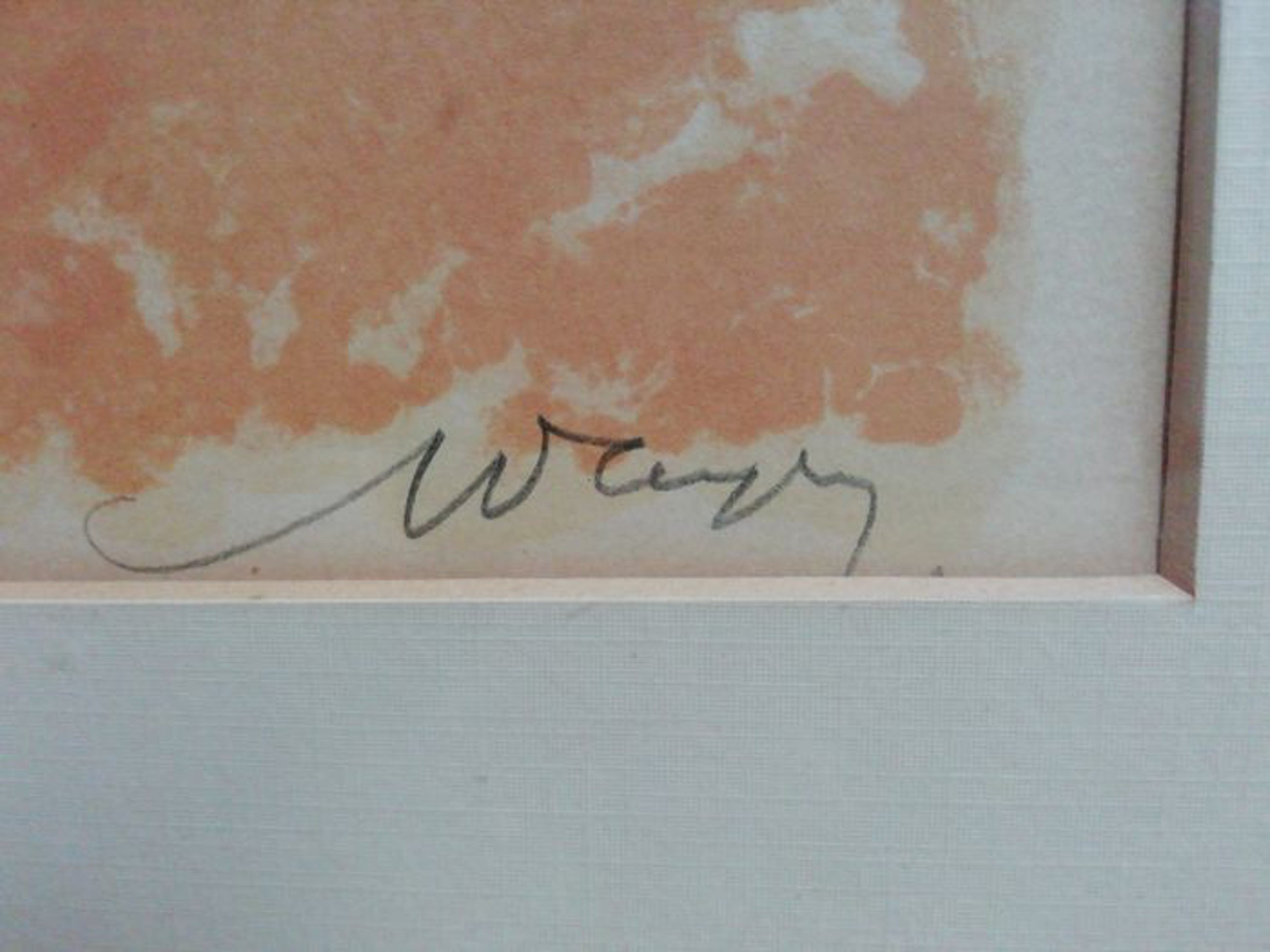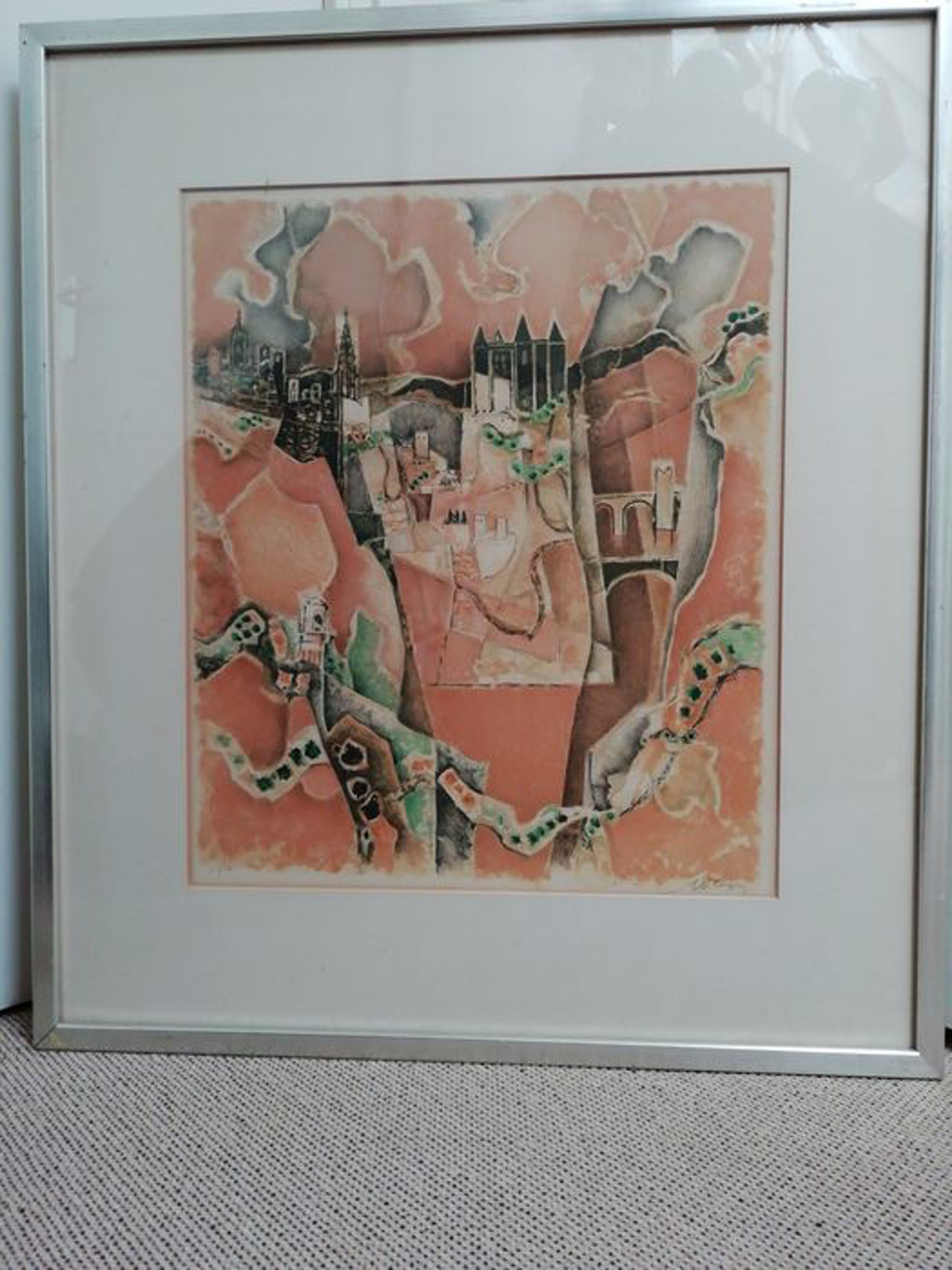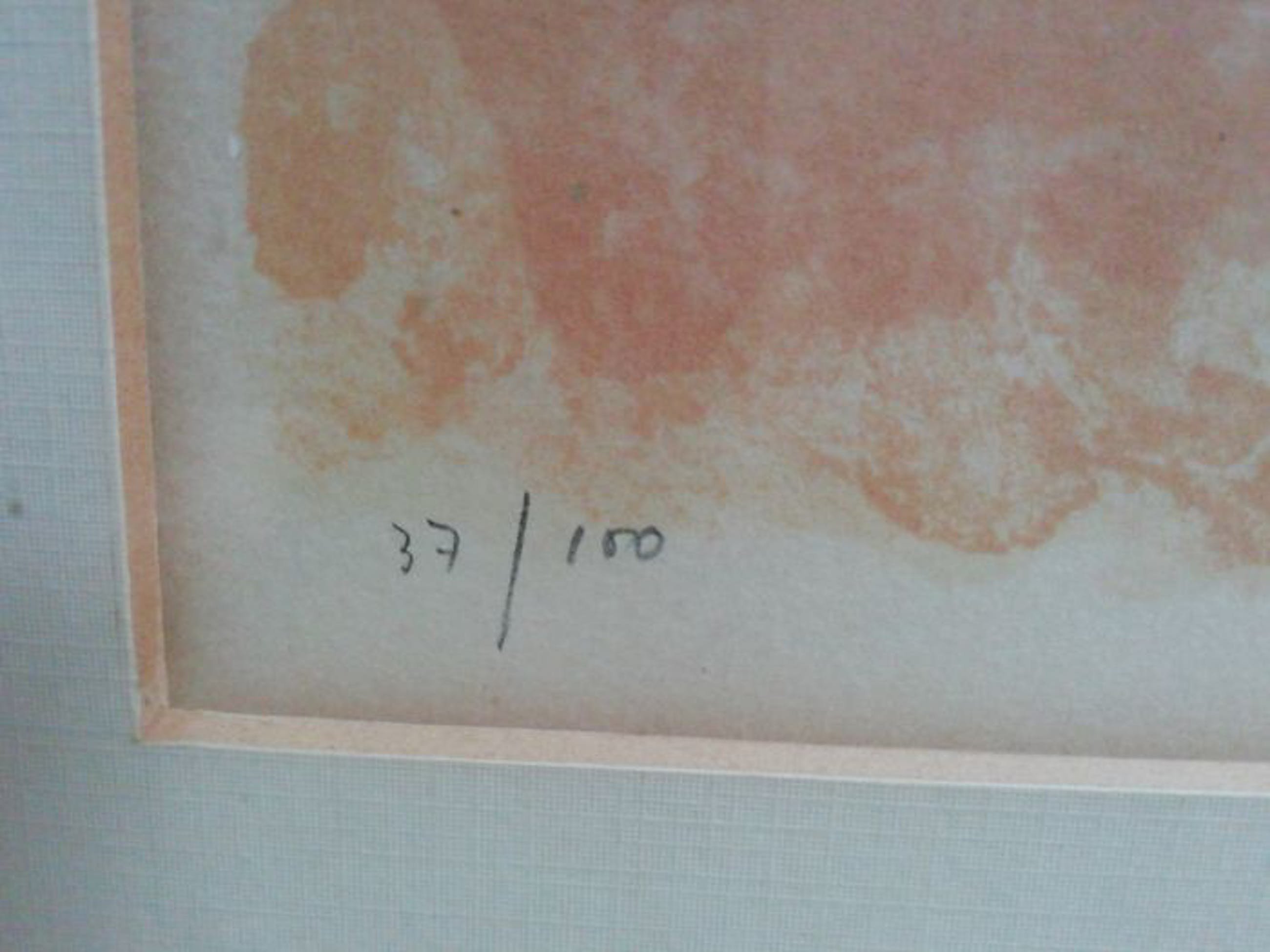 Periode 1960-65. Deze fraaie kleurenlitho is gesigneerd rechtsonder en is Kopie 37 van 100 exemplaren. Afmeting Litho: 41 x 50 cm. Afmeting Lijst: 66 x 75 cm. Deze kleurenlitho verkeert in excellente conditie.