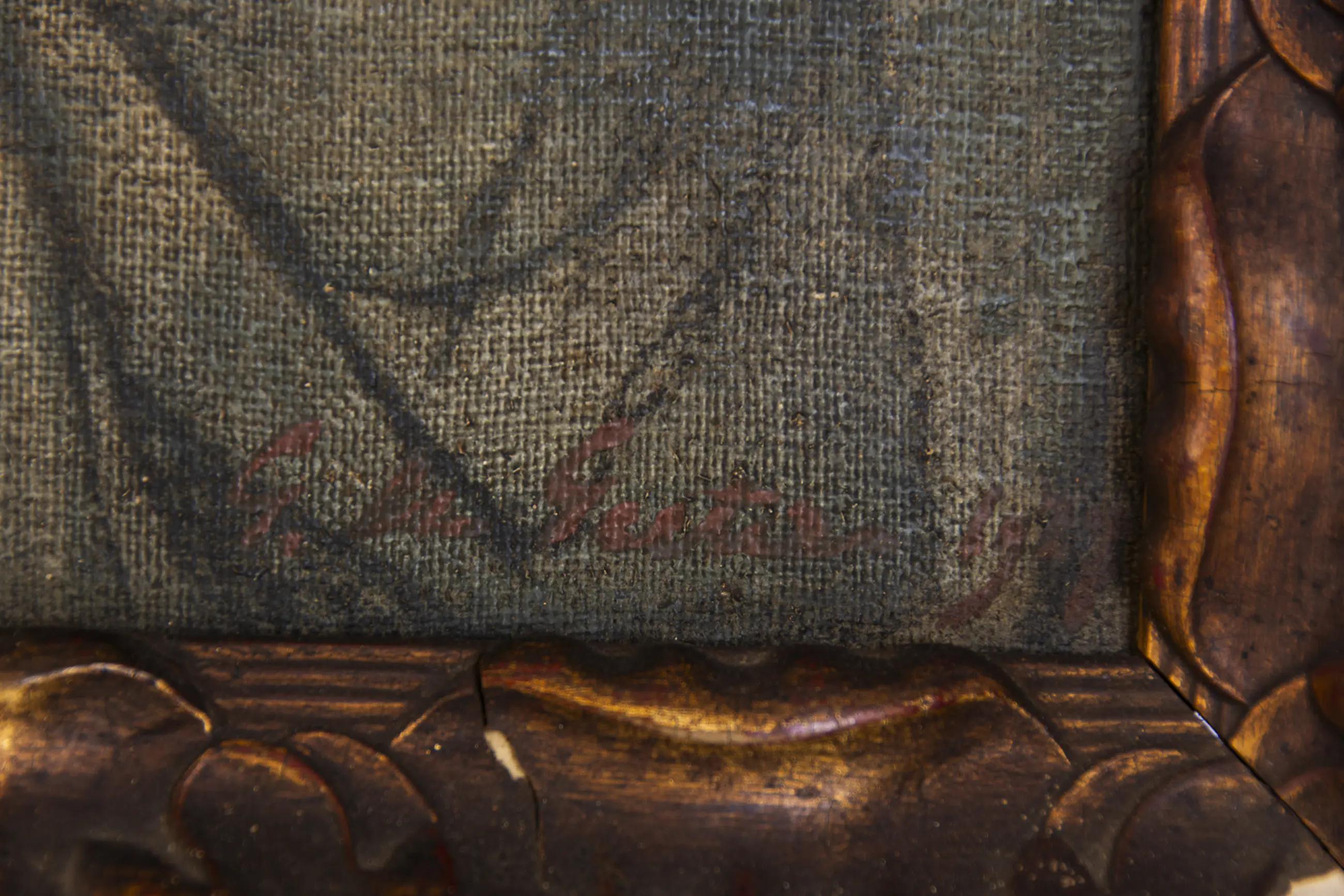 Het werk heeft jarenlang in huiskamers gehangen en was aldus onderhevig aan rook en dergelijke. Ook het kader is beschadigd.