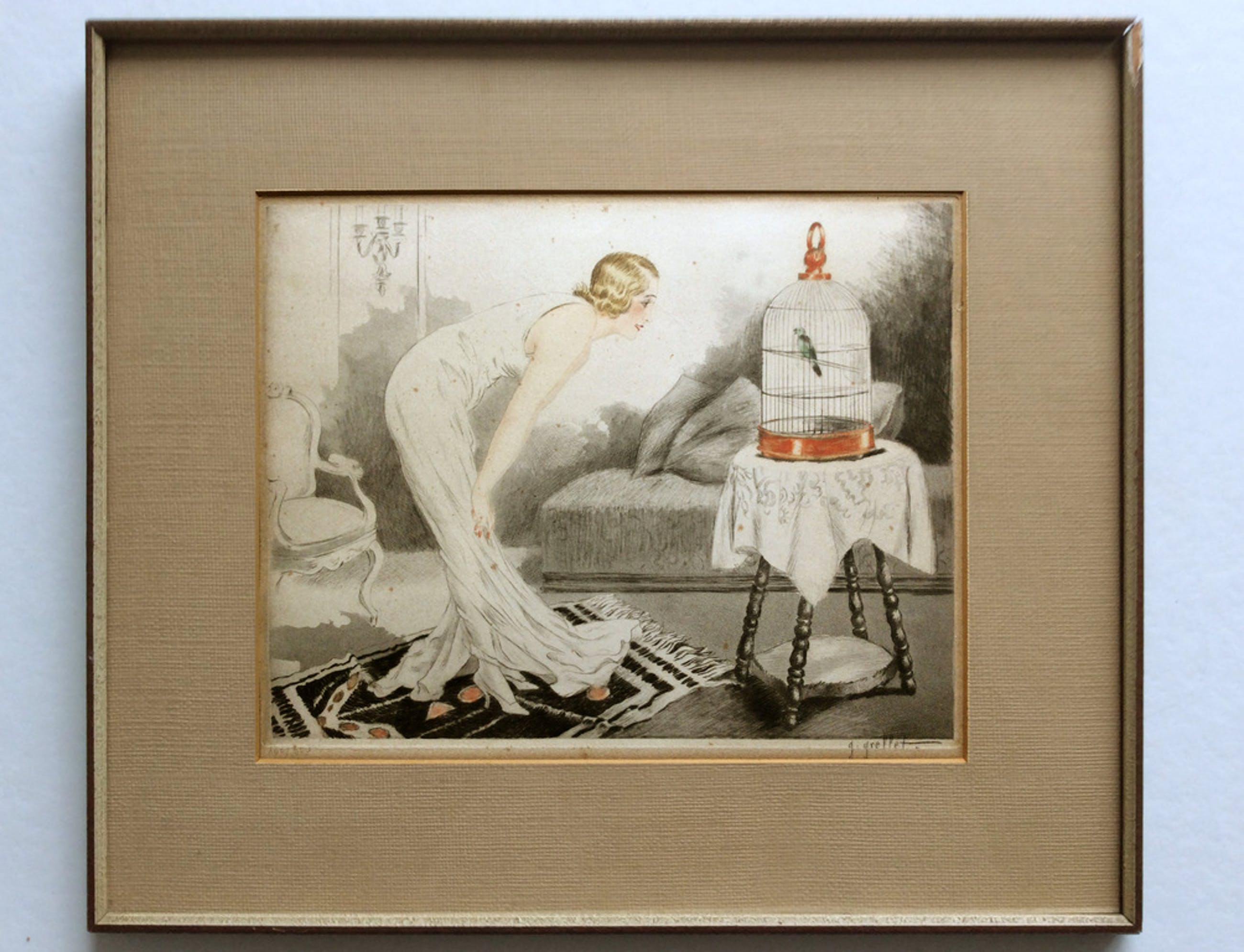 Grellet - bij het grote publiek minder bekend dan die andere exponent in het zogenaamde 'Boudoir Art' genre, Louis Icart - heeft een aantal fraaie litho's en etsen vervaardigd.