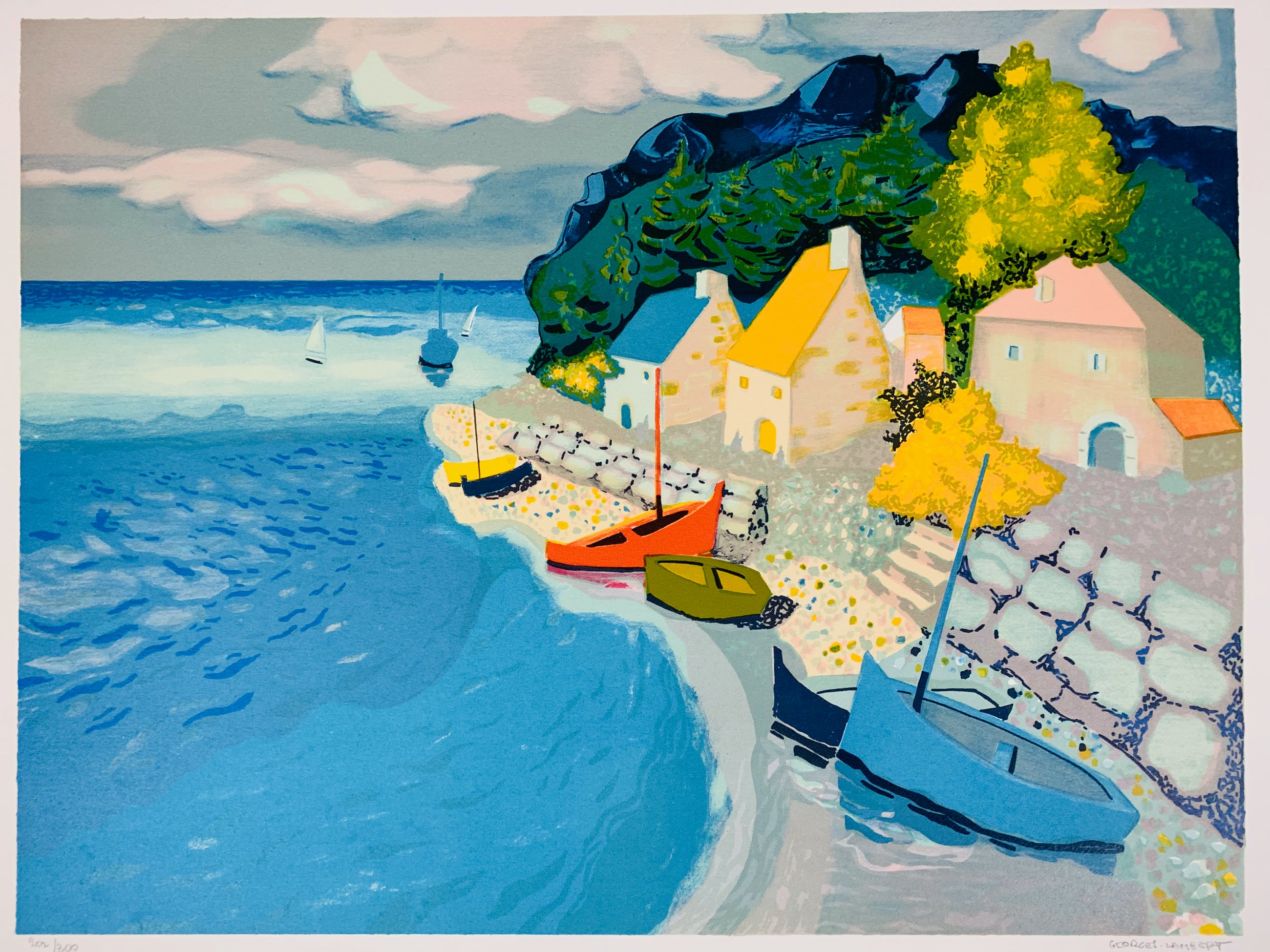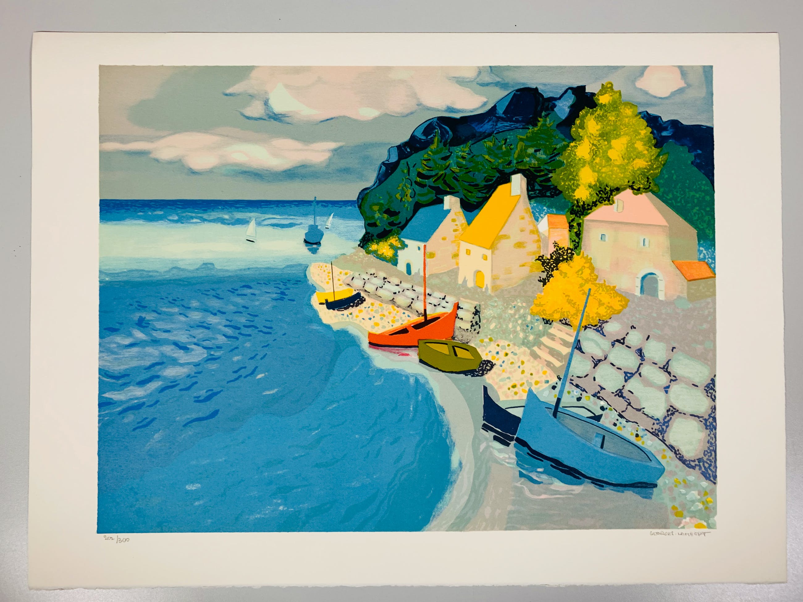 Conditie: uitstekend. Vel heeft 2 lichte deukjes, zie foto's. Oplage: 200/300. Nummers op de foto kunnen afwijken. Papiersoort: Arches. Afmeting afbeelding: 47 x 62 cm. Wordt verzekerd verzonden in een stevige kartonnen koker. Gecombineerde verzending mogelijk t/m 4 lithografieën.