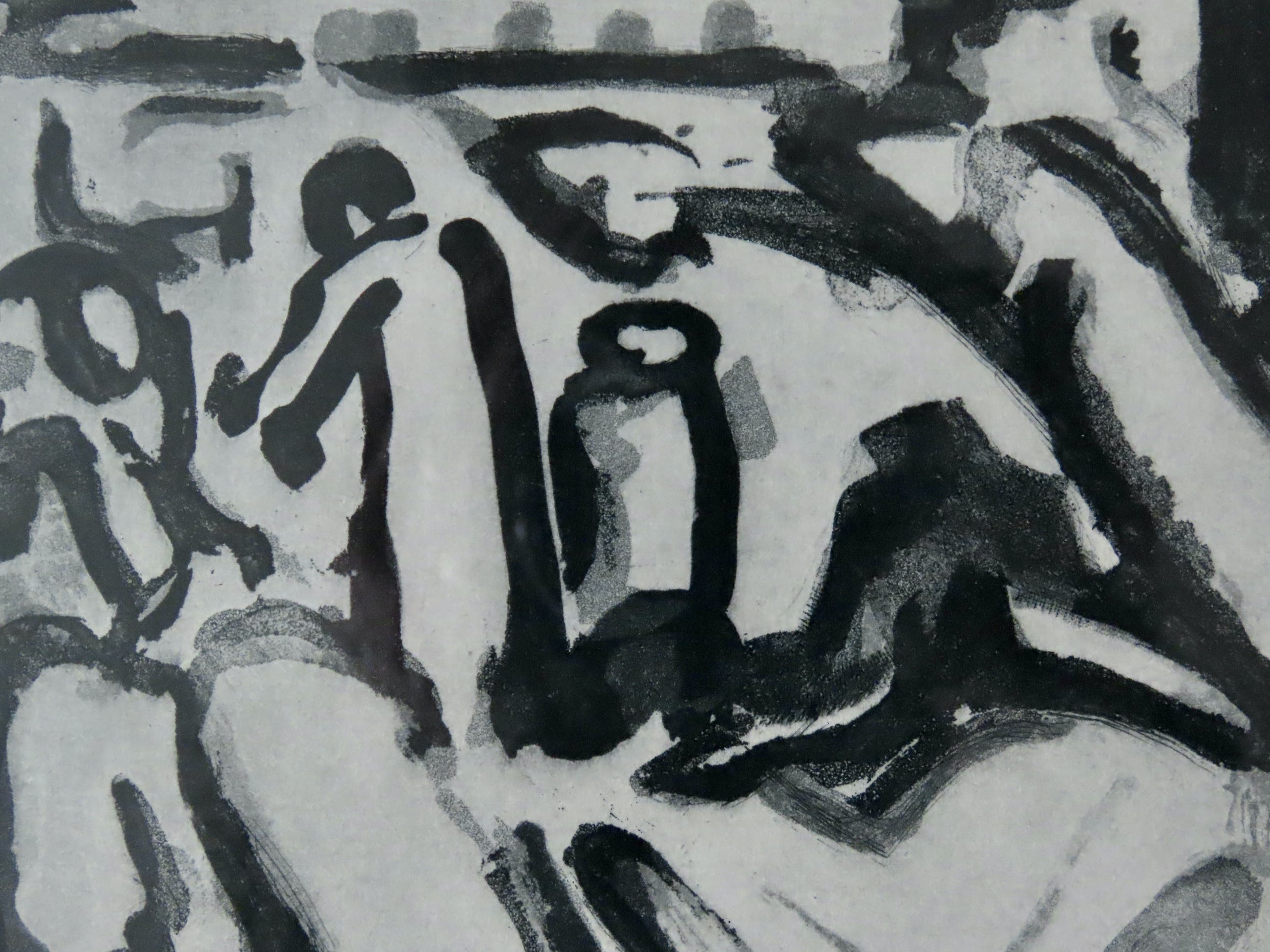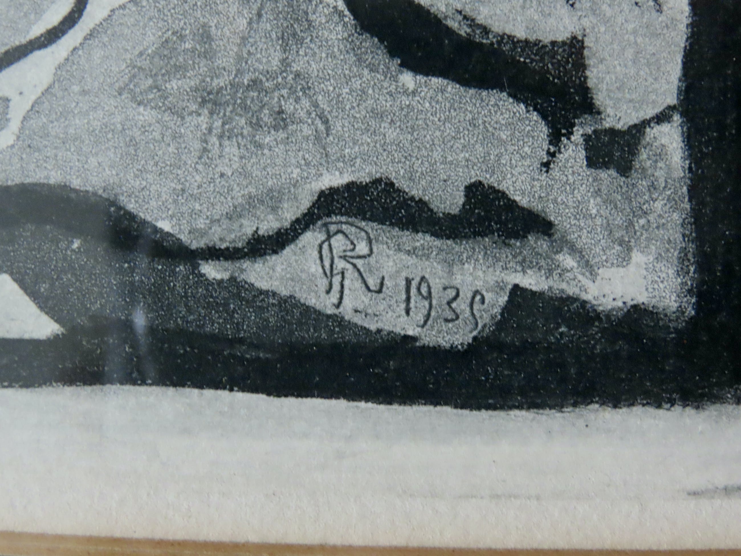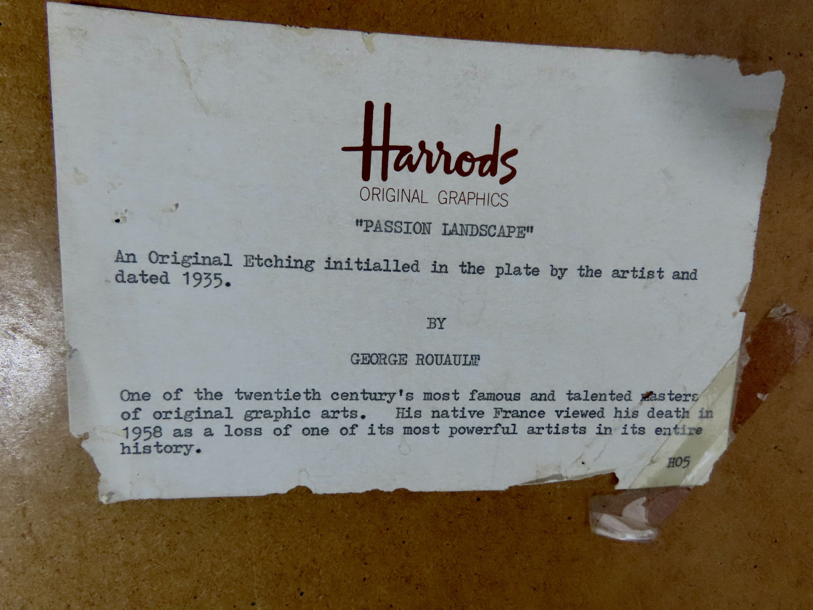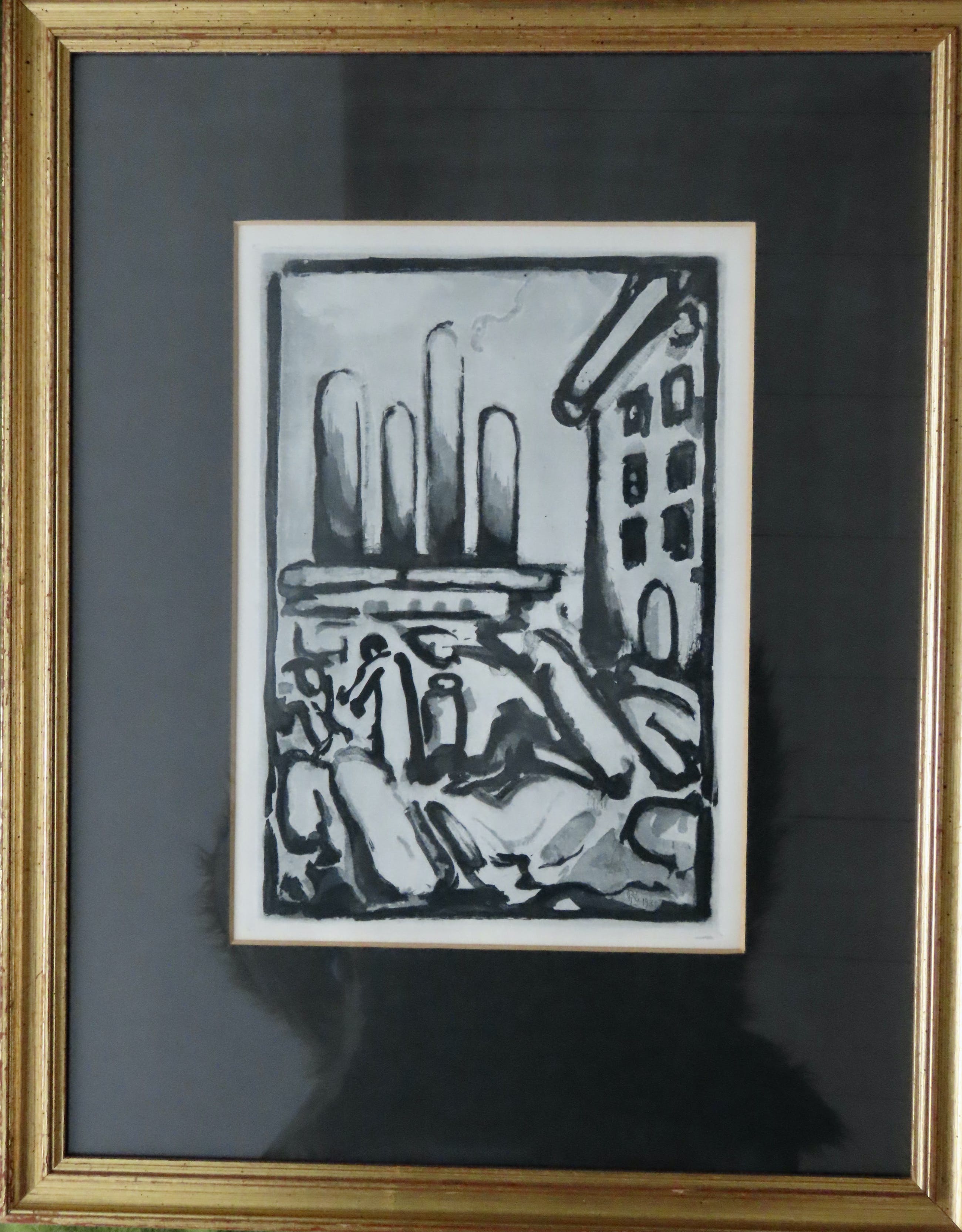 Rauw en indrukwekkend werk van de bekende kunstenaar Georges Rouault (1871-1958) Hij was een Franse expressionistische en fauvistische schilder die studeerde aan de École des Beaux-Arts in Parijs. Zijn werk kent verschillende invloeden o.a. Goya maar zijn typerende gebruik van zwarte lijnen sloten ook aan bij de invloeden van het expressionisten. Het was een veelzijdig en geliefd kunstenaar die ook prenten, gravures en boekillustraties op zijn naam heeft staan.