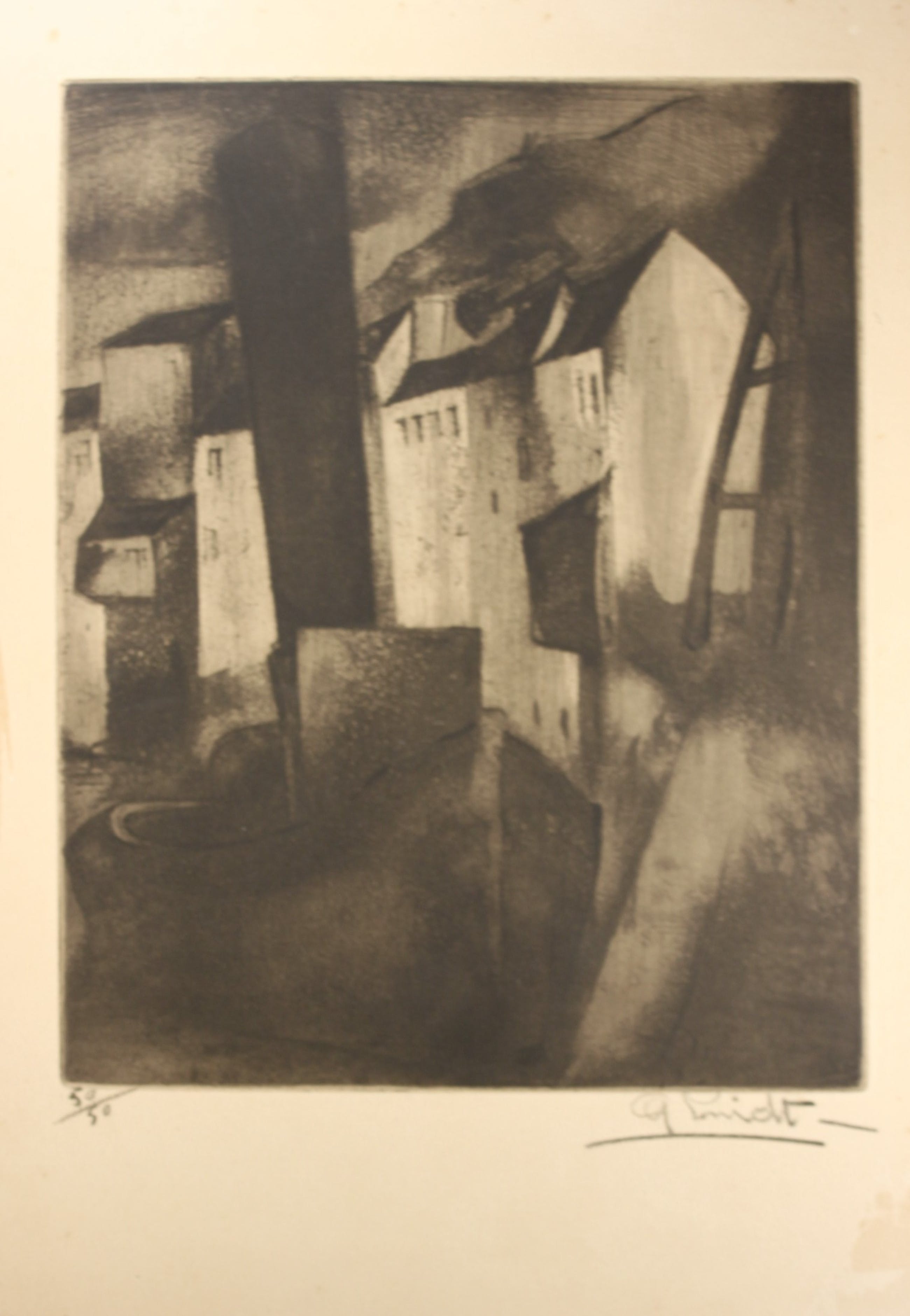 Expressionistisch stadslandschap uit de jaren 30. Art-Deco in de stijl van Tamara de Lempicka.