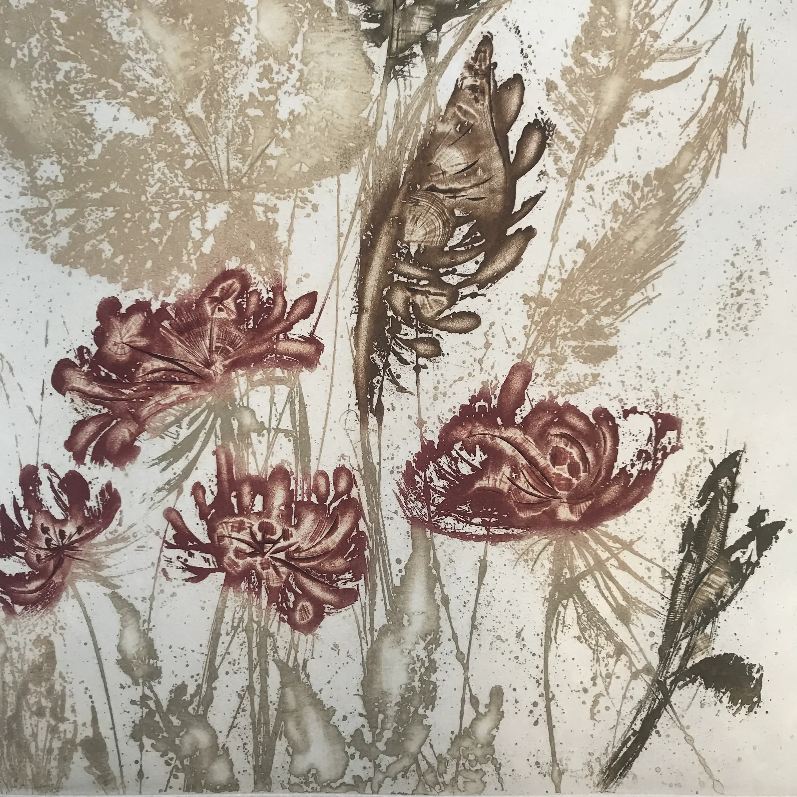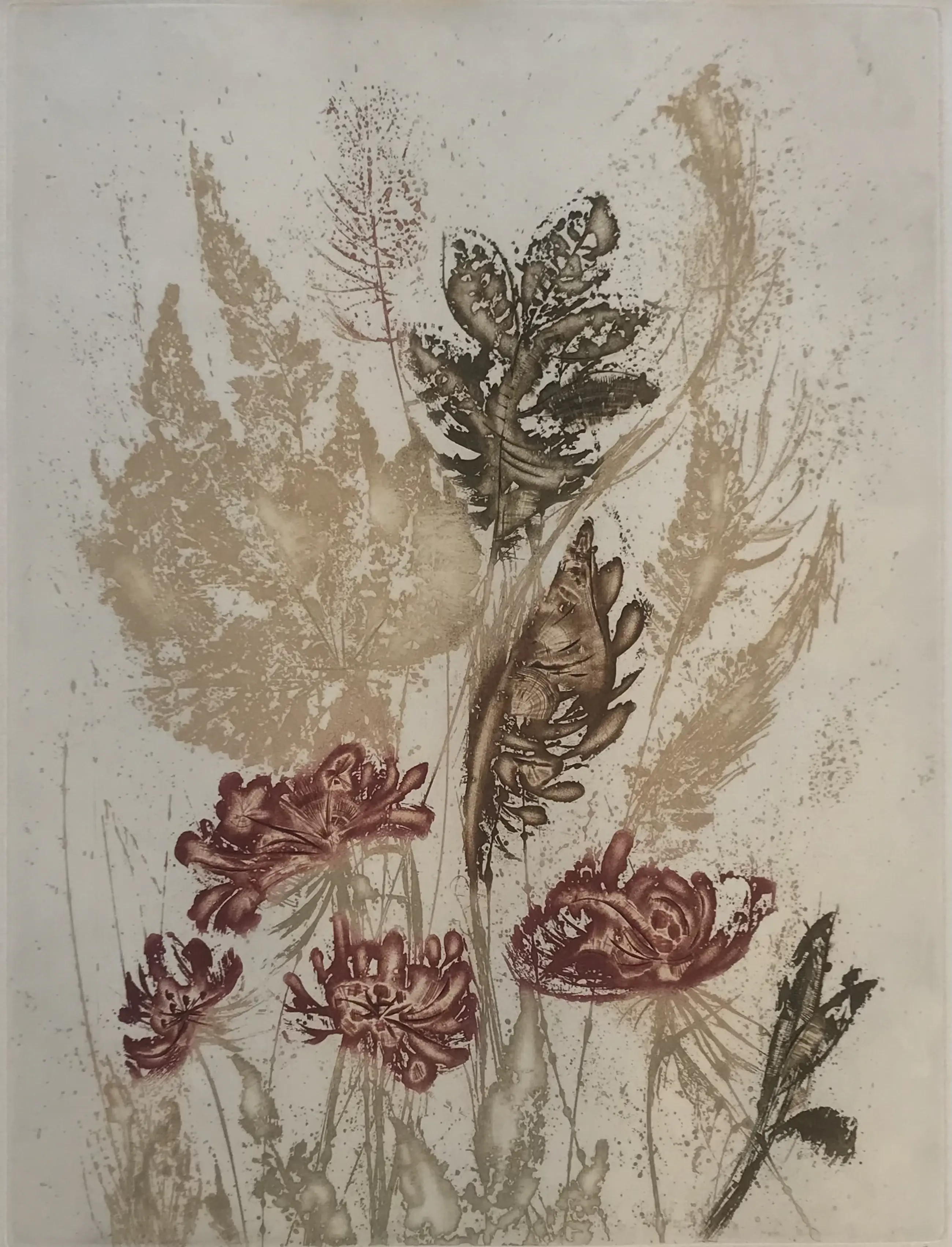 Origineel gekleurde ets op papier. Passepartout inbegrepen.