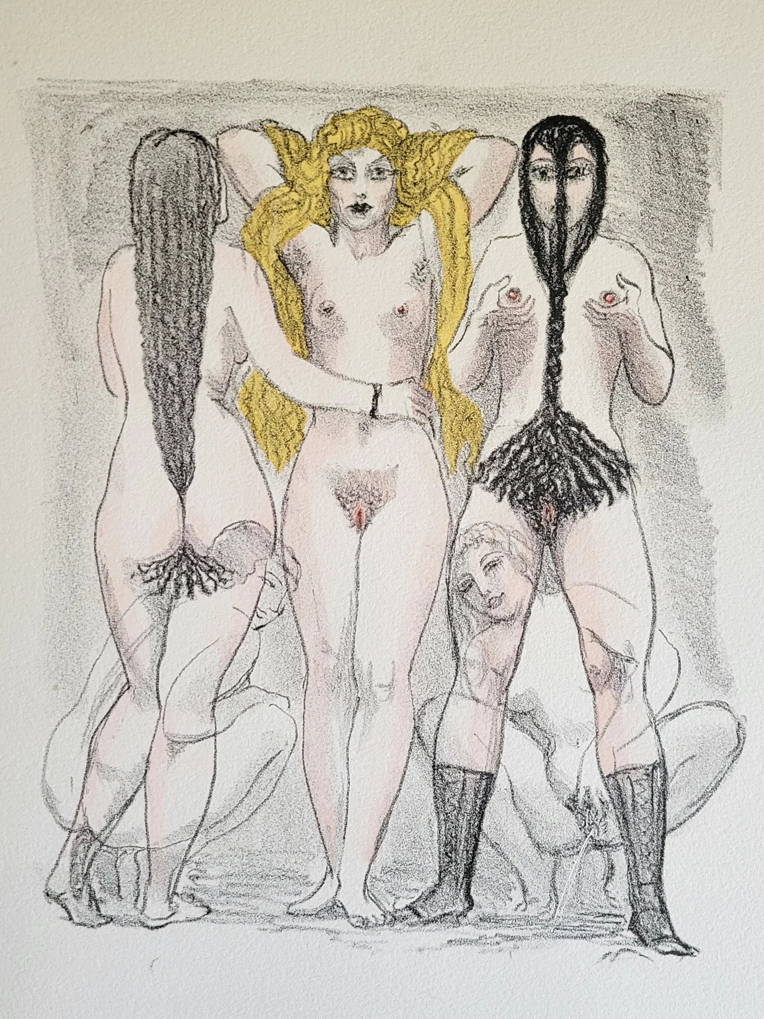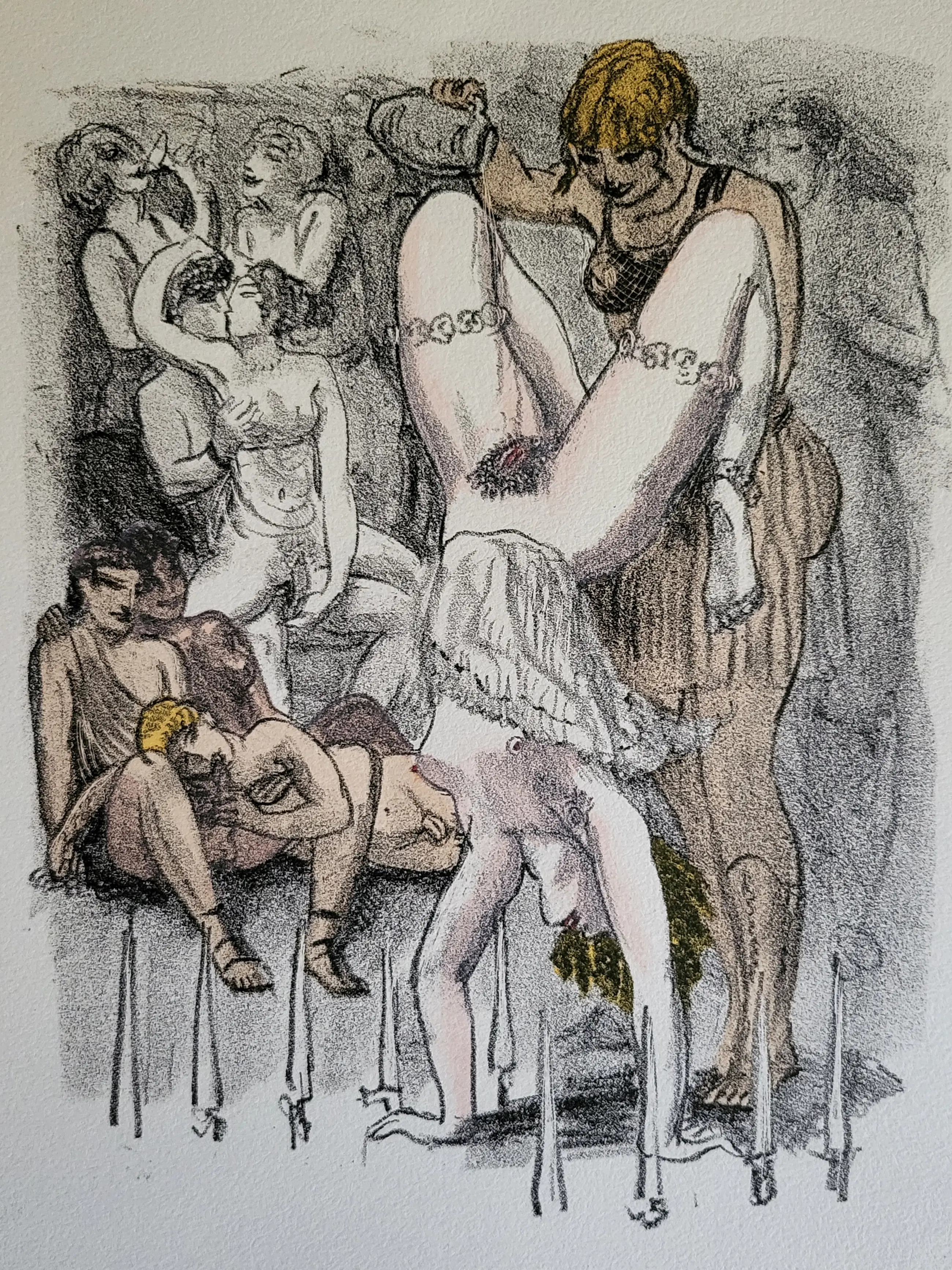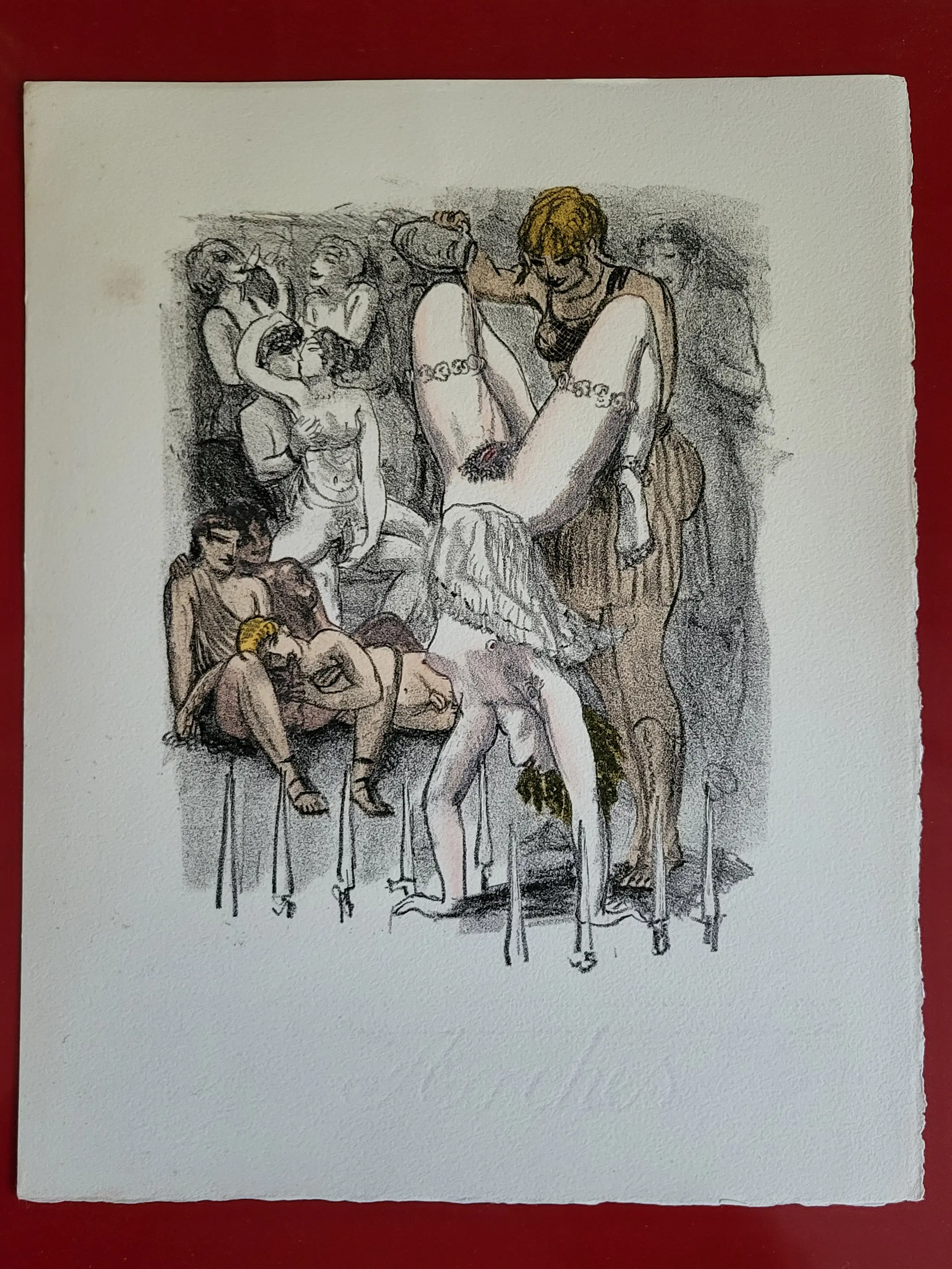 In the 1920’s Villa was part of the Parisian Année Folles (Crazy Years) and became known for his caricatures and portraits as well as his erotic drawings using charcoal and pastel. Many of Villa’s outstanding illustrations can be found in limited edition collectors’ books, including 12 erotic lithographs to accompany the poetry of Edmond Haraucourt, Poemes hysteriques, an eroticized parody of the poems of Victor Hugo.