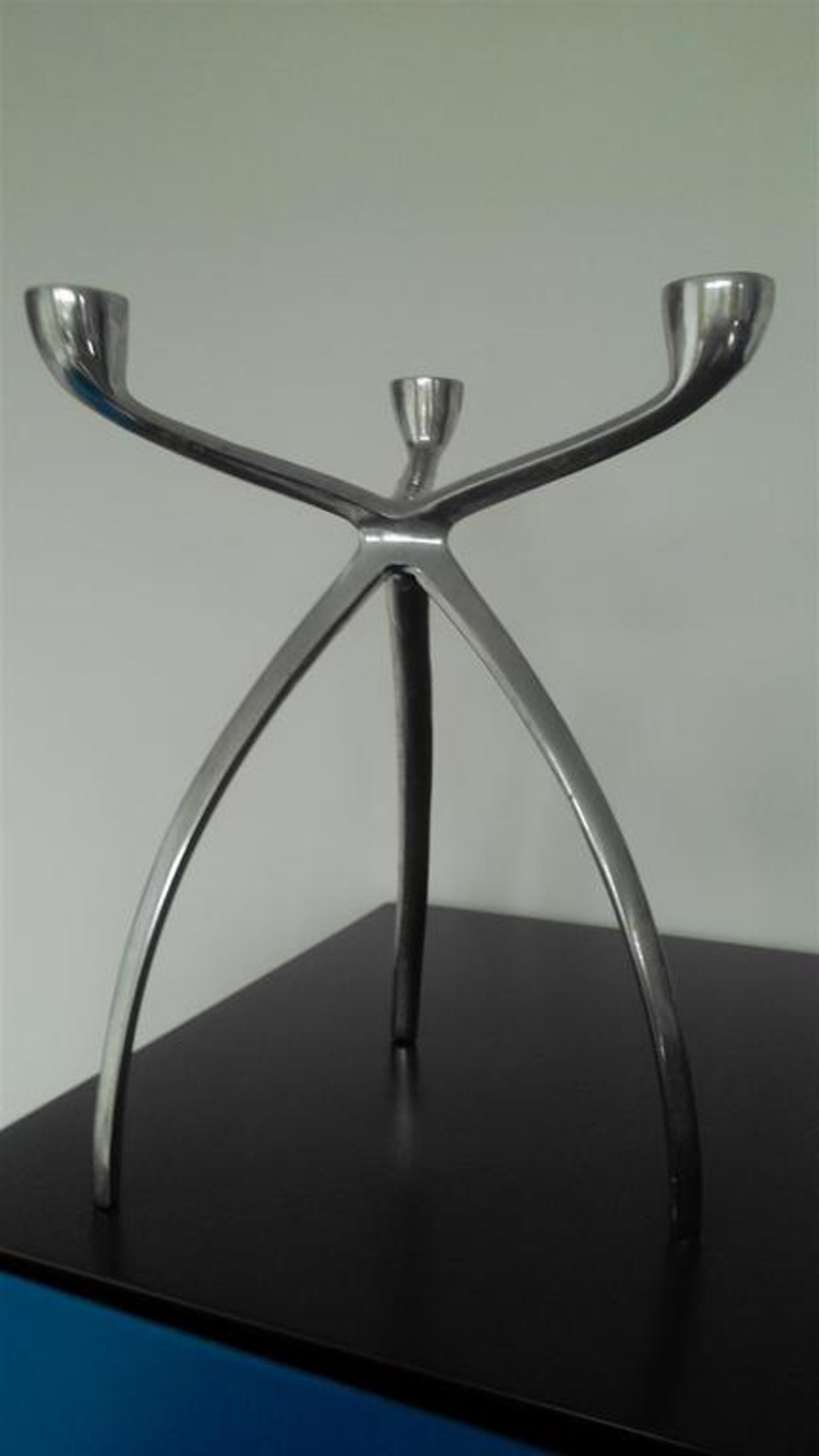 Een waar sierobject (helaas wel met wat vlekjes) voor op tafel deze driearmige kandelaar.