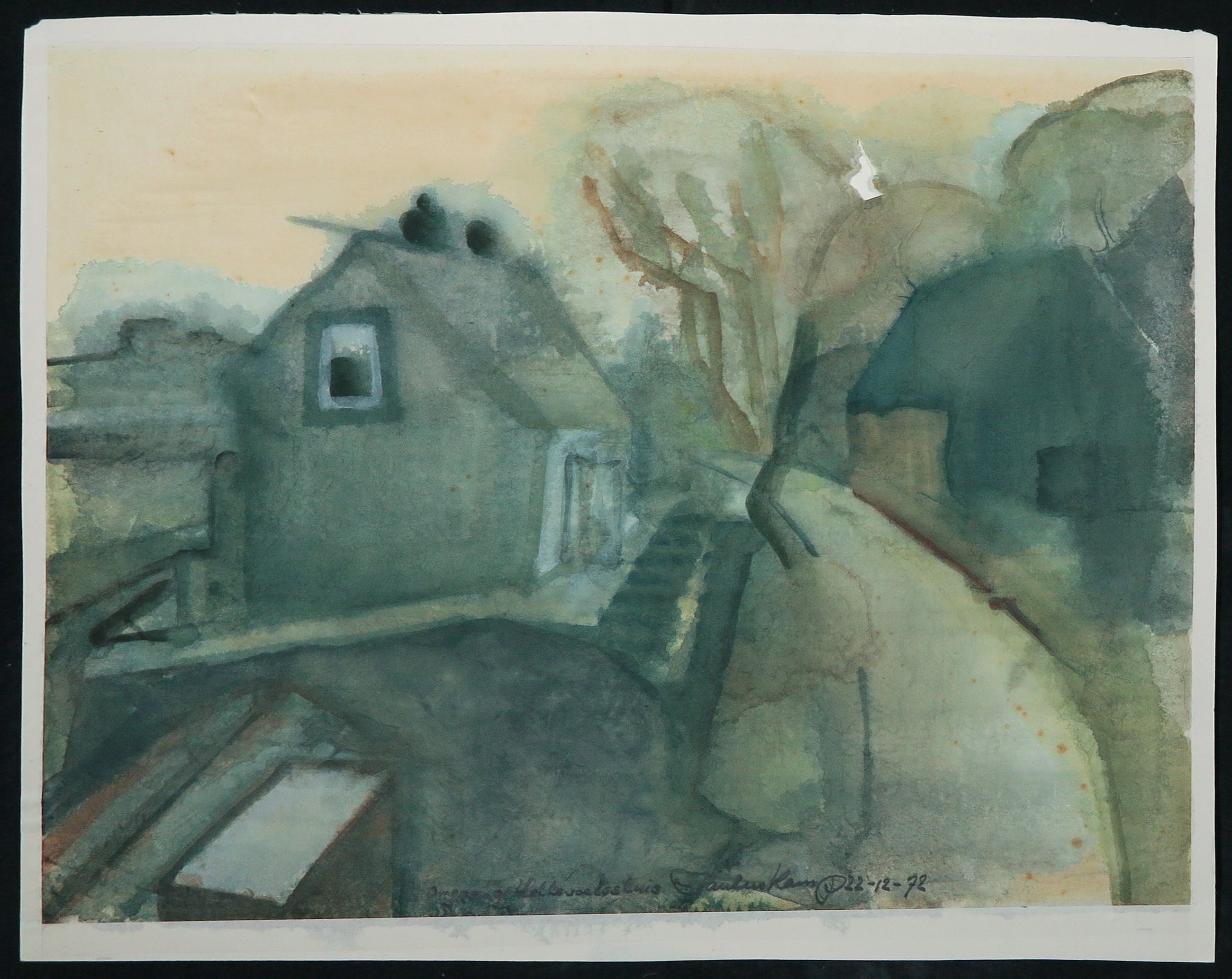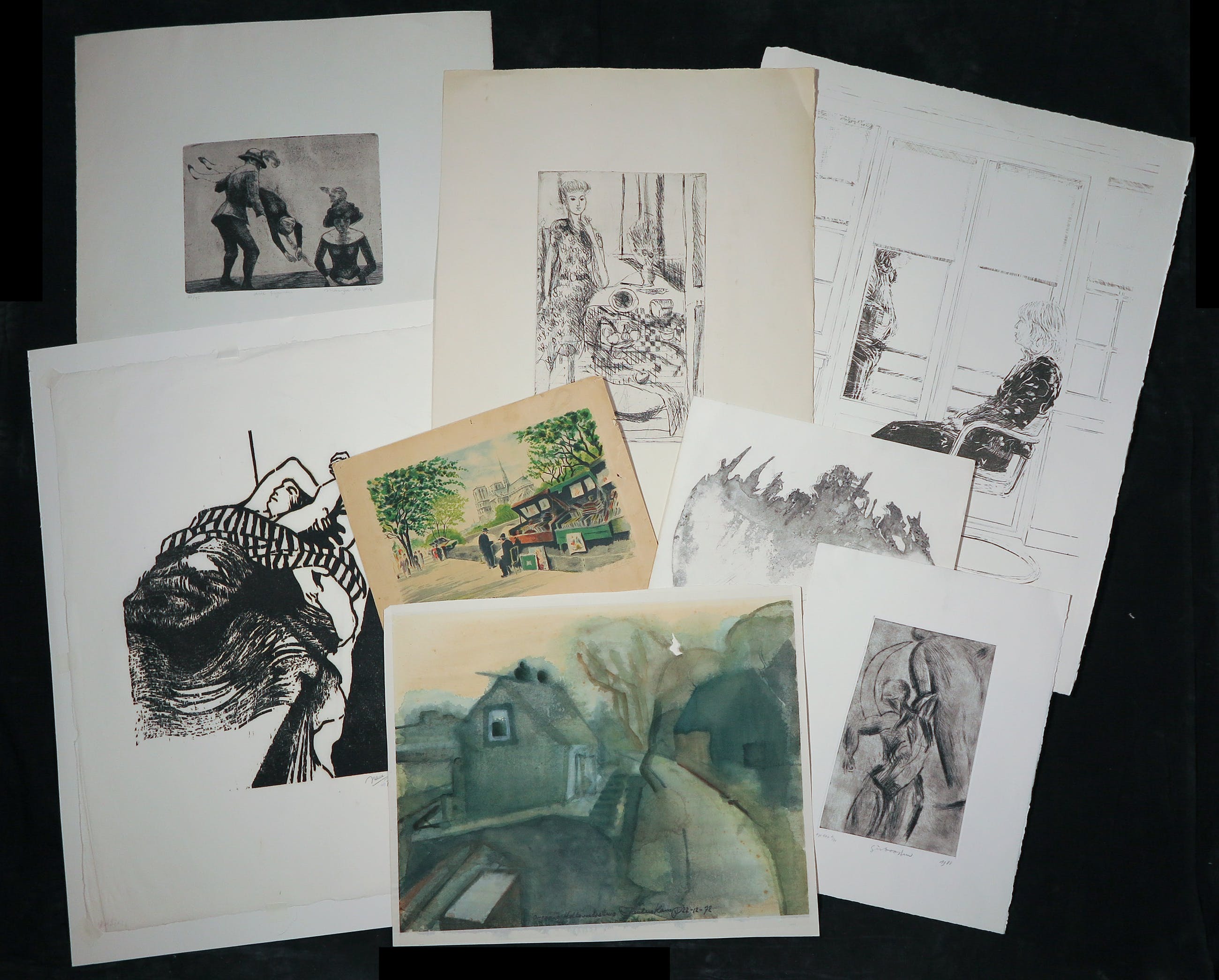 | Conditie redelijk tot goed: een werk kan een vouw of lichte vlekken vertonen. In het werk van Paulus Kamp zit een gaatje. Het laatste, onduidelijk gesigneerde werk heeft enkele beschadigingen aan de rand. Zie foto's. | |||