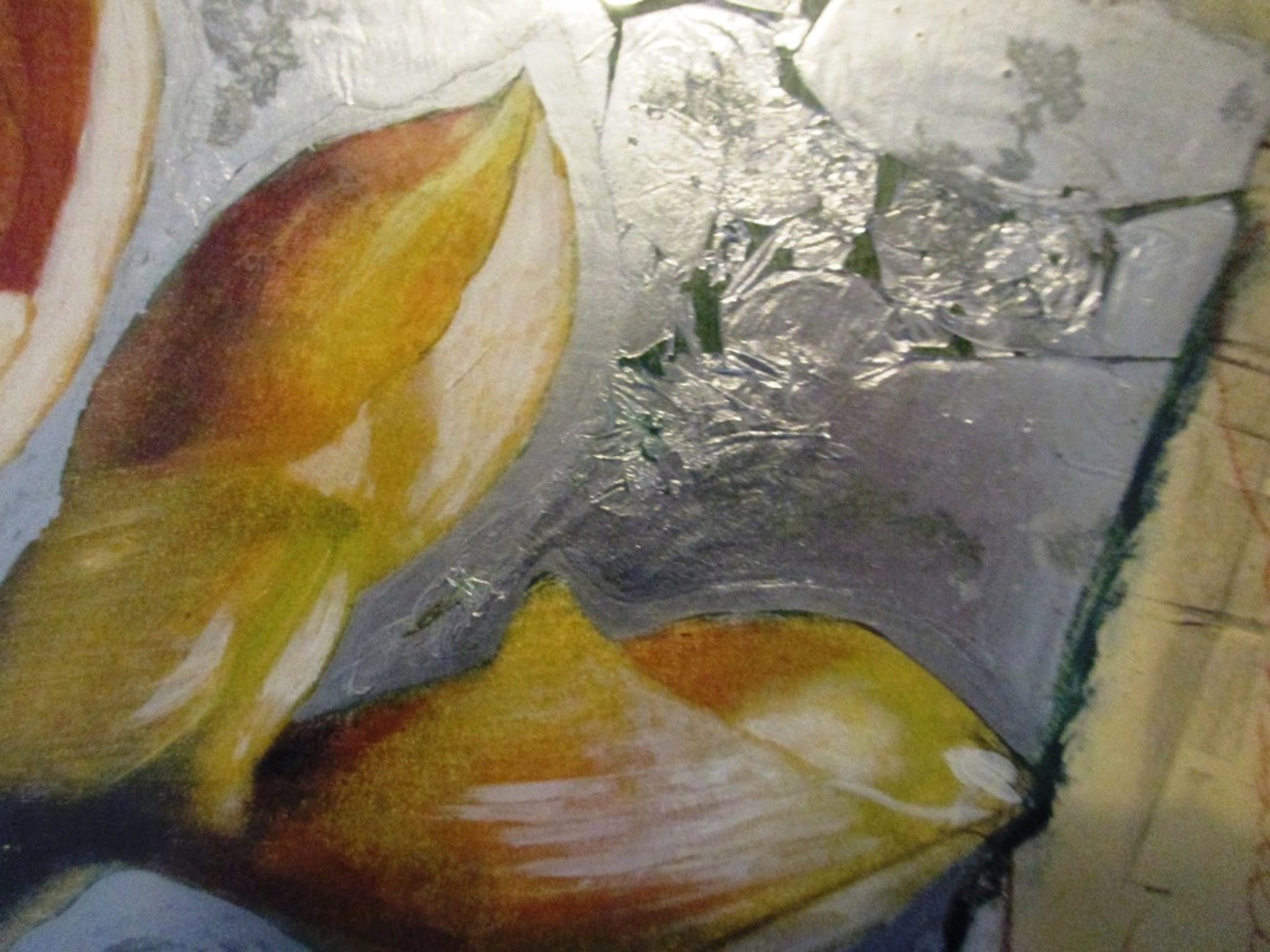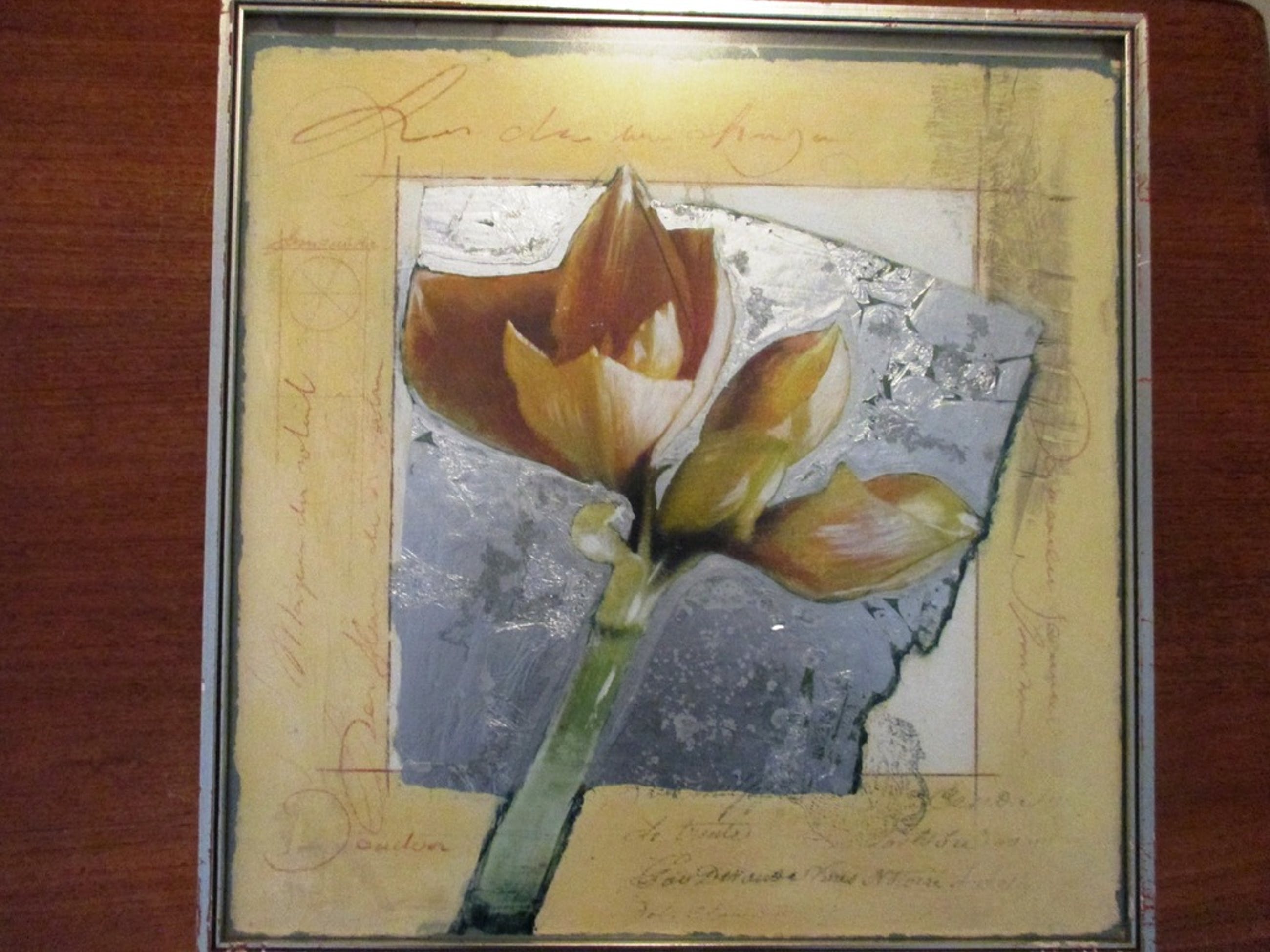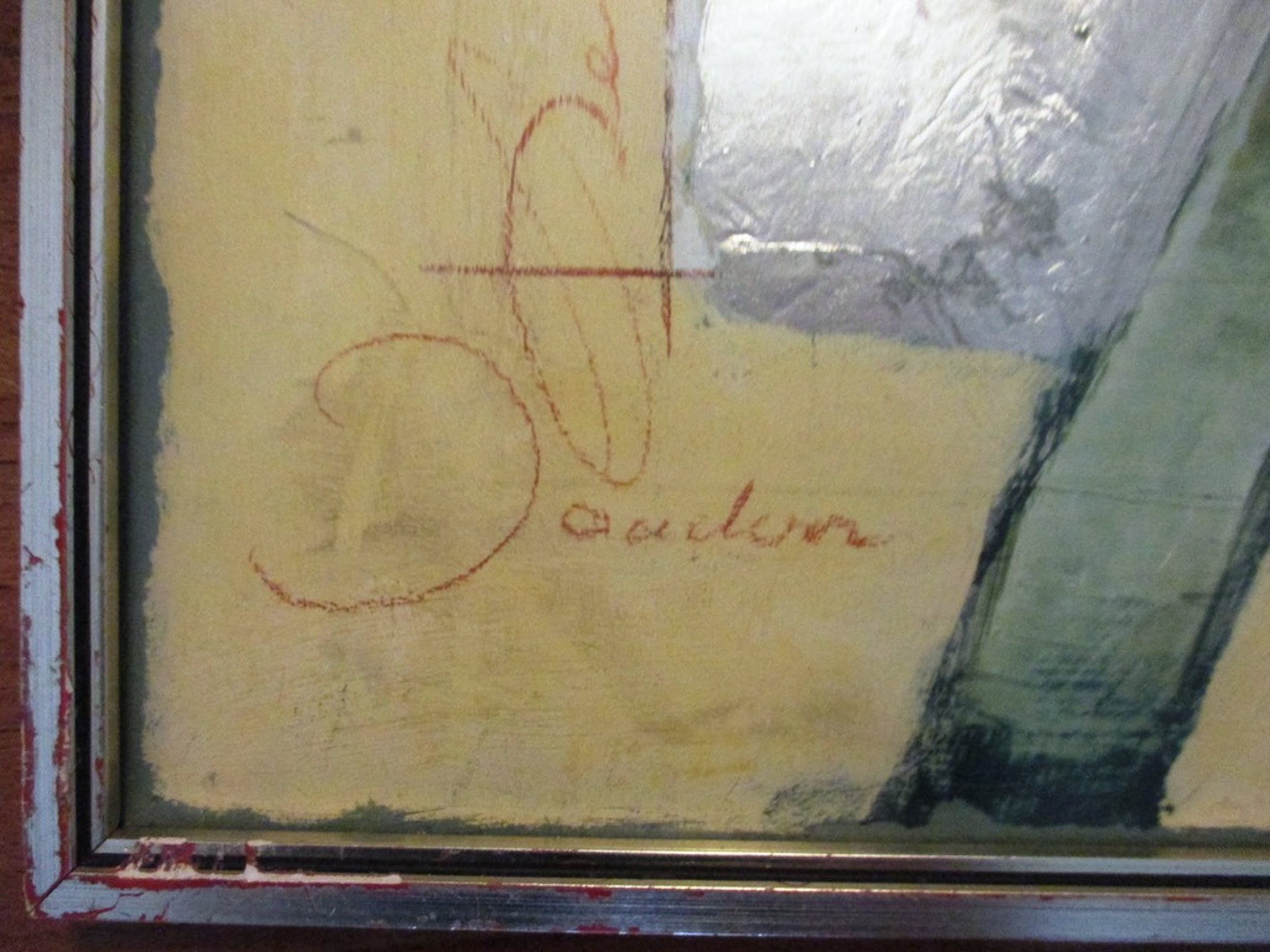 Schilderij van Joadoor, gemengde techniek. De afmetingen zijn, 40 x 40 cm. Het schilderij is in een lijst achter glas gevat.