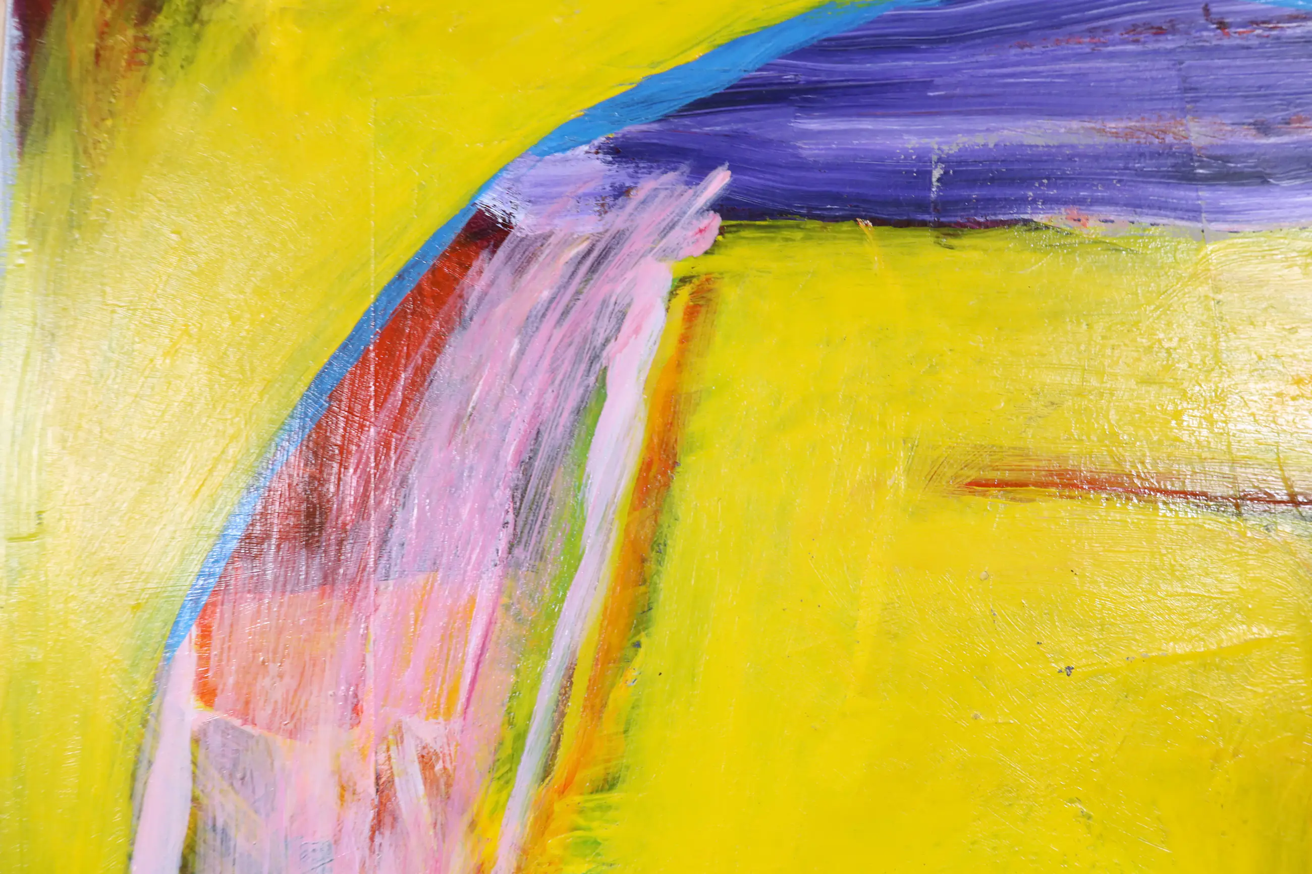 Er zijn een aantal plekjes verfschade aanwezig, en wat krasjes. In de linker bovenhoek komt het papier wat los van het paneel. | |