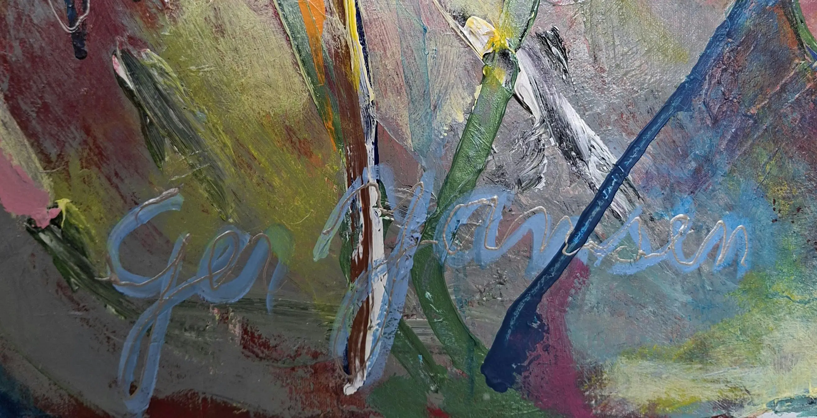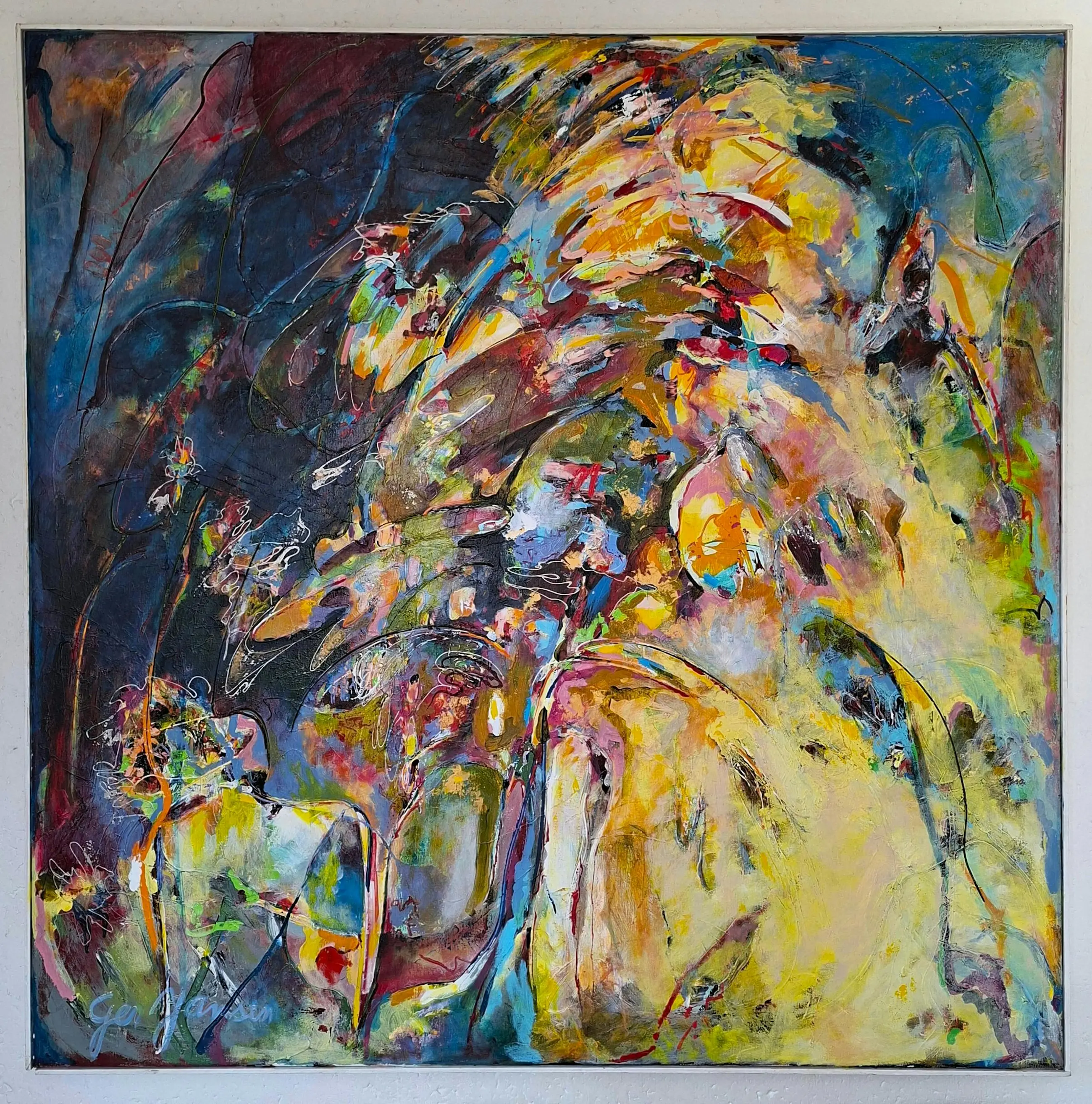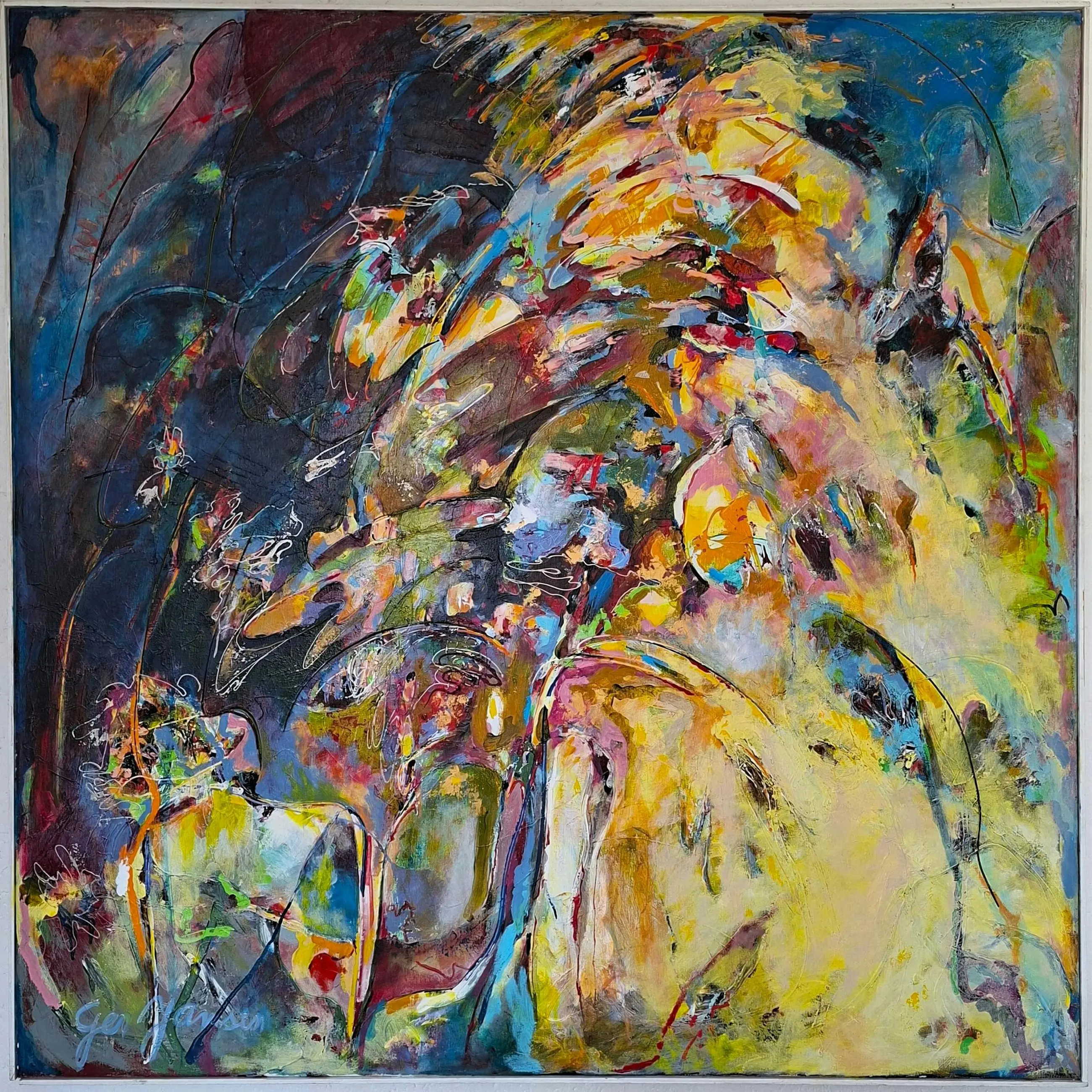 Werk uit de jaren '90. Er zit een eenvoudige houten atelierlijst omheen.