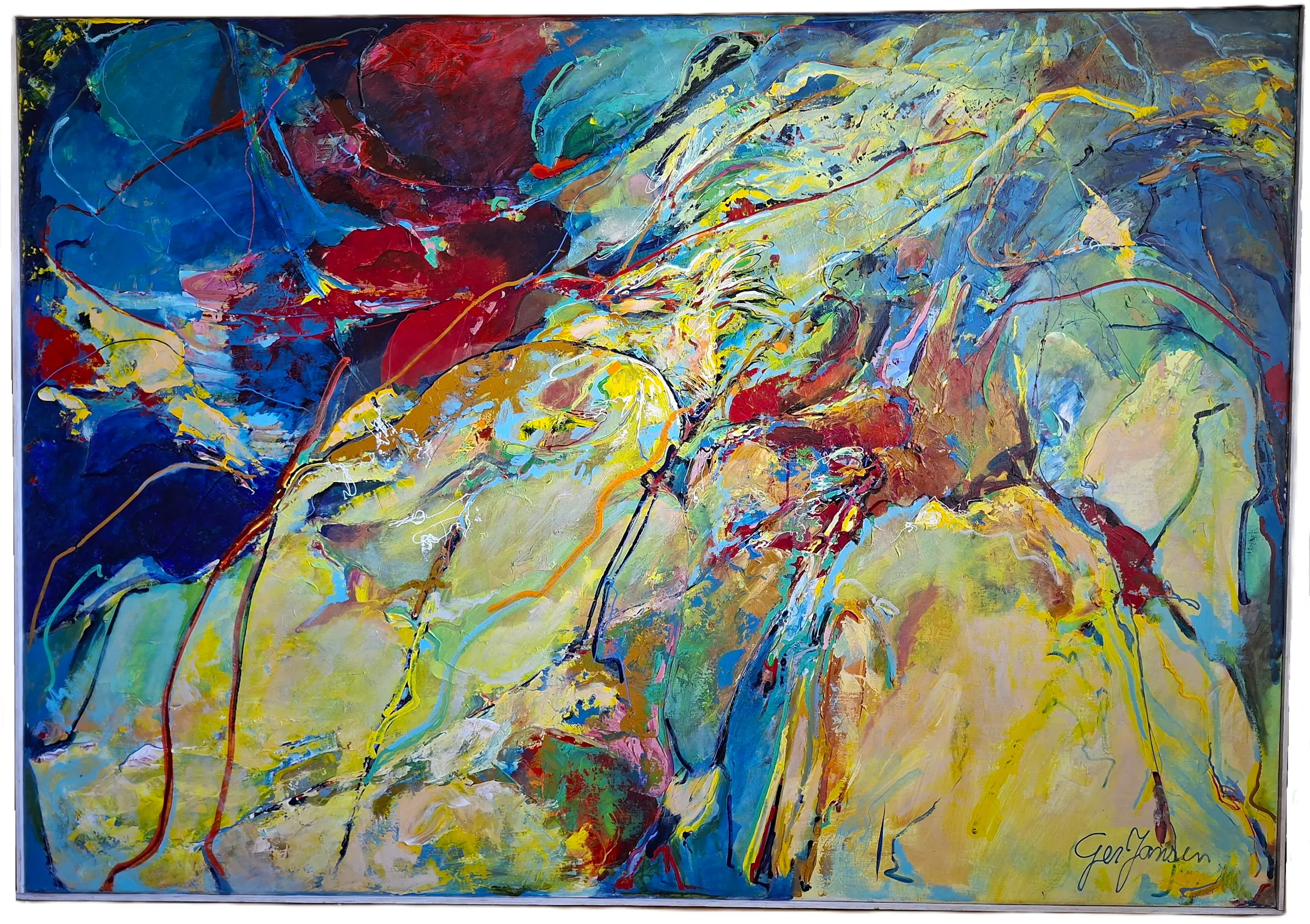 Werk uit de jaren '90. Er zit een eenvoudige houten atelierlijst omheen.