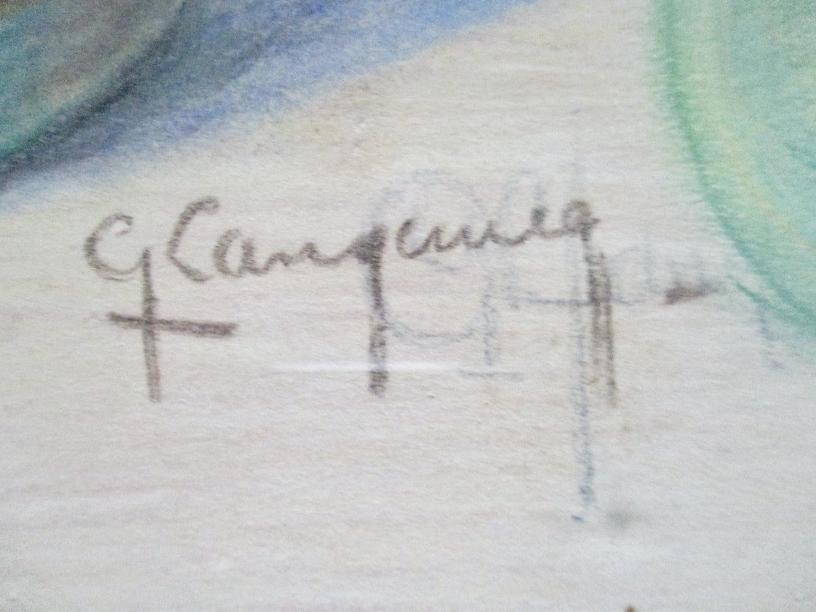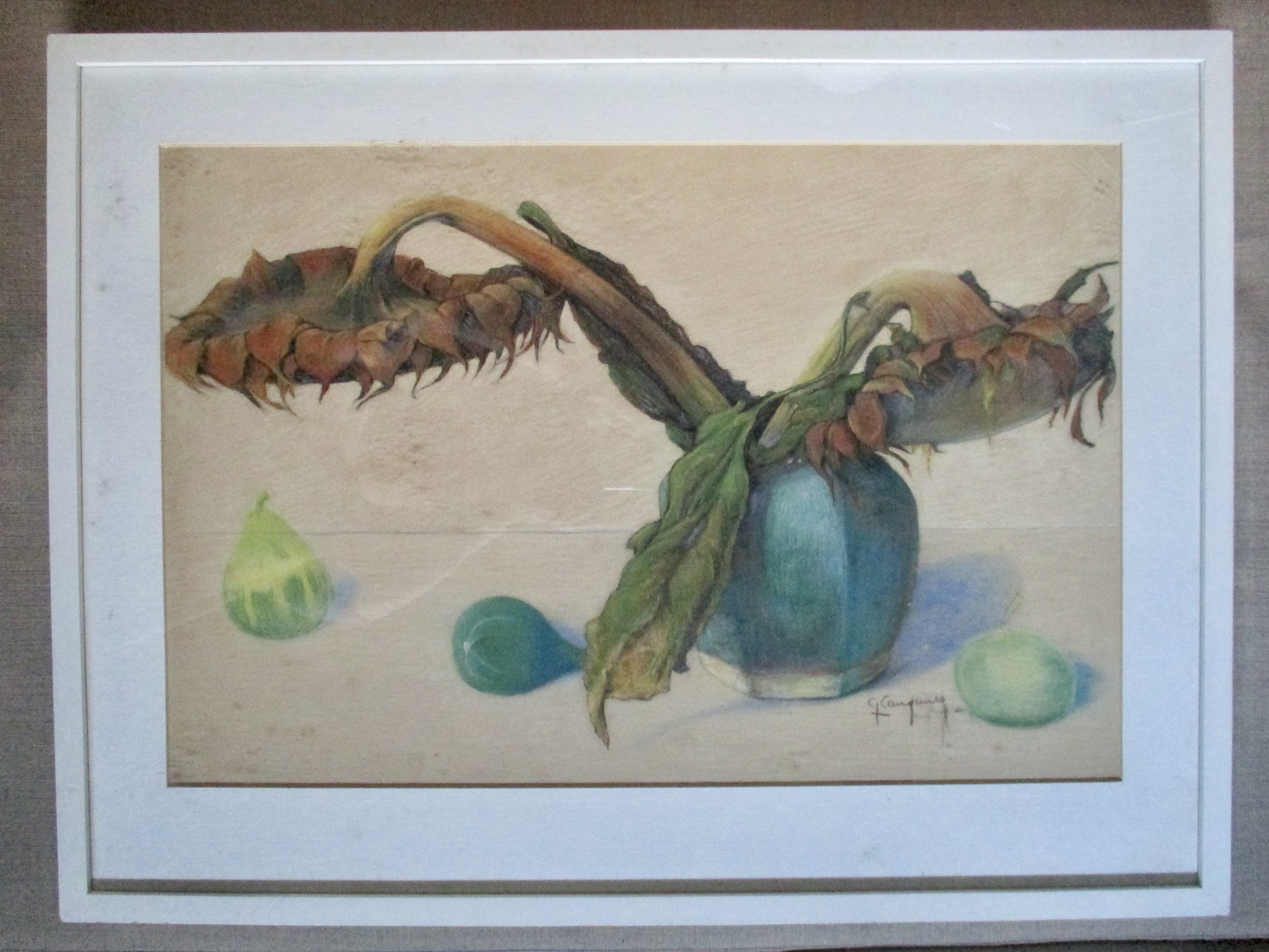 Pasteltekening van Ger Langeweg, gesigneerd r.o. Ingelijst achter glas in houten lijst.
