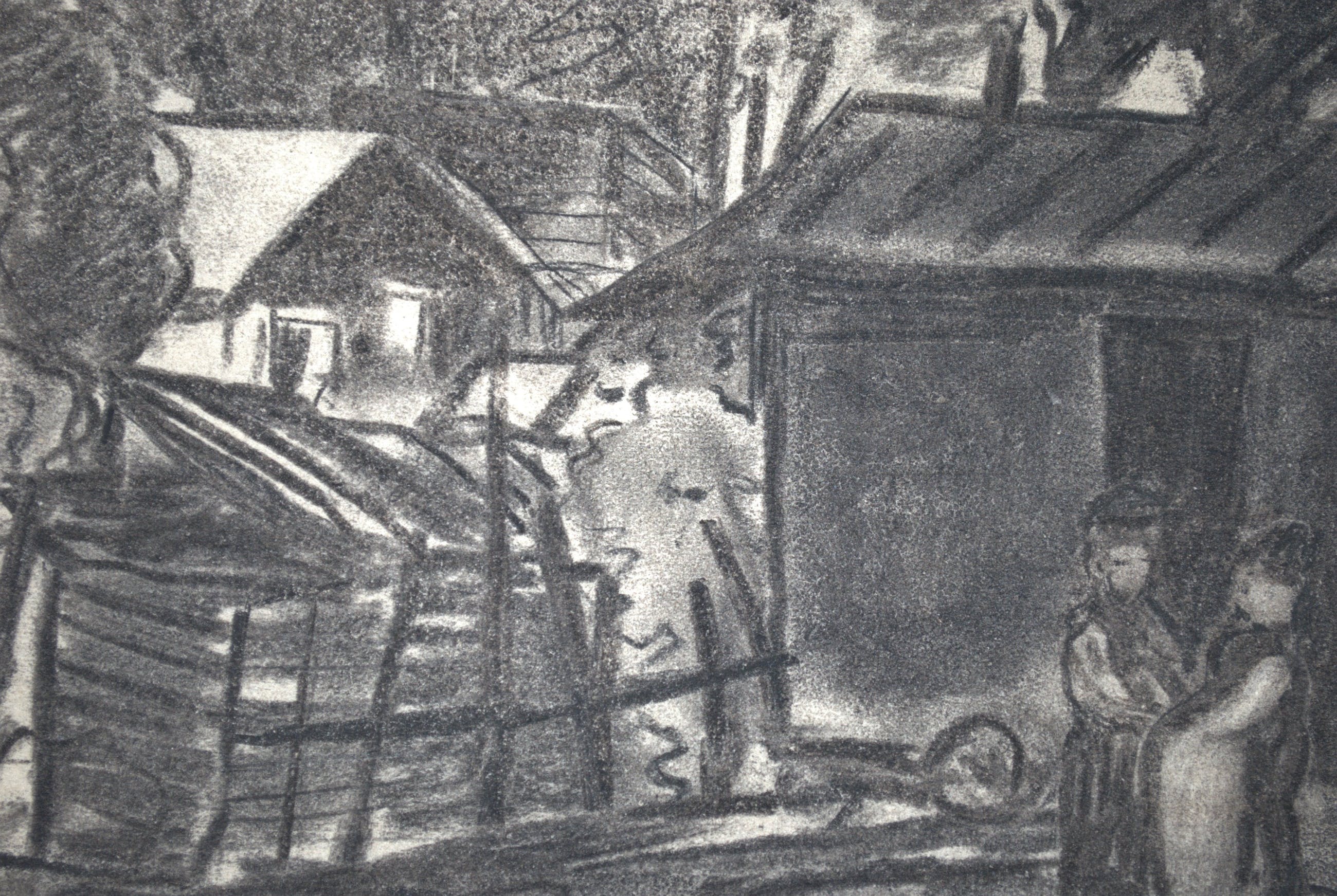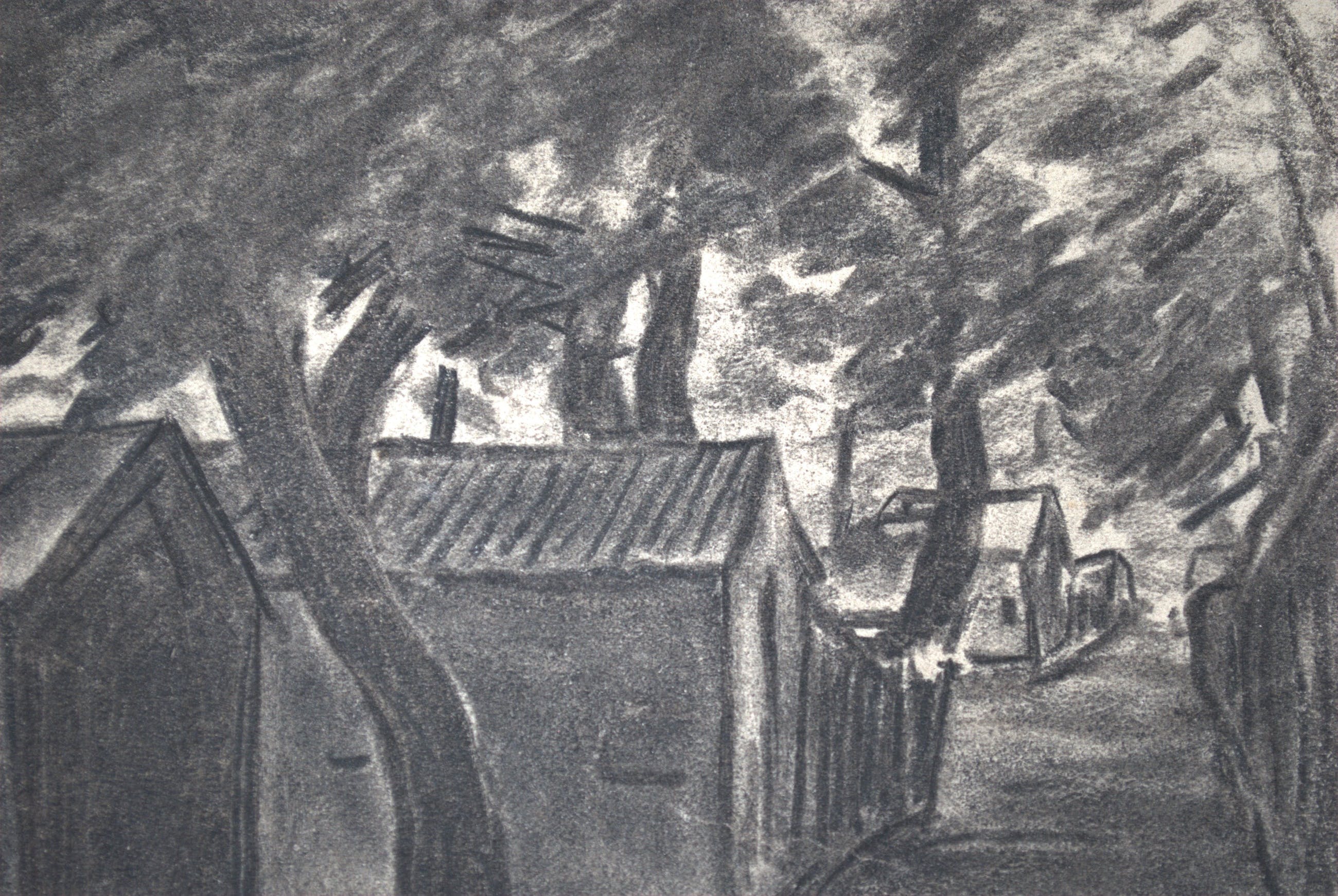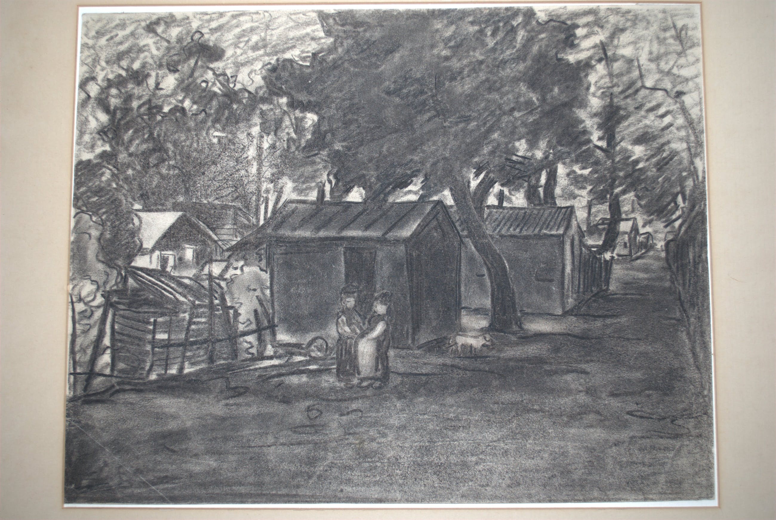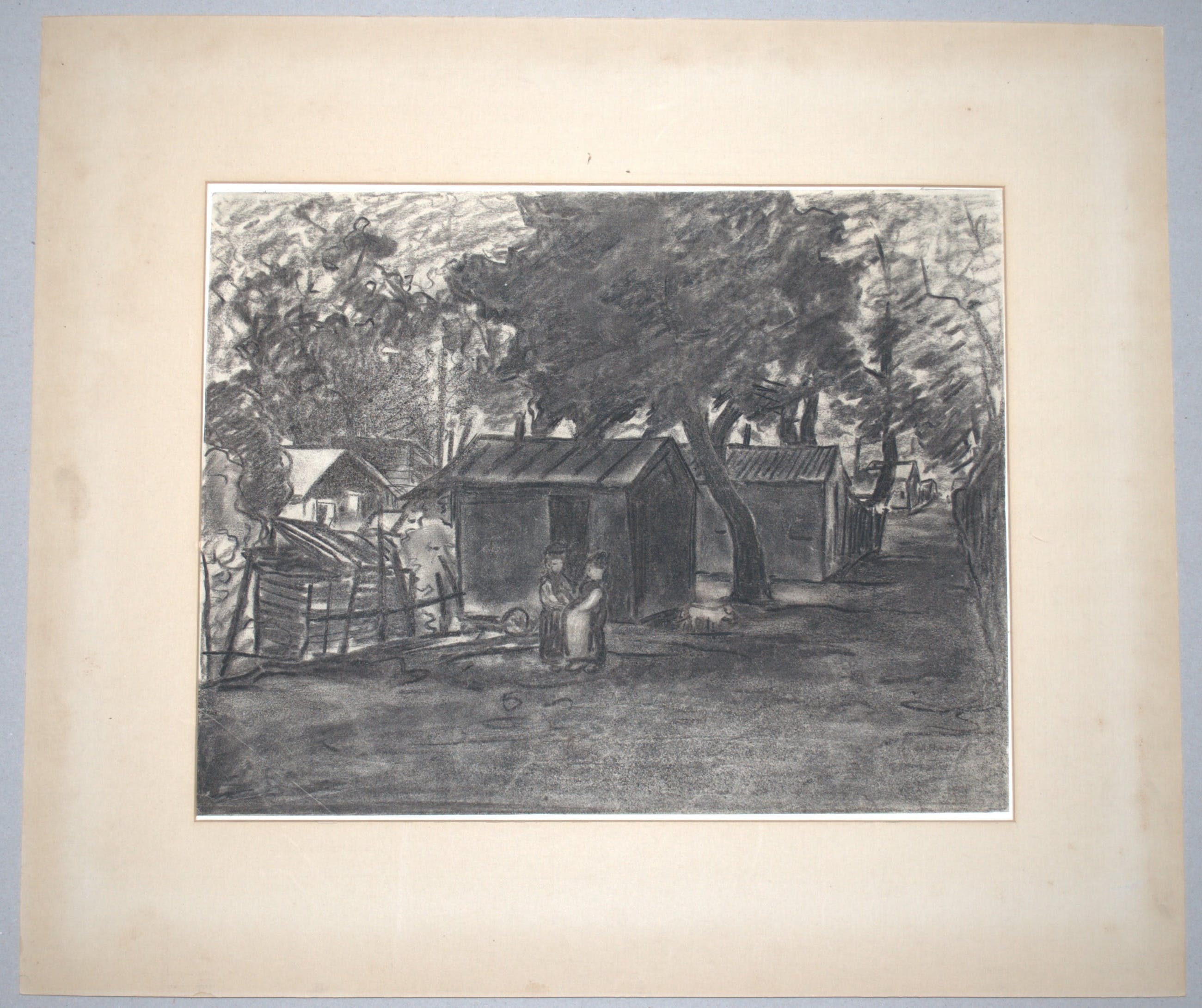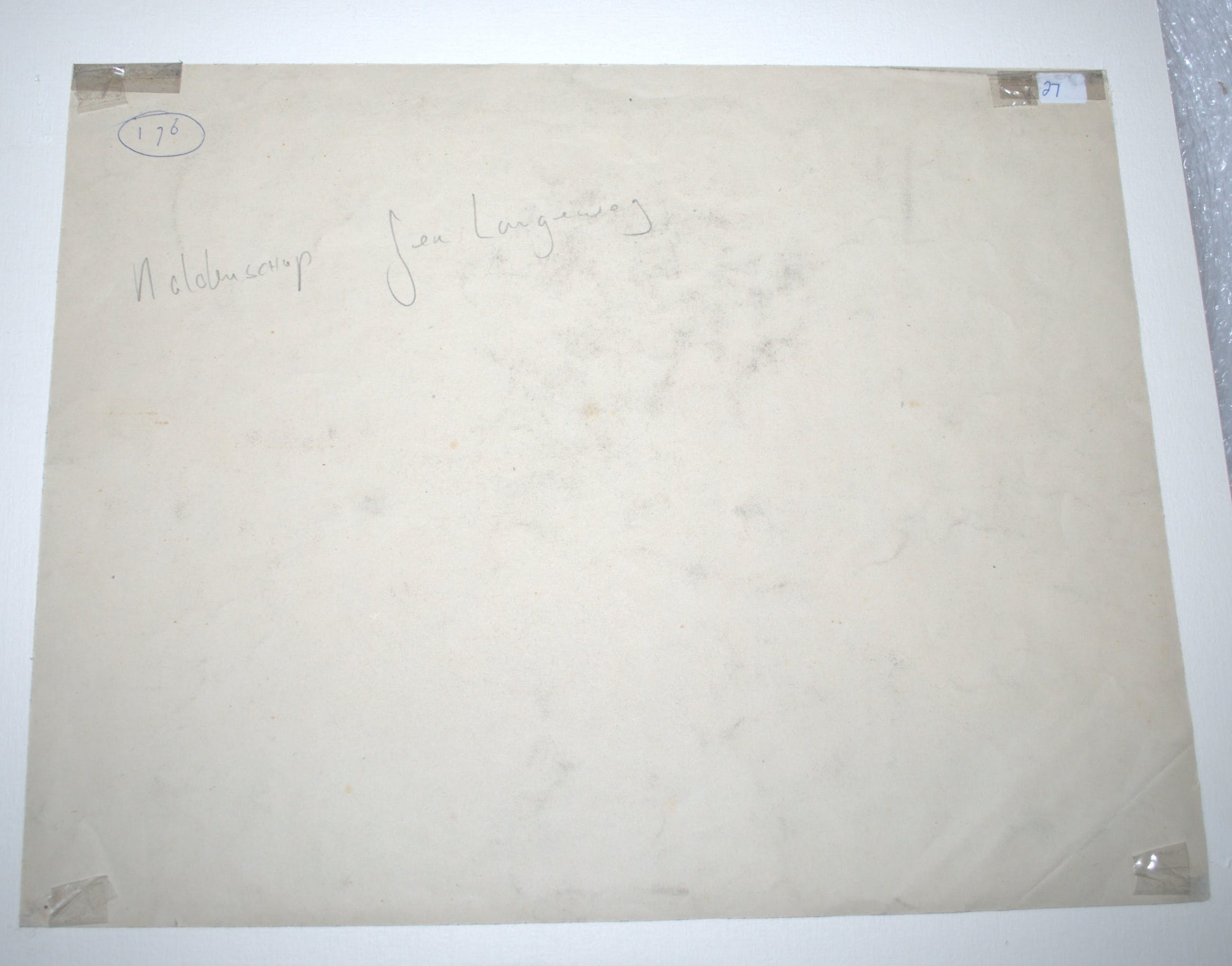 Los blad, 31x39 cm., licht bevestigd op karton in een (vlekkerig) passepartout.