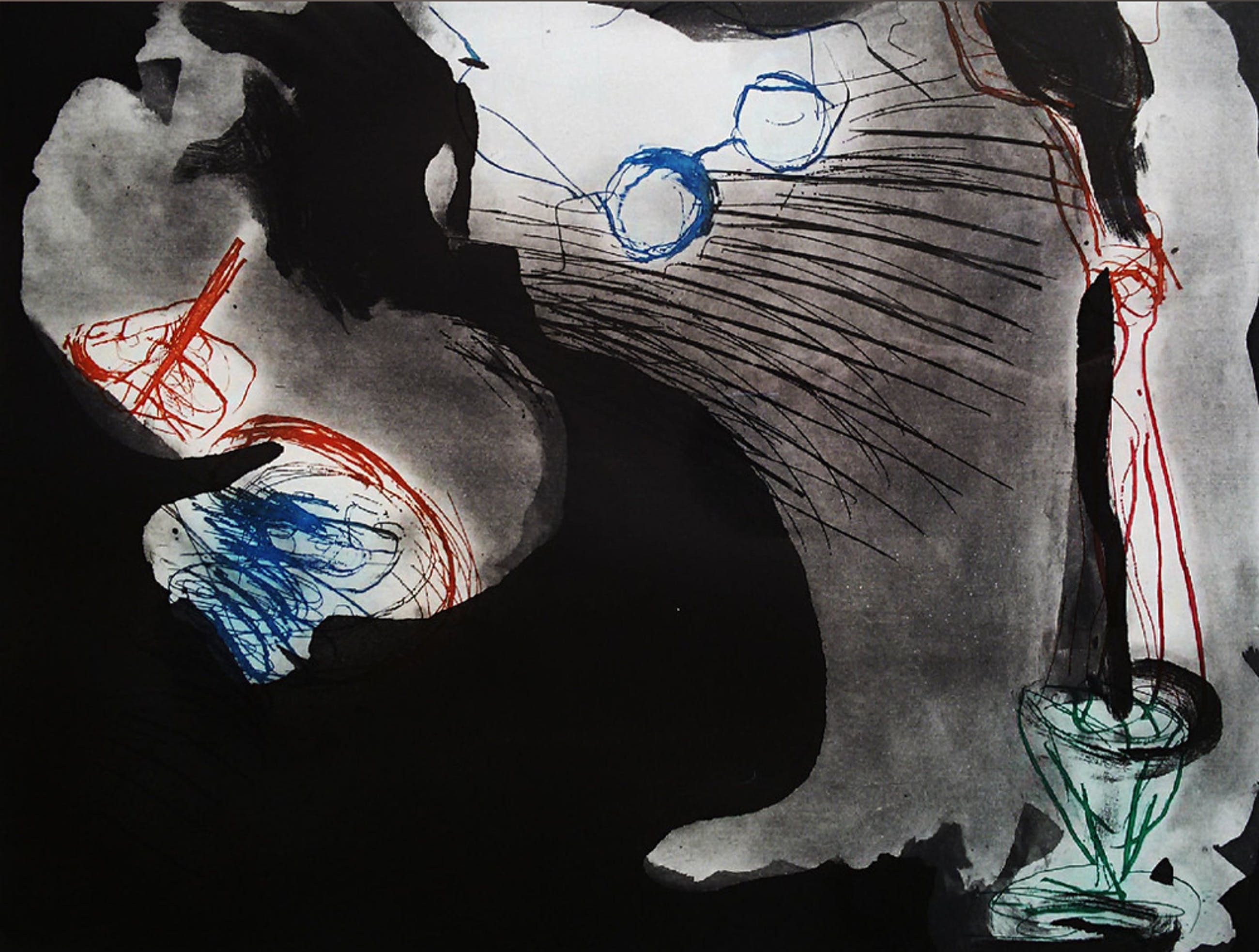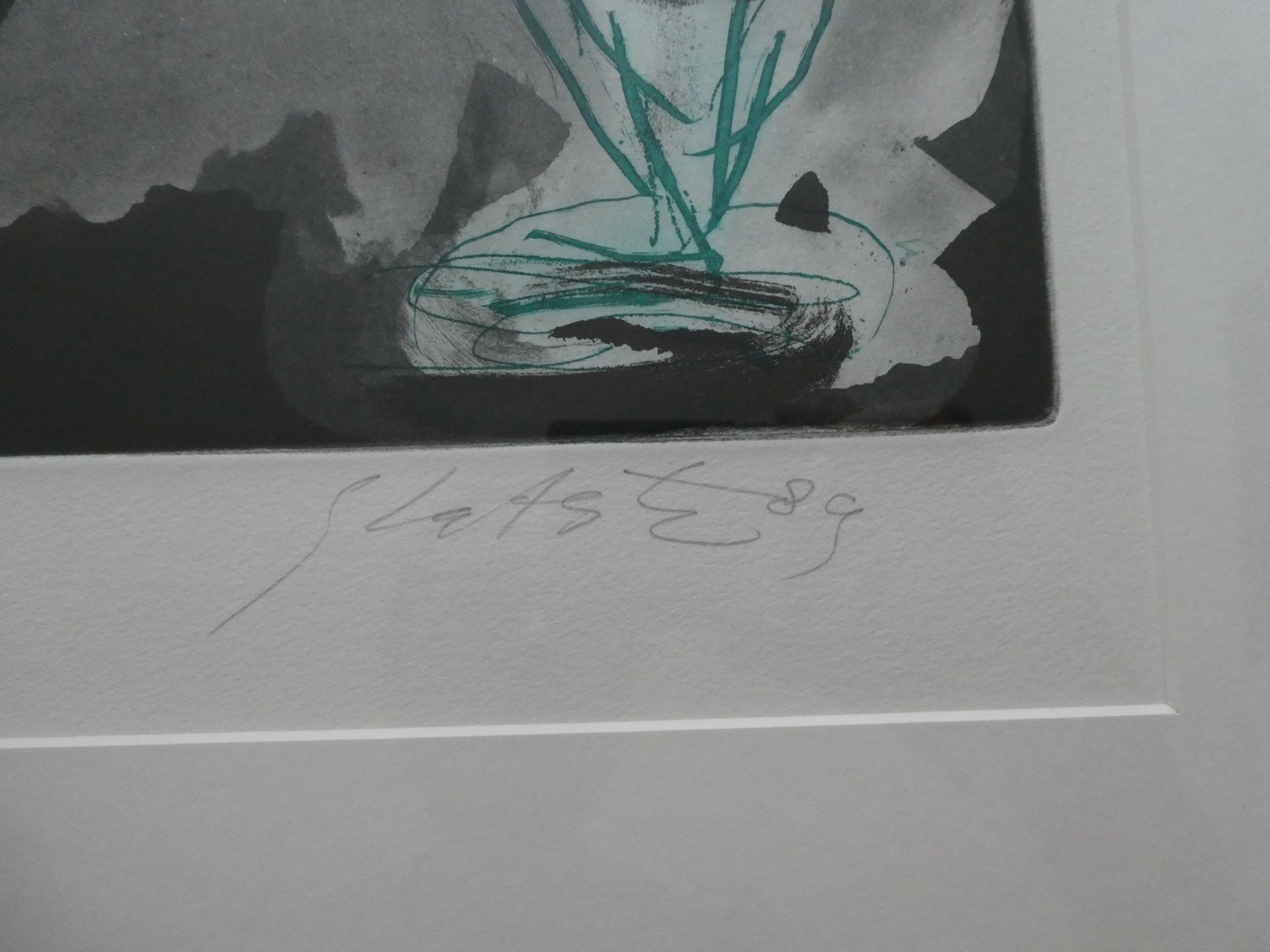 Werk van Ger Lataster uit 1989. Het werk is een aquatint ets op papier, gesigneerd met een oplage van 17/50. De ets zit achter glas en er zit een mooie aluminium lijst omheen.