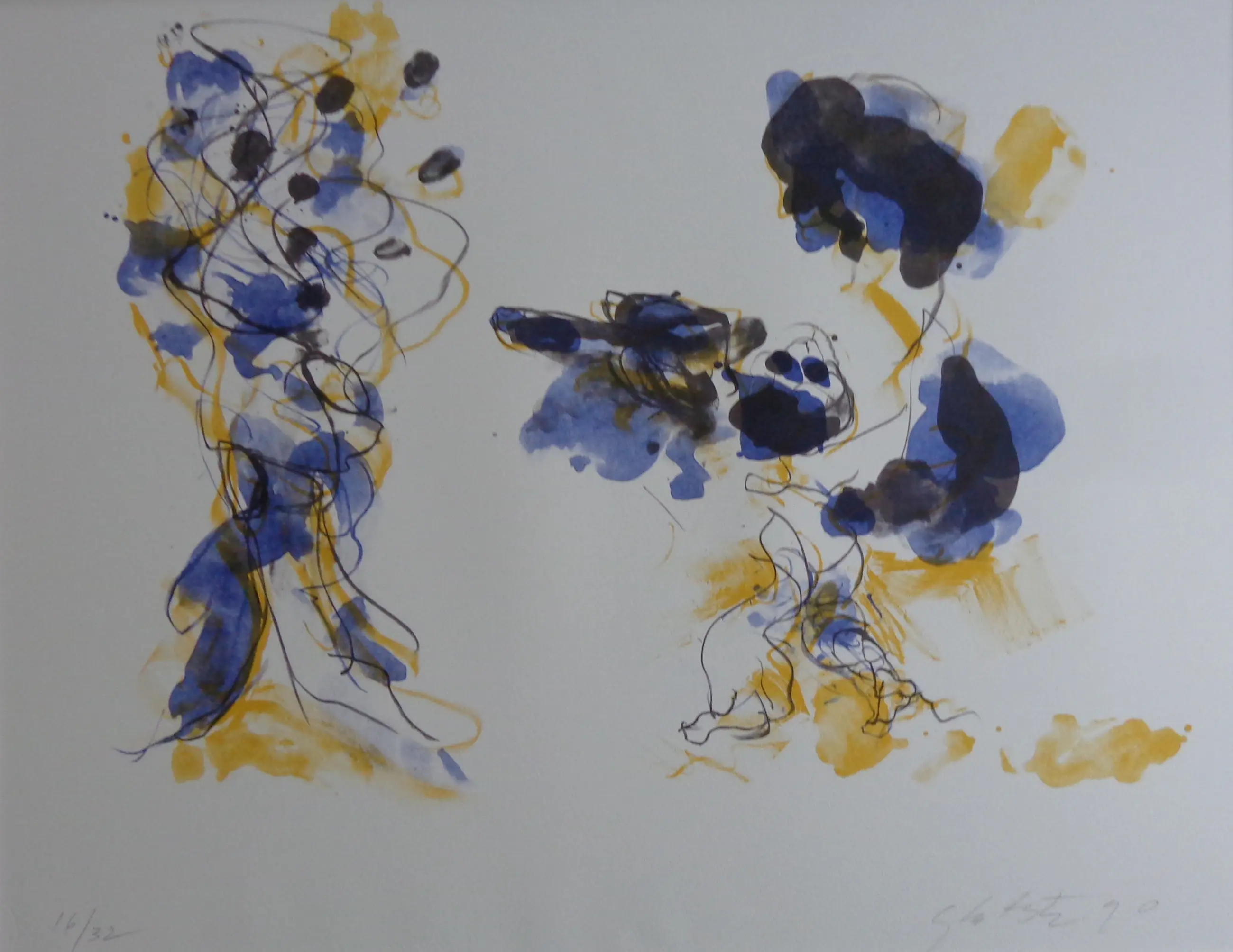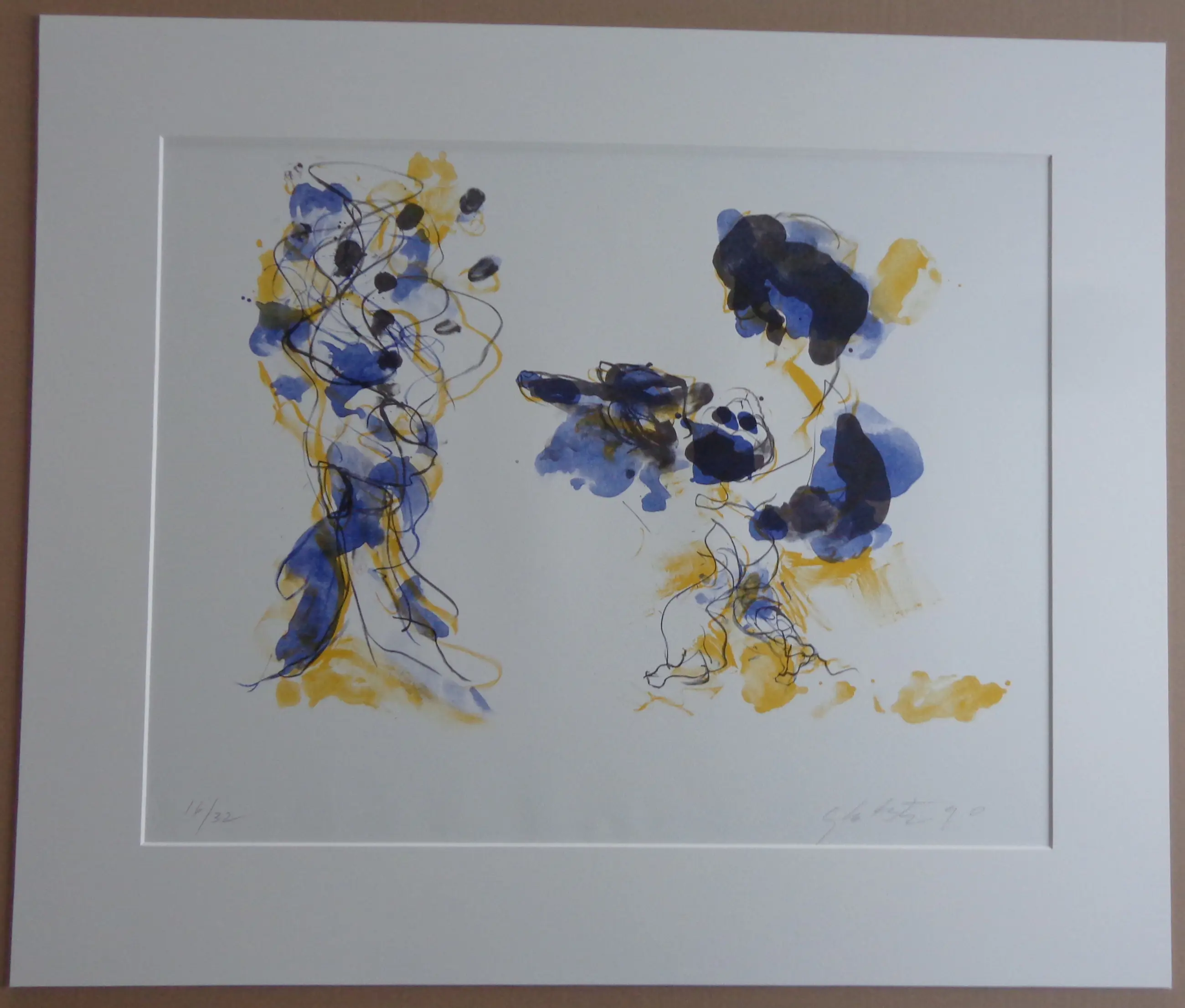 Ger Lataster (1920-2012). Titel: "De vader toont zijn kind zo". Kleurlithografie op papier. Gesigneerd met potlood. Ex.nr. 16/32. 1990. Gemonteerd onder passe-partout + kartonnen rug. Blad: 46x59cm. Passe-Partout: 63x75cm. Proper blad. Vlakke verzending.