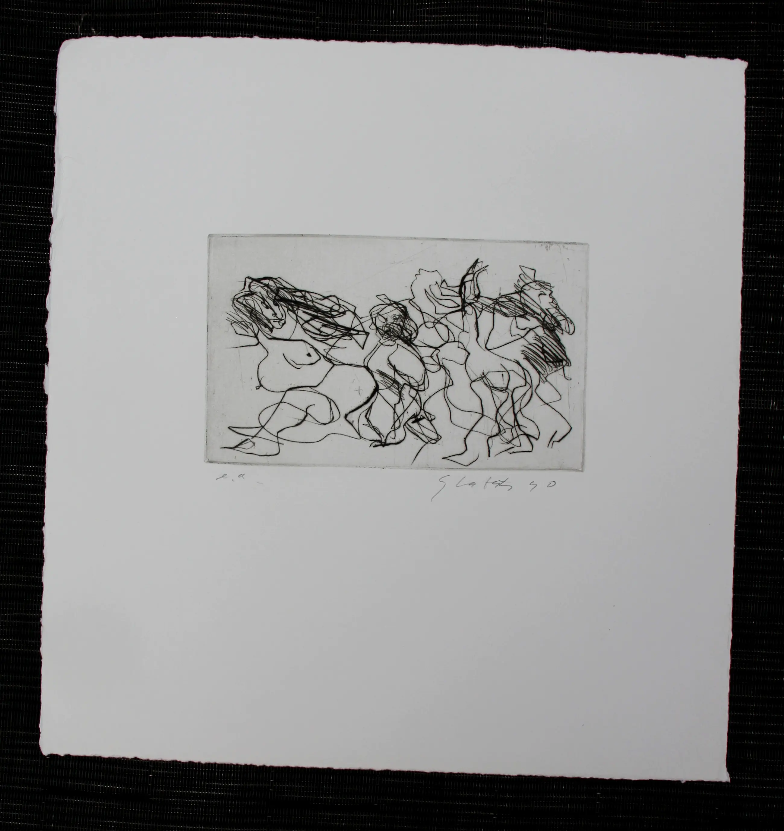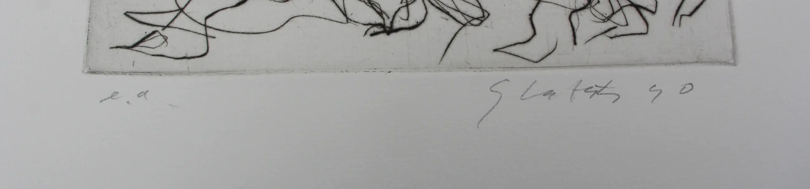 Ets van Ger Lataster. Titel: Naakten. Afmetingen blad: H32,5 x b31cm. Nummer: E.A.Afmetingen voorstelling: H10,5 x b16,5 cm. Het werk is rechts onder, met potlood, gesigneerd en gedateerd door de kunstenaar. De authenticiteit van het aangeboden werk wordt volledig gegarandeerd. Een certificaat van echtheid kan, op aanvraag worden gemaild.