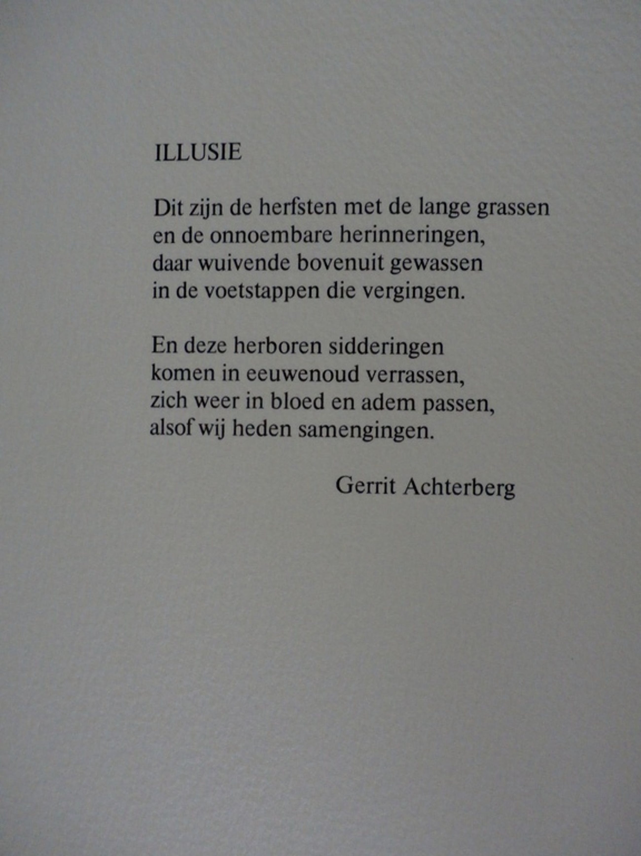 Abstracte zwarte ets van Ger Lataster. Bij deze ets is een gedicht van Gerrit Achterberg met de titel "Illusie"". De ets is rechtsonder met potlood gesigneerd. Nummer: 23/25 (romeinse cijfers). Afmetingen blad: h50 x b65 cm. Afmetingen ets: h27,5 x b19,5 cm.