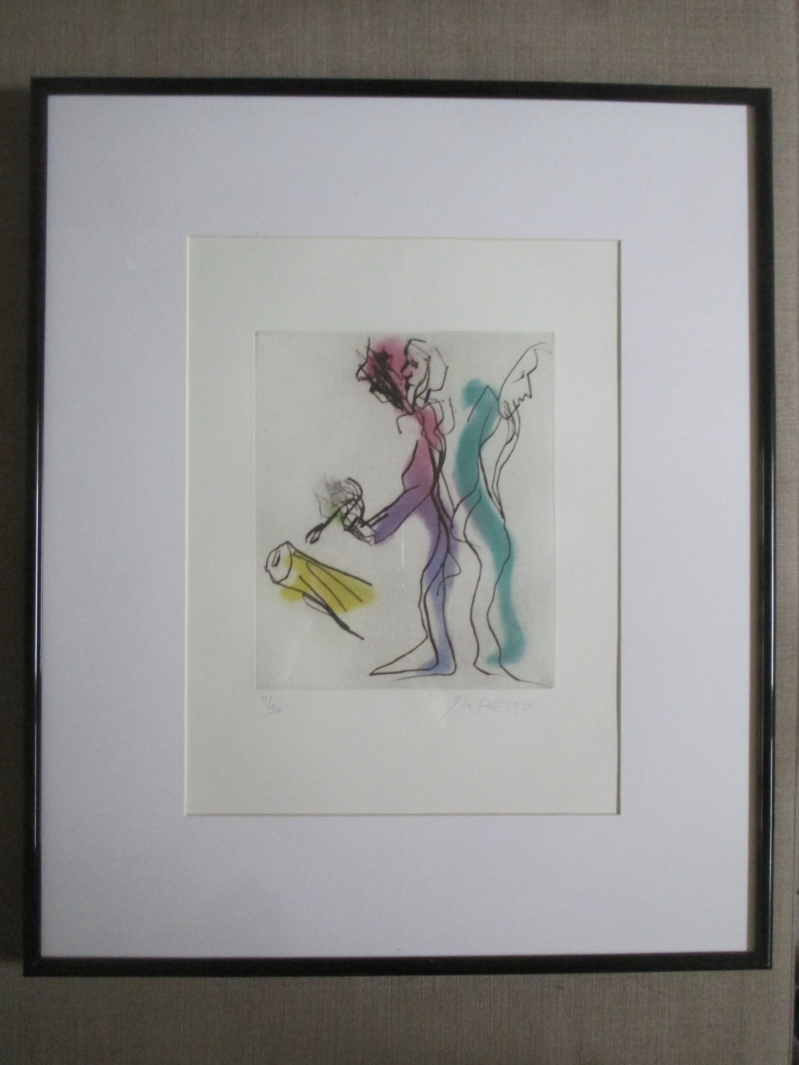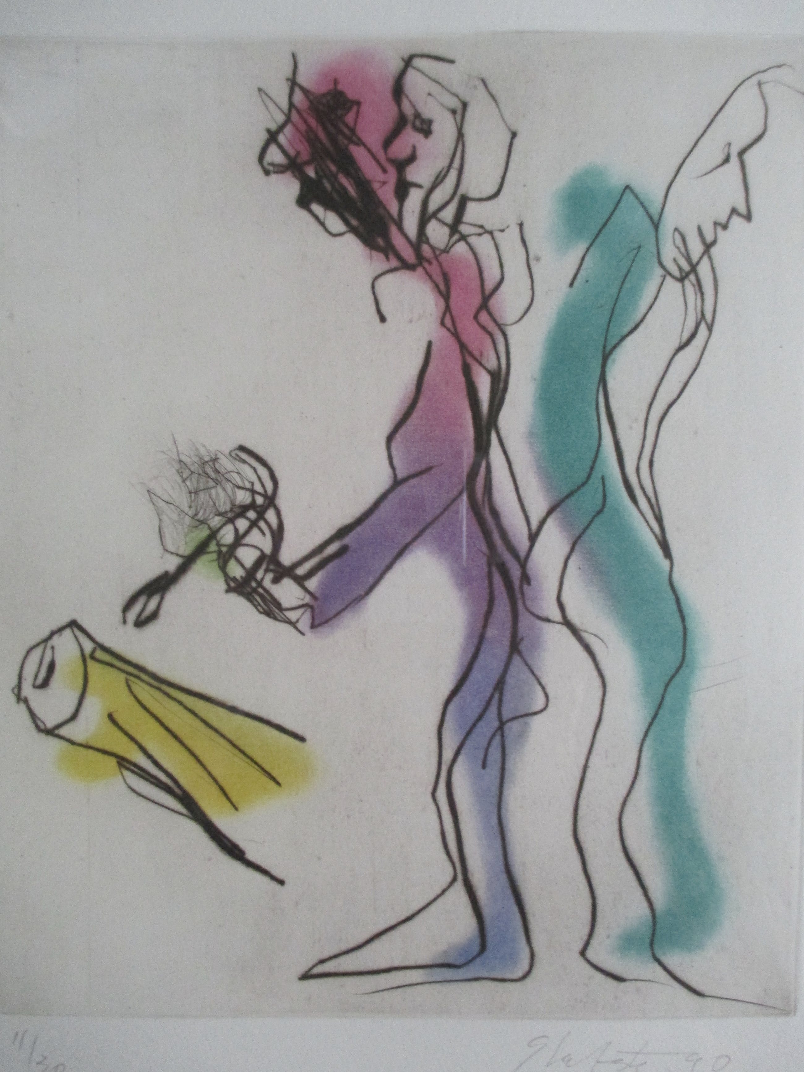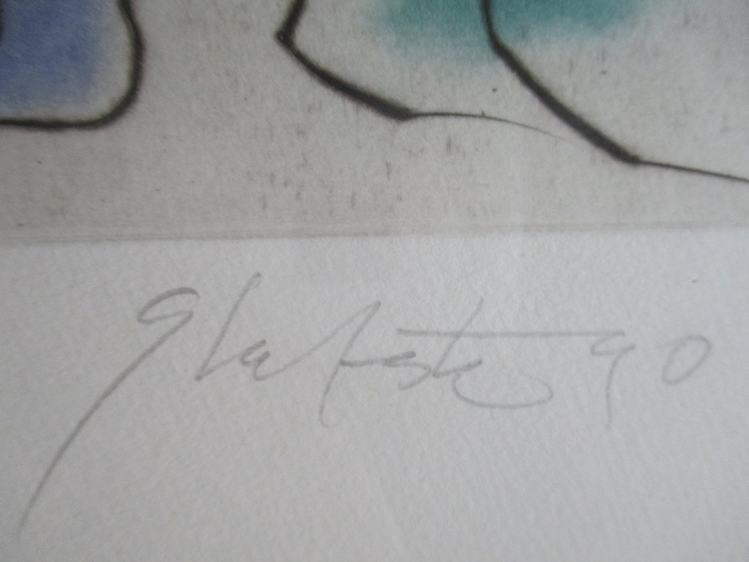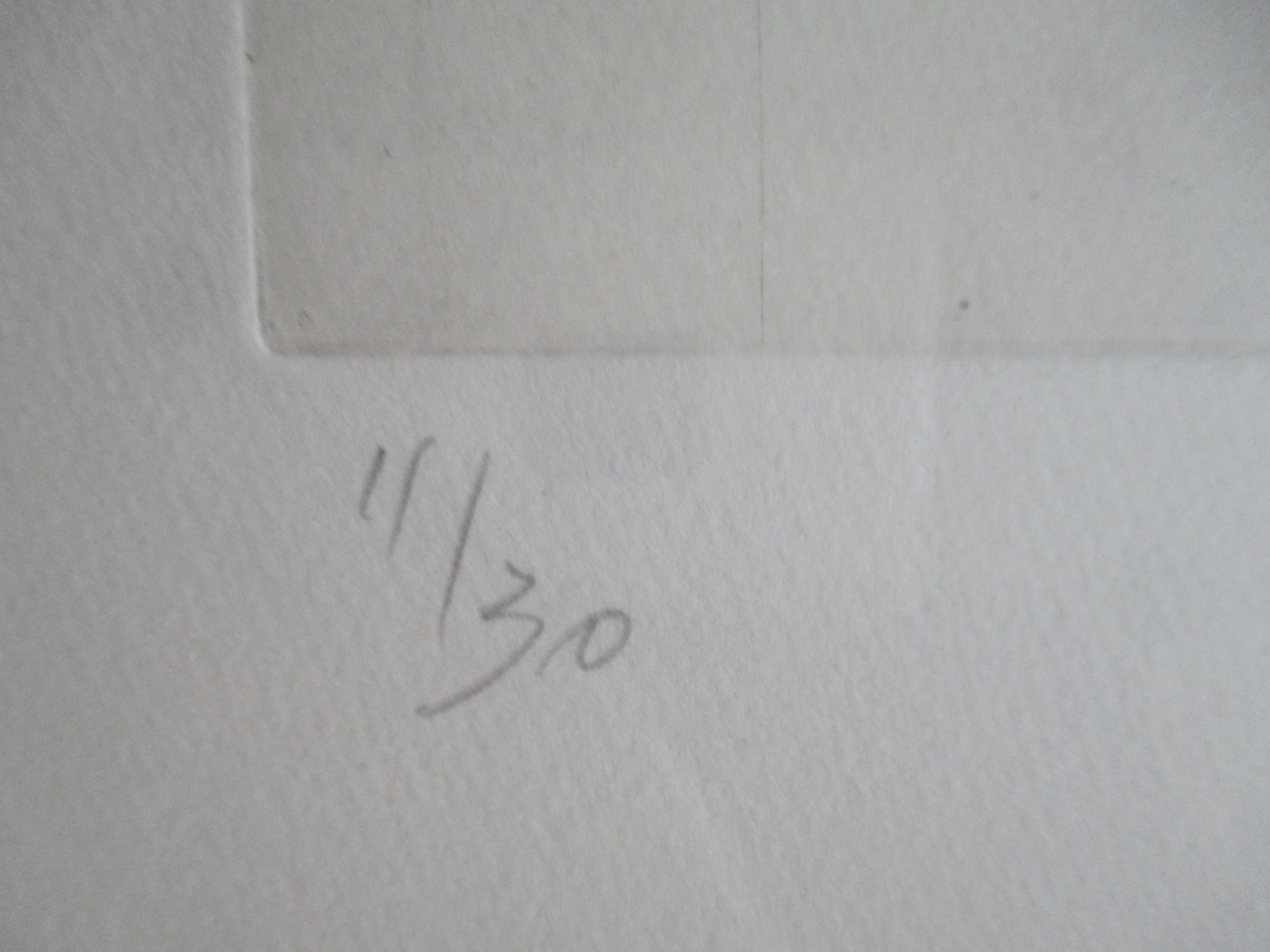 Ets van Ger Lataster, gesigneerd, gedateerd en genummerd in potlood. iNgelijst achter pass-partout en glas in zwarte aluminium lijst.