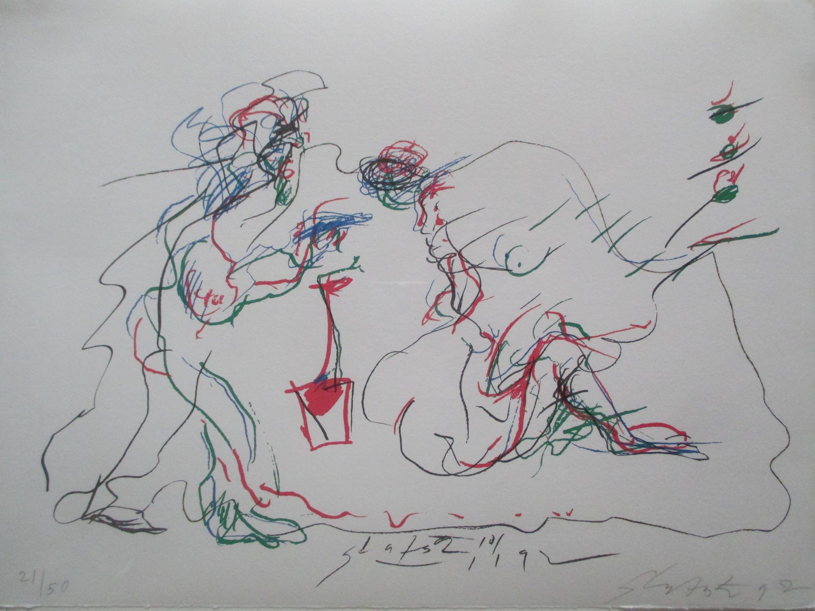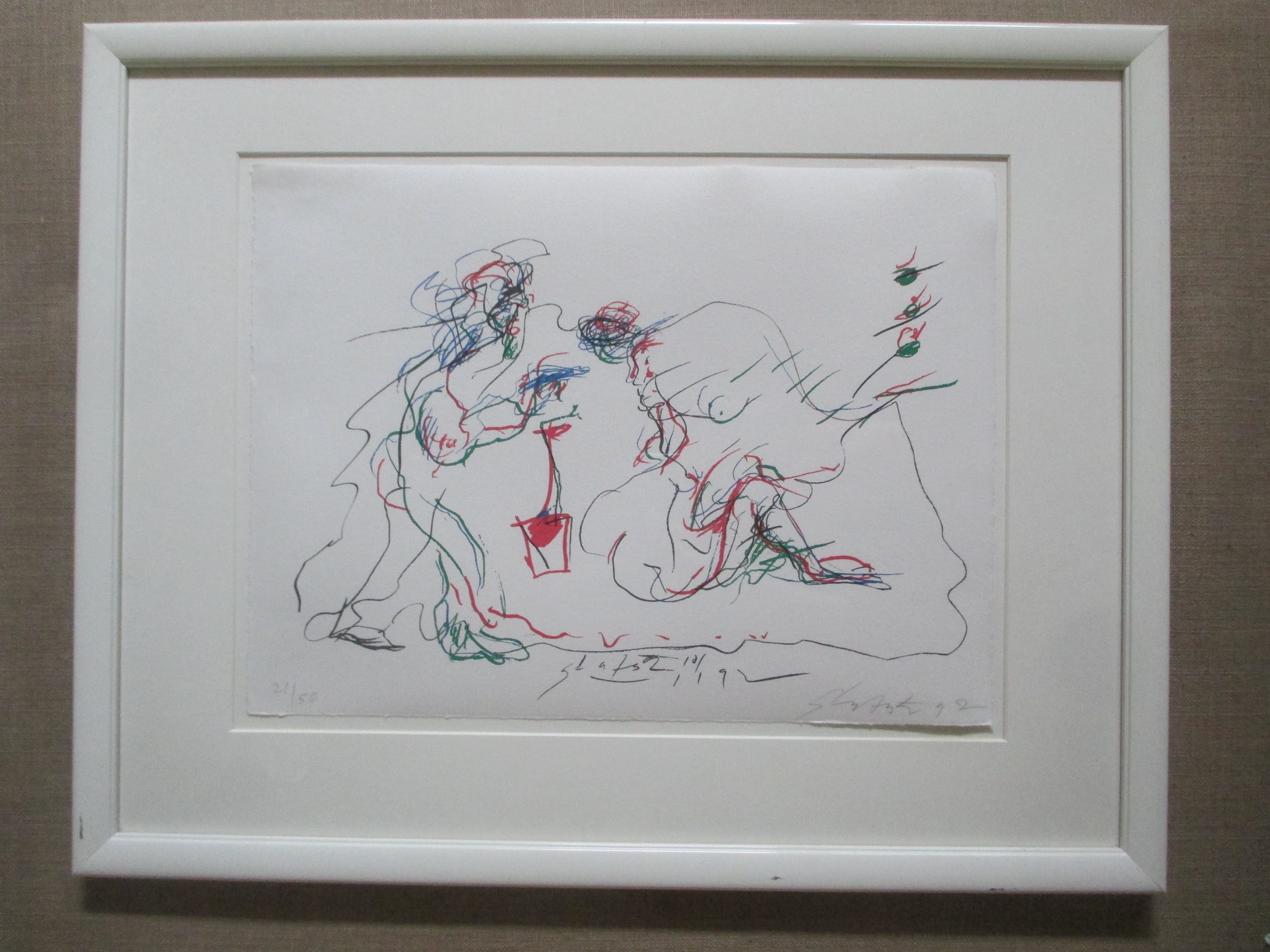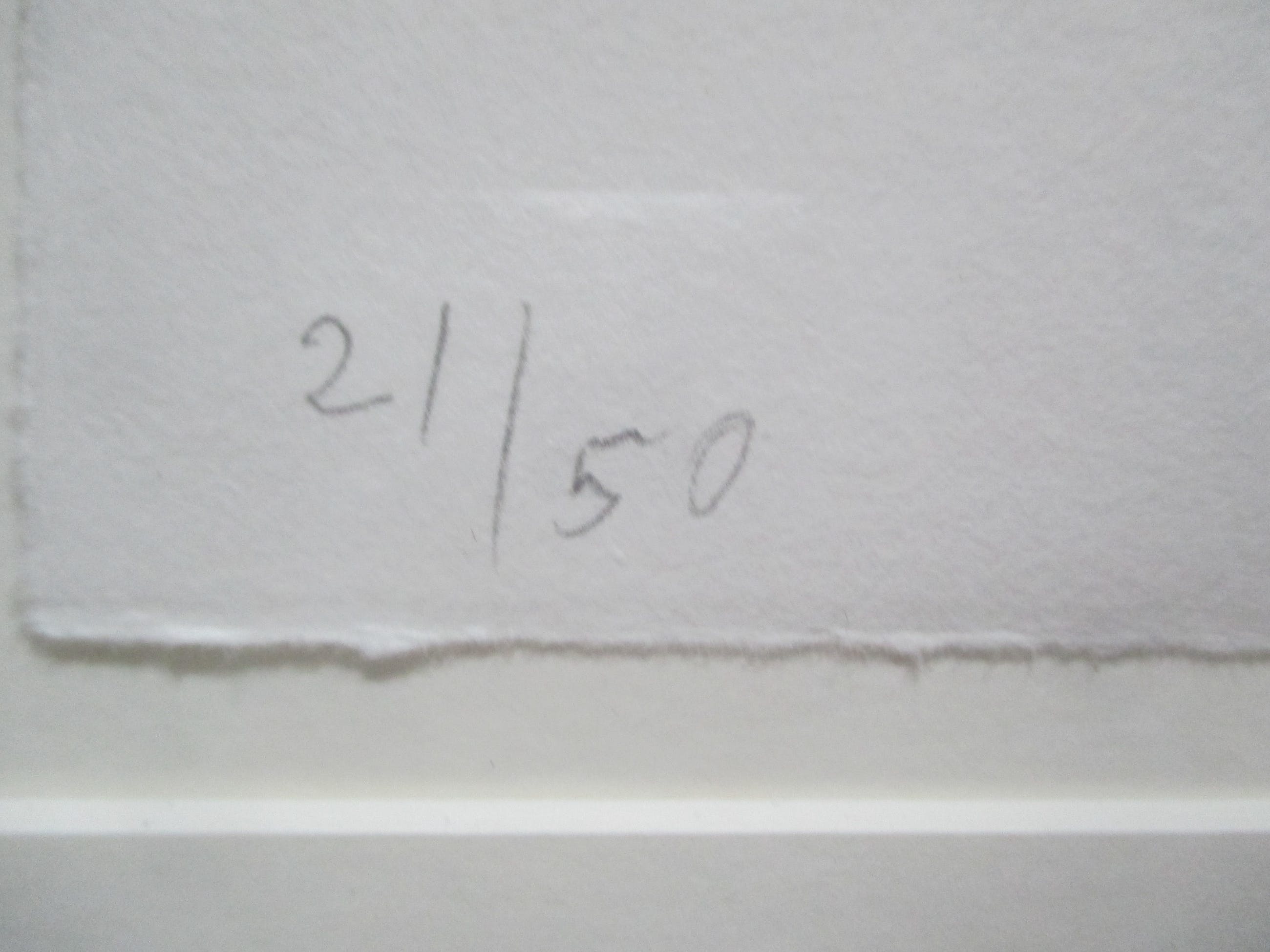 Litho van ger Lataster, gesigneerd, gedateerd en genummerd in potlood. Ingelijst met passe-partout en achter glas in witte aluminium lijst.