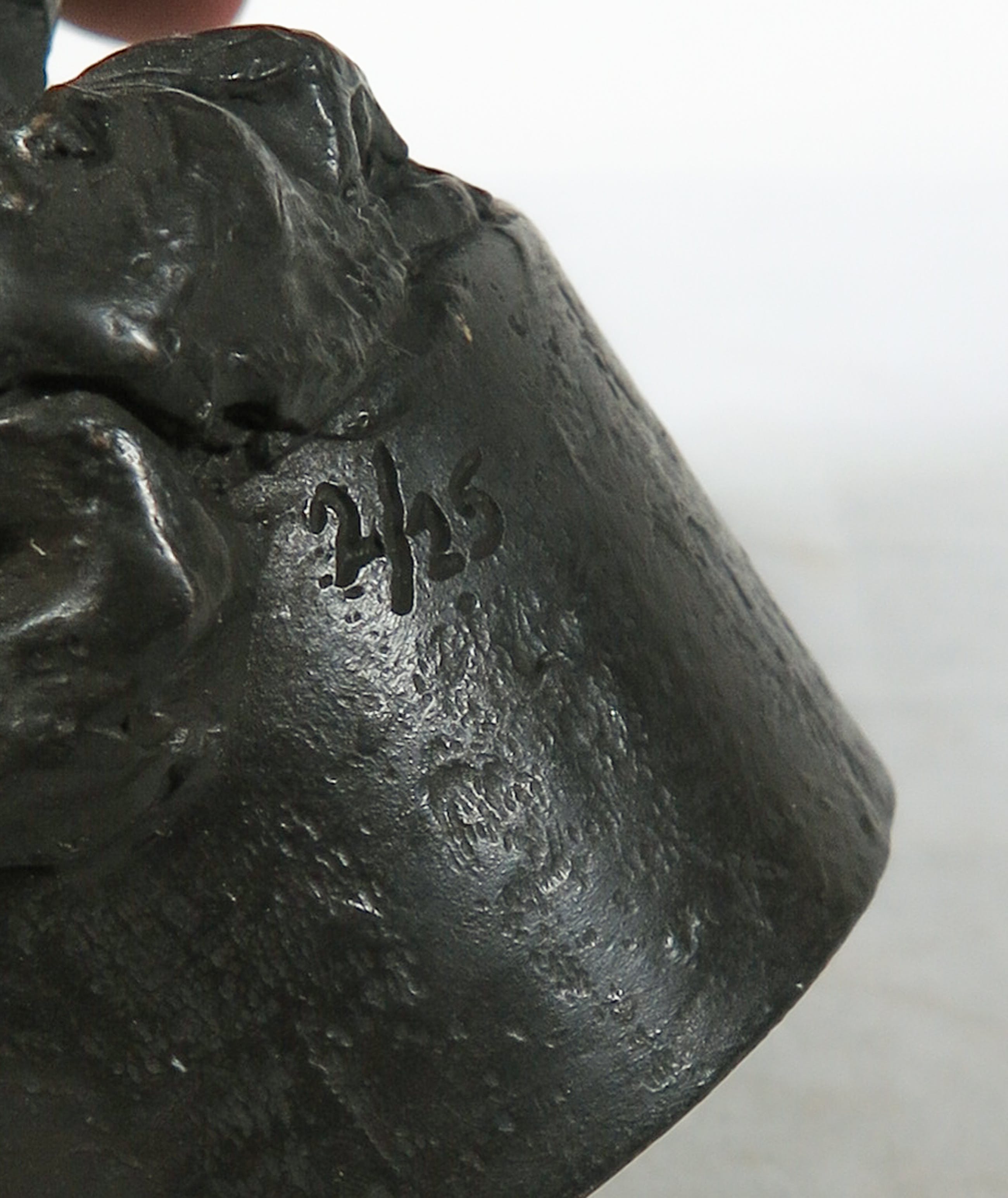 De voet is gevuld (mogelijk met tin of lood). Afmetingen zijn inclusief de bronzen voet.