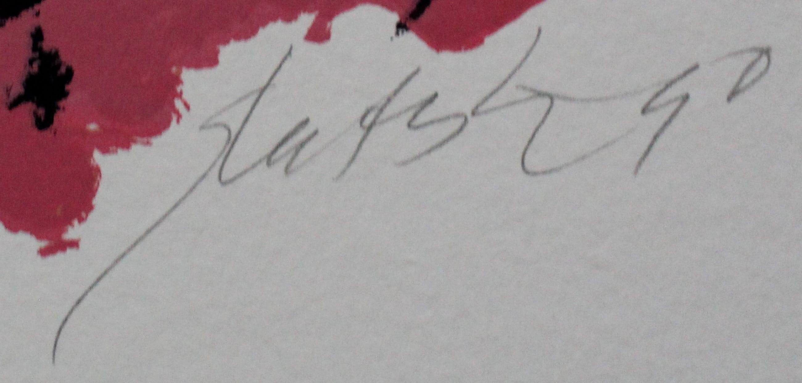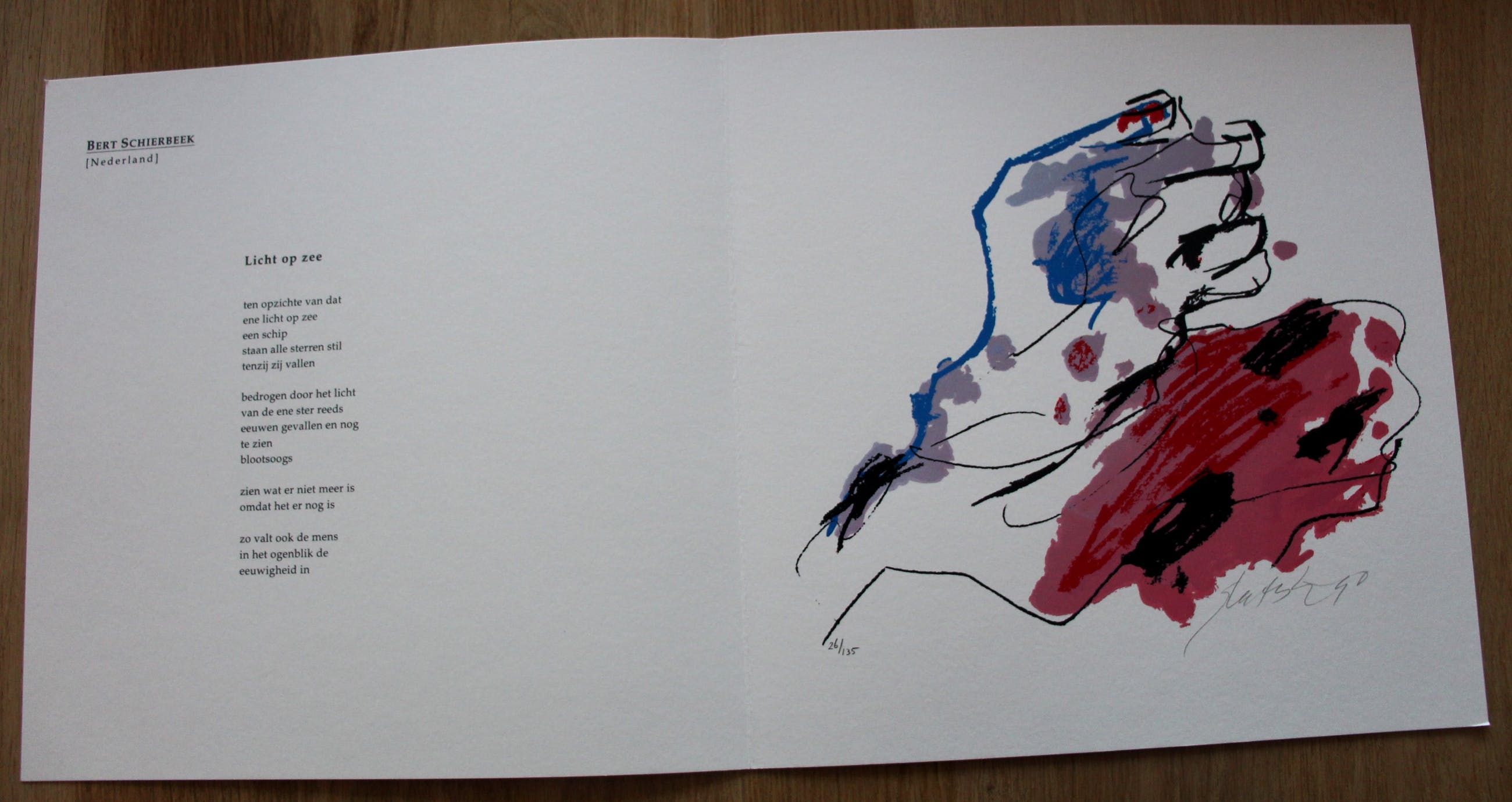 Zeefdruk van Ger Lataster. Met een gedicht van Bert Schierbeek: Licht op zee. Jaar: 1990. Nummer: 26/135. Afmetingen werk: H32 x b32cm. Afmetingen voorstelling: H28 x b28cm. Het werk is rechts onderaan, met potlood, gesigneerd door de kunstenaar. De authenticiteit van het, aangeboden, werk wordt volledig gegarandeerd. Een certificaat van echtheid kan, op aanvraag, worden gemaild.