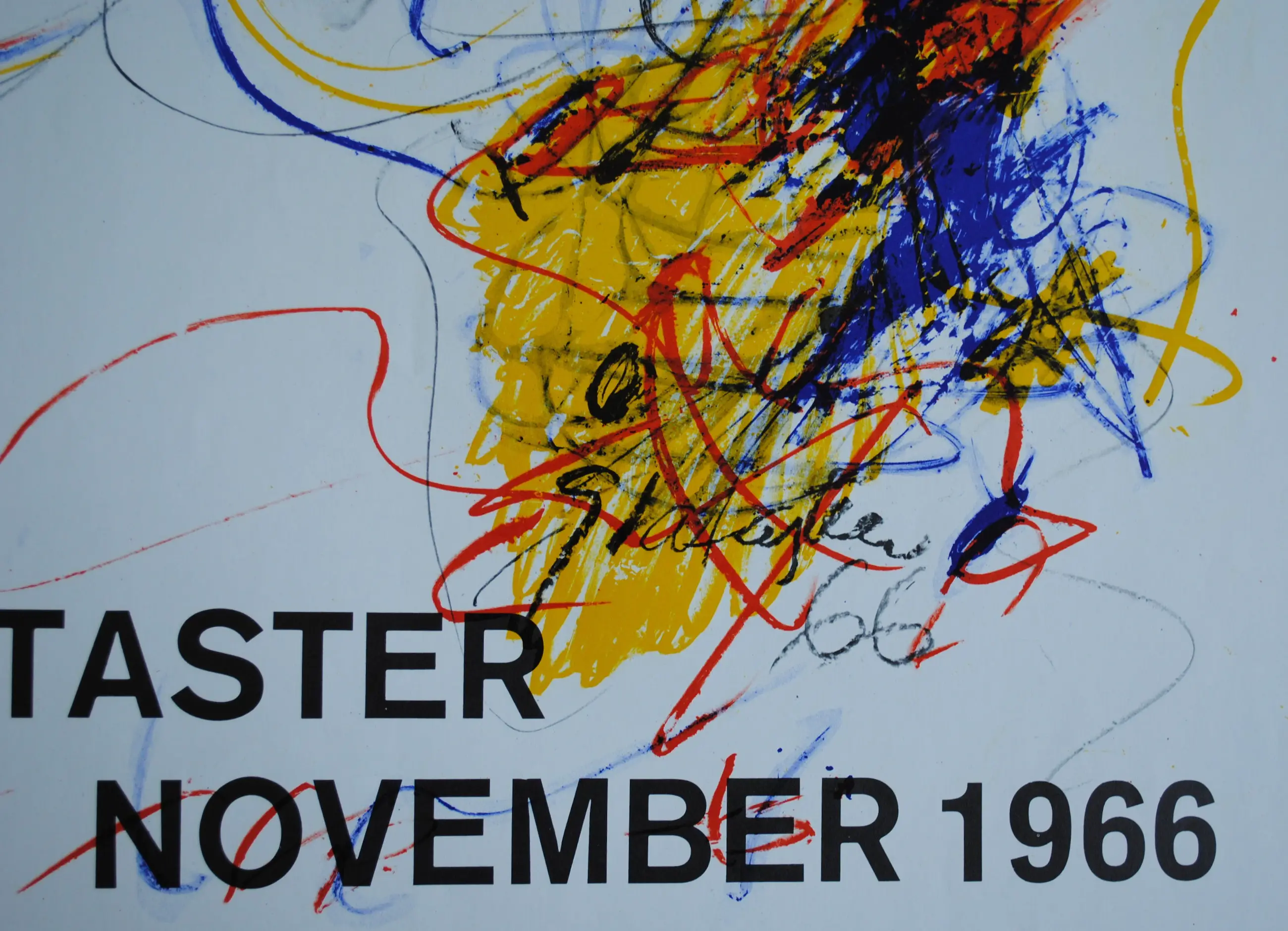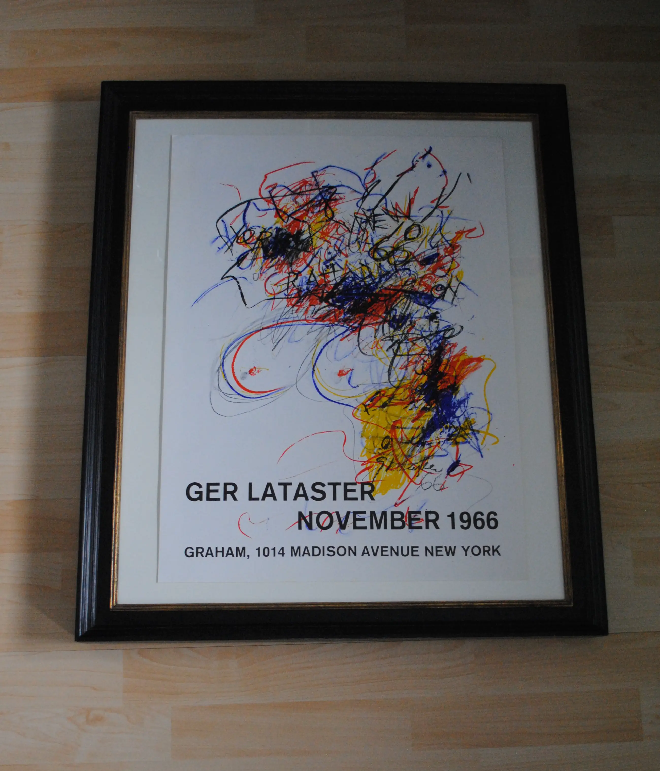 Een zeldzame, zéér vroege en kleurrijke tentoonstellingsaffiche van Ger Lataster (die dit jaar 100 jaar zou zijn geworden) n.a.v. zijn tentoonstelling bij Graham New York in 1966
