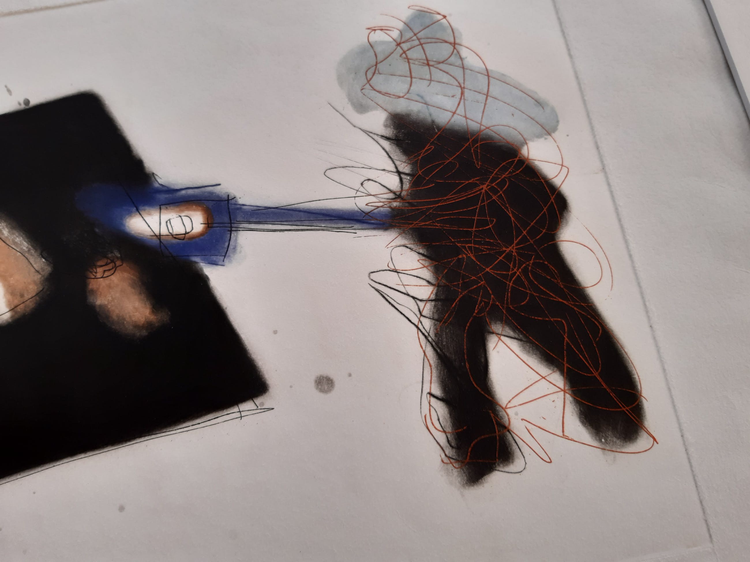 Mooi abstract-expressionistische ets/aquatint van Ger Lataster, gedrukt op Hahnemule papier. Op de achterkant staat EKS5