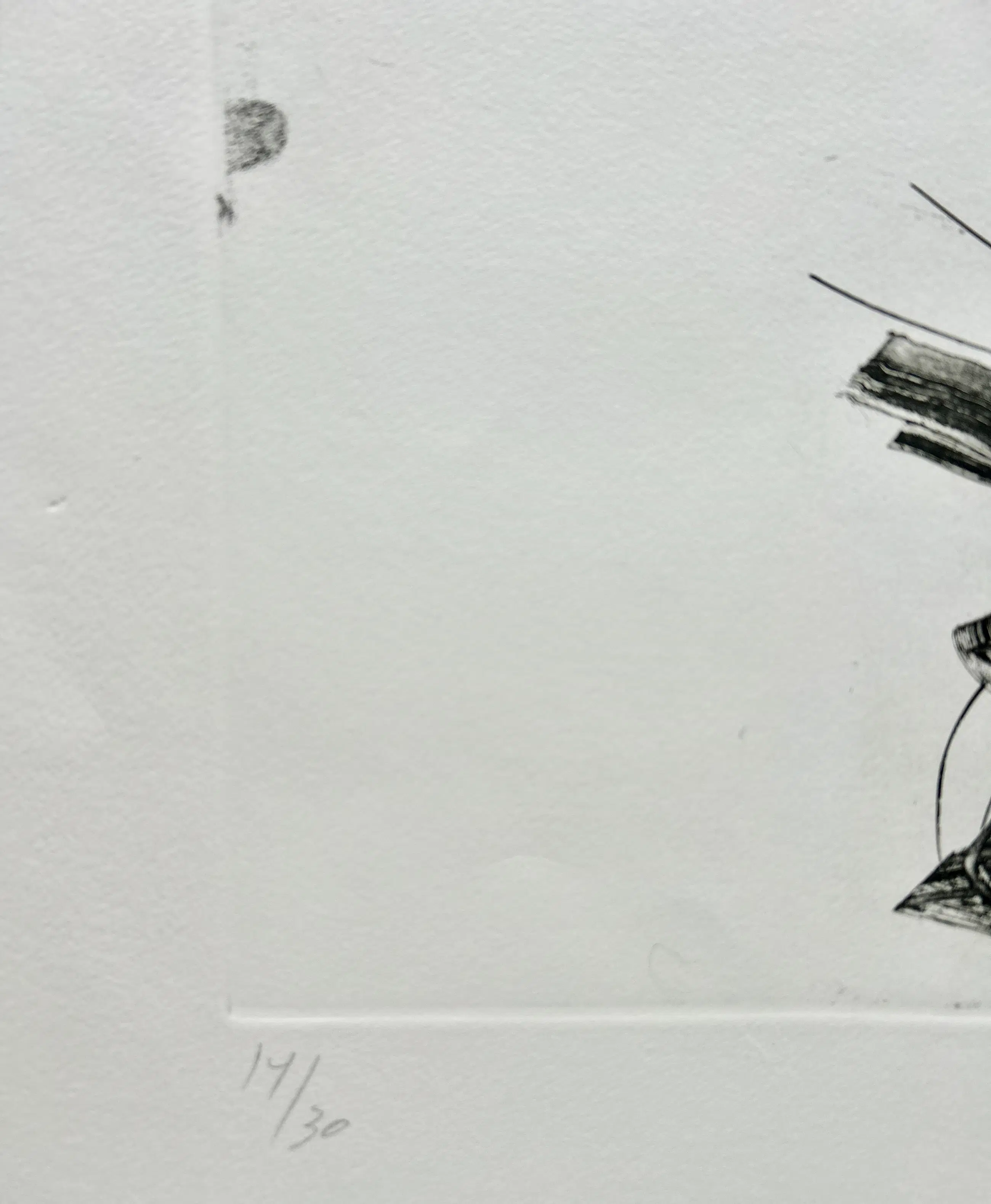 Conditie: zeer goed. Rand vel heeft lichte deukjes en vouwtje, zie foto's. Oplage: 14/30. Afmeting: ets 49 x 31 cm. Wordt zorgvuldig verpakt en verzekerd verzonden.