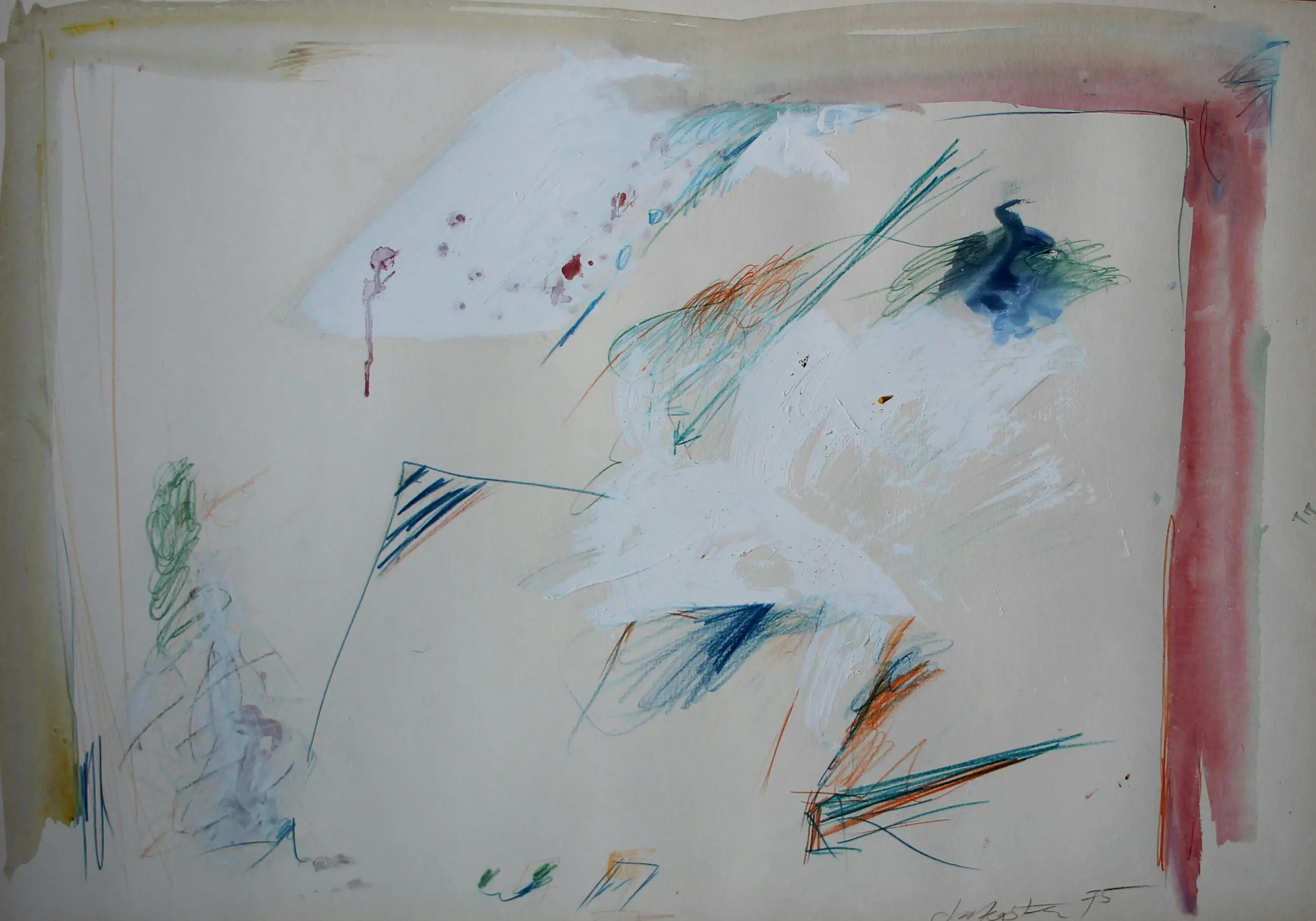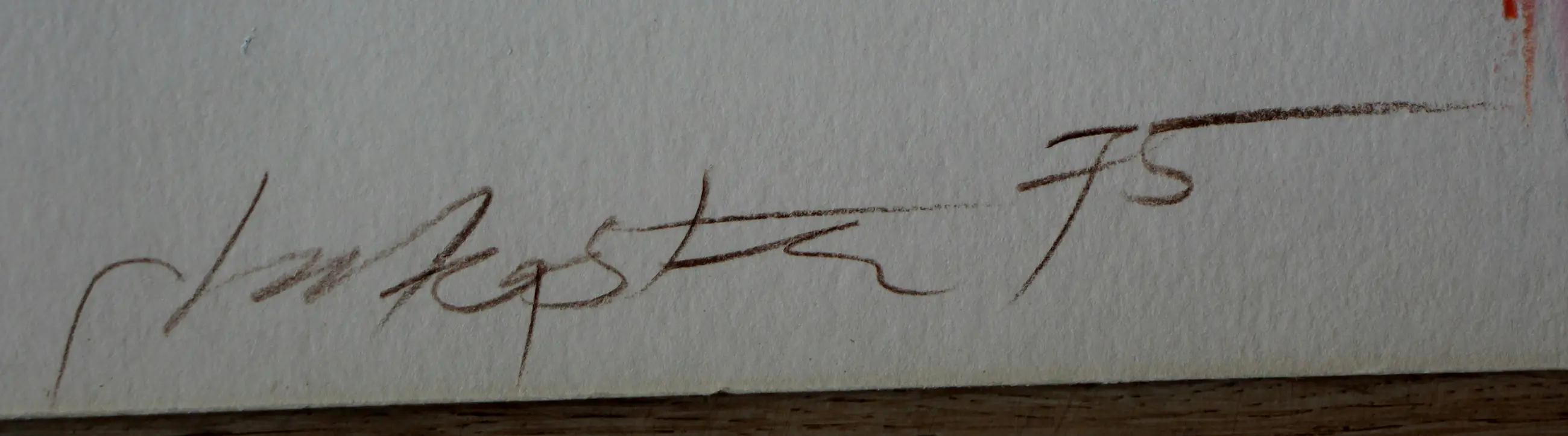 Gemengde techniek van Ger Lataster. Jaar: 1975. Afmetingen blad: H70 x b100cm. Het werk is rechts onderaan, met potlood, gesigneerd door de kunstenaar. De authenticiteit van het aangeboden werk wordt volledig gegarandeerd. Een certificaat van echtheid kan, op aanvraag, worden gegarandeerd.