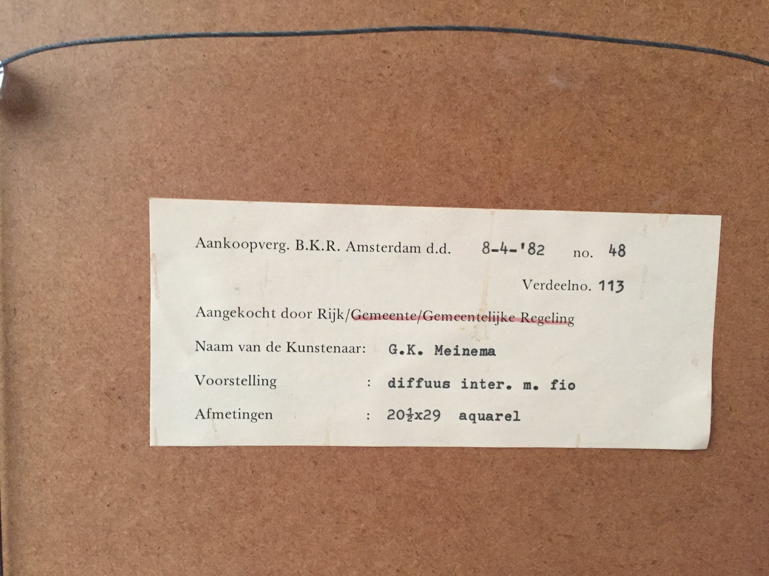 Ger Meinema (1939, Kubaard, Friesland). Werd opgeleid aan de Academie der Katholieke Leergangen te Tilburg en de Gerrit Rietveld Academie te Amsterdam. Hij had zijn eerste tentoonstelling in de galerie “De Sfinx” in 1969 in Amsterdam. Meinema is een schilder met een indrukwekkend oeuvre waarin verscheidene, qua stijl heel verschillende, periodes zijn te onderkennen.