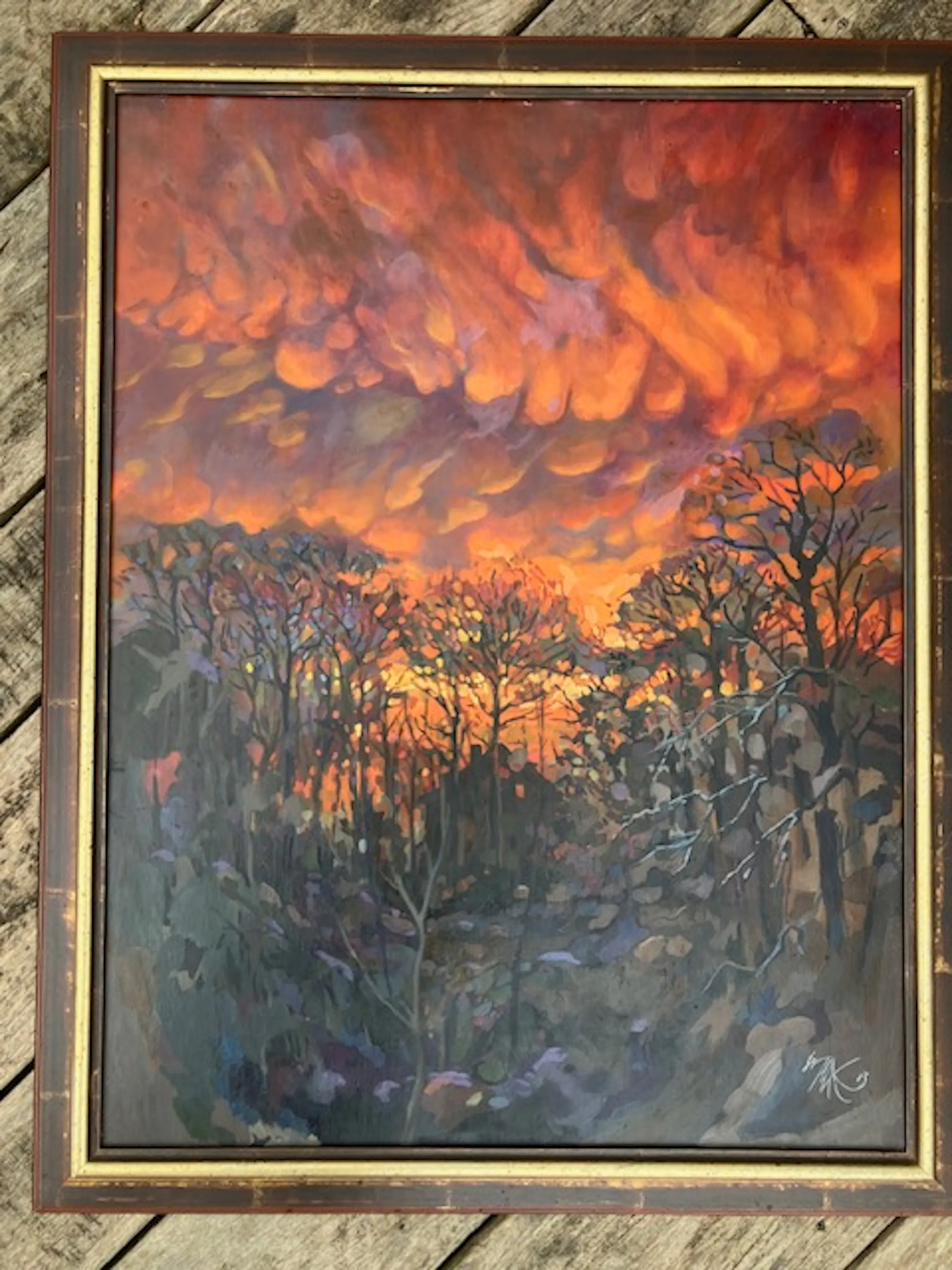 Ger heeft vanuit zijn atelier aan de herenweg in Bergen, het huis geschilderd waar jan van Herwijnen werkte en woonden. Zon ging onder en er was onweer en regen. Unieke combi huis van de een en uitzicht van de ander vastgelegd op paneel.
