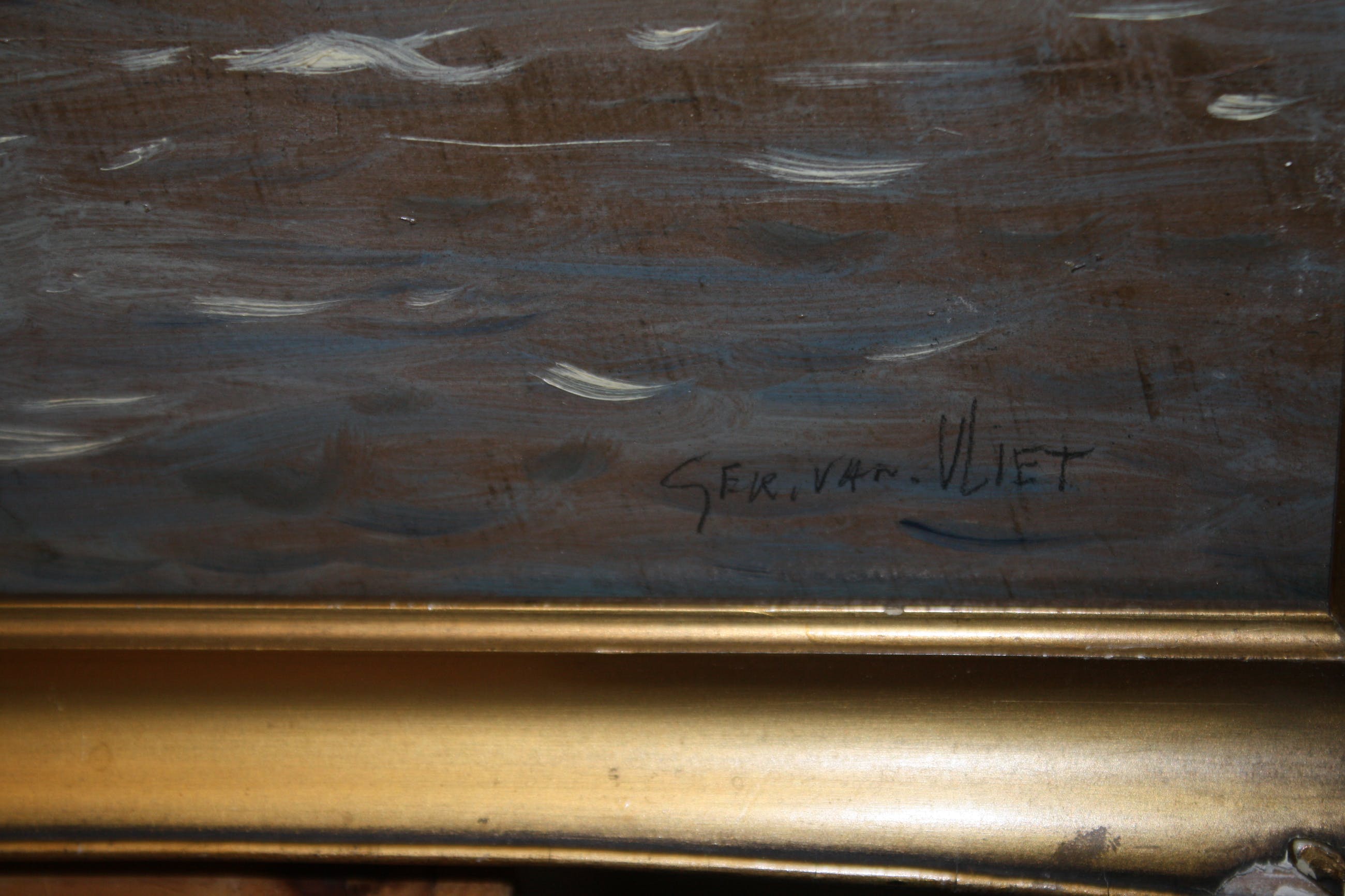 GER VAN VLIET HAVEN VAN AMSTERDAM OLIEVERF OP LINNEN IN DE MAAT 40 X 50 CM GESIGNEERD ON DER GEKADERD IN KLASSIEKE LIJST in de maat 44 x 54 cm schilderij in perfecte staatlijst heeft enkele schades VERZENDEN AANGETEKEND of OPHALEN IN BEVERWIJK